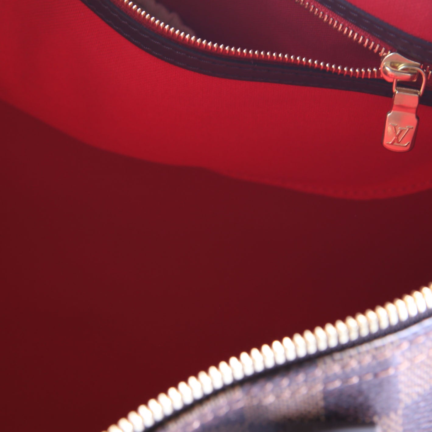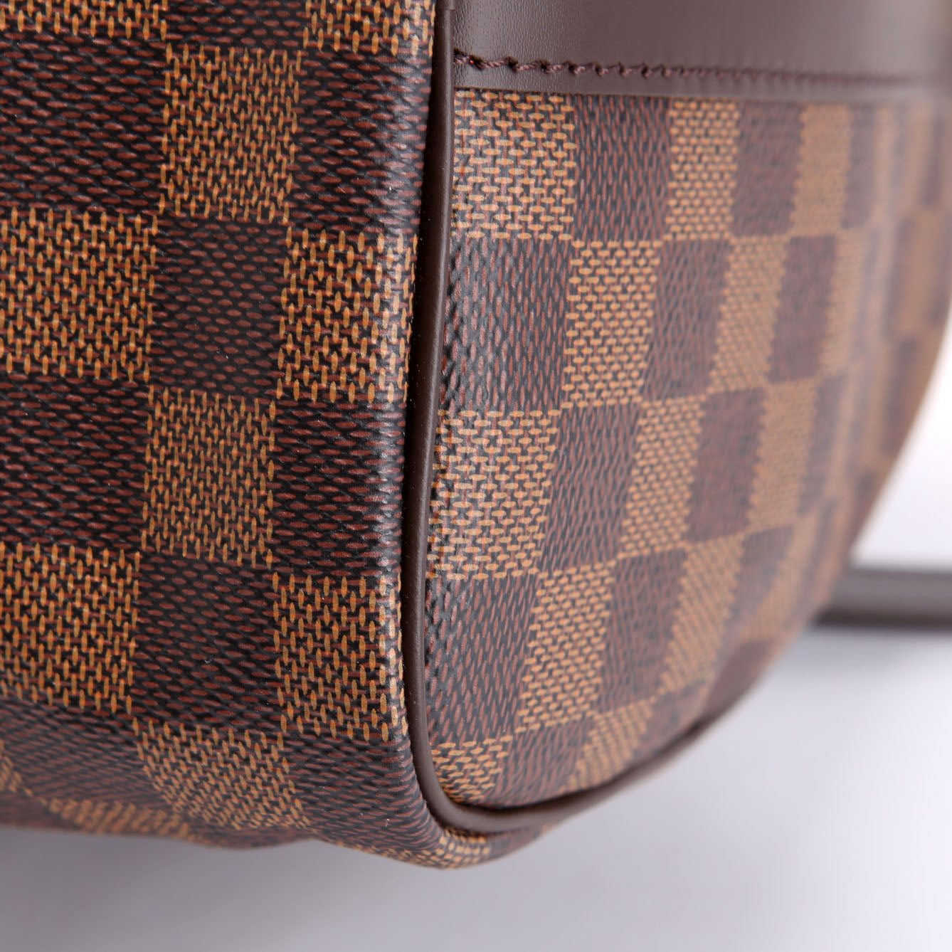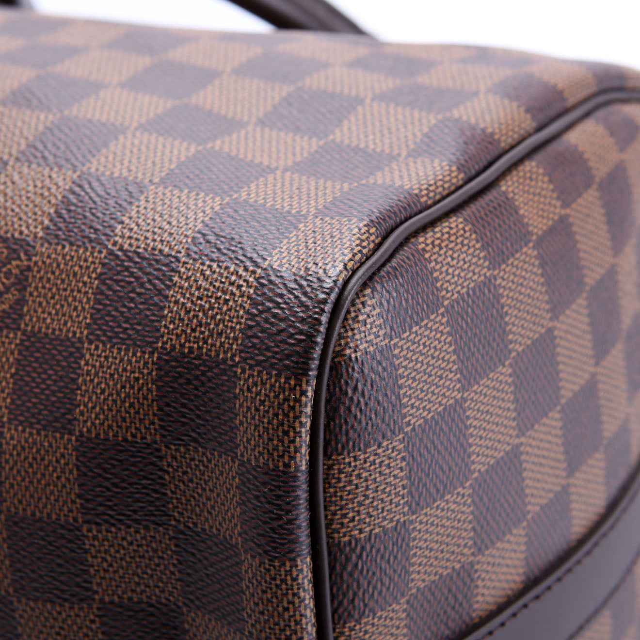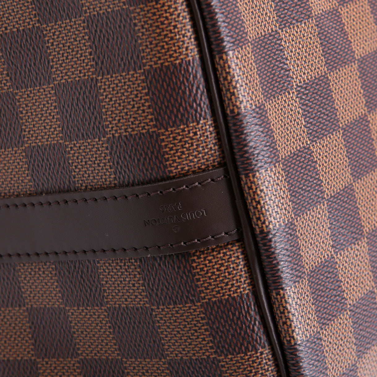 This pre-owned Louis Vuitton Speedy 30 Bandouliere is guaranteed 100% authentic. The exterior is in the classic Louis Vuitton Damier Ebene coated canvas.