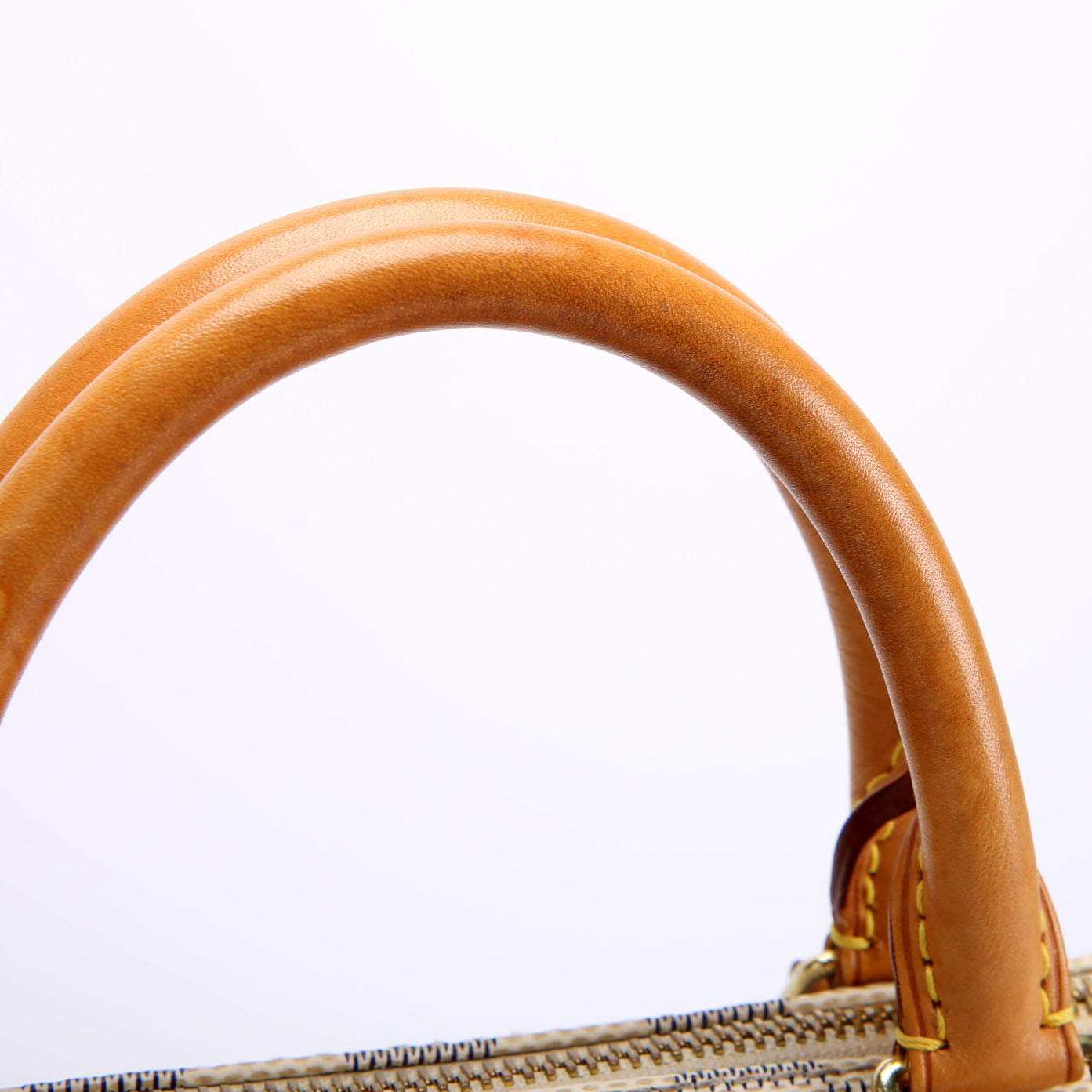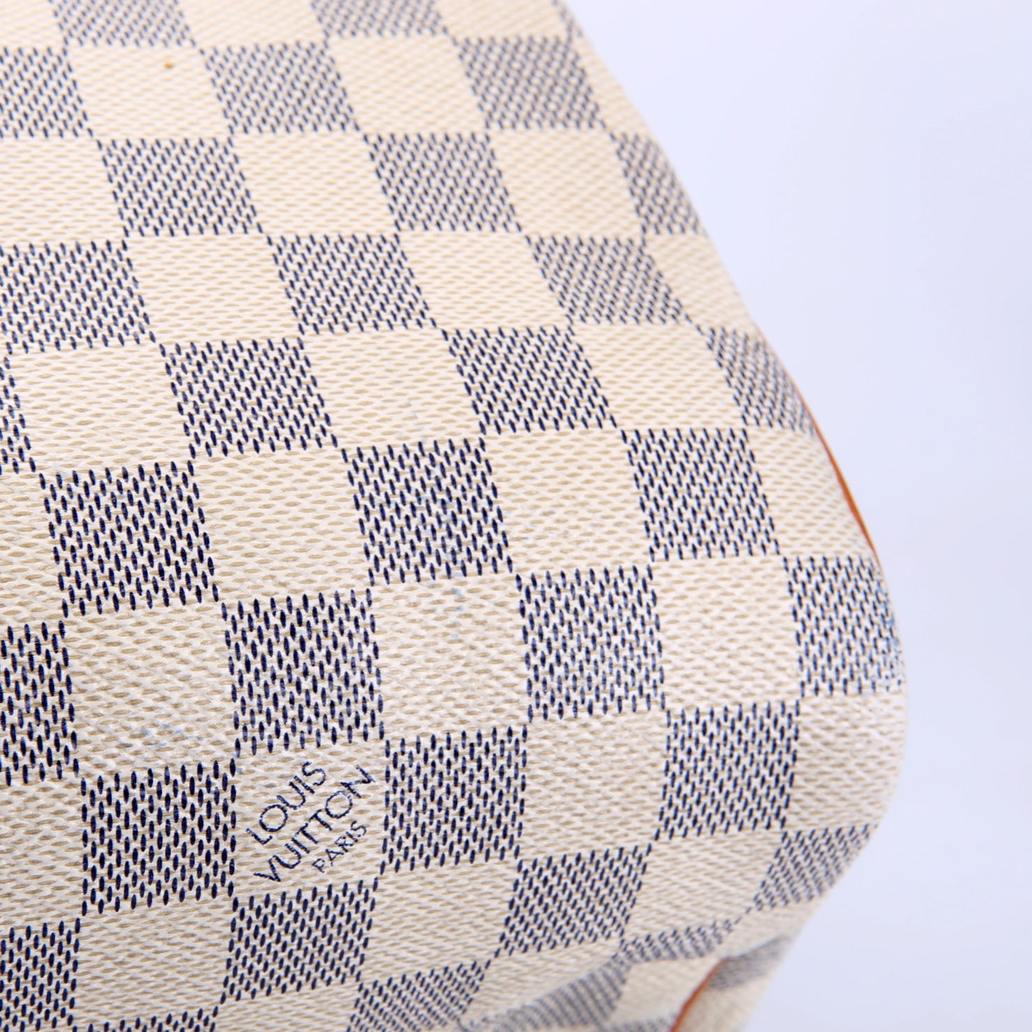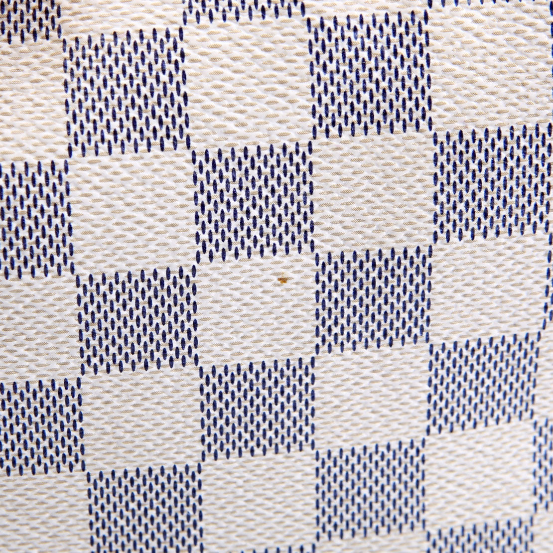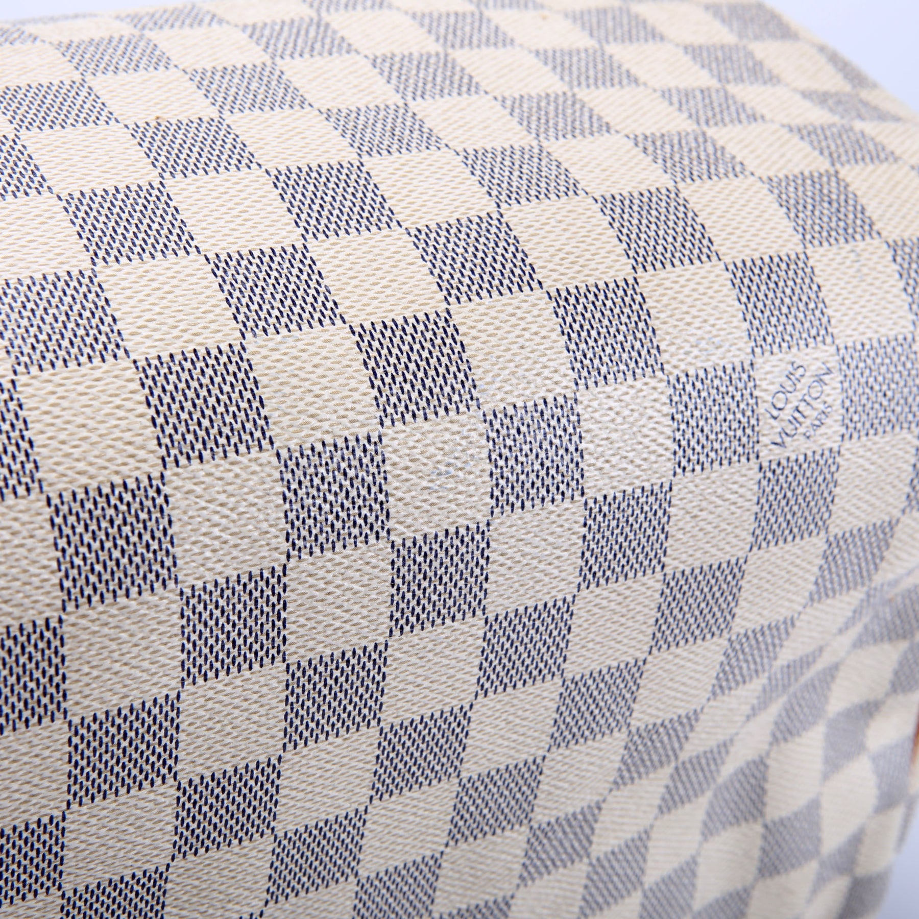 This pre-owned Louis Vuitton Speedy 30 is guaranteed 100% authentic. The exterior is in the classic Louis Vuitton Damier Azur coated canvas.