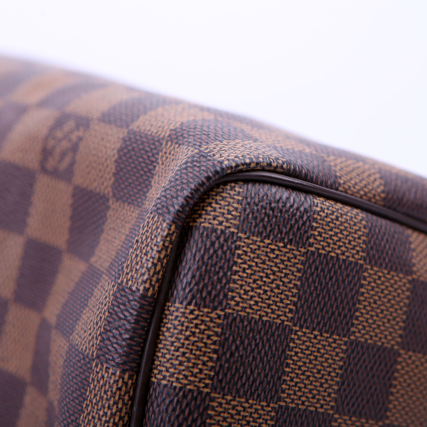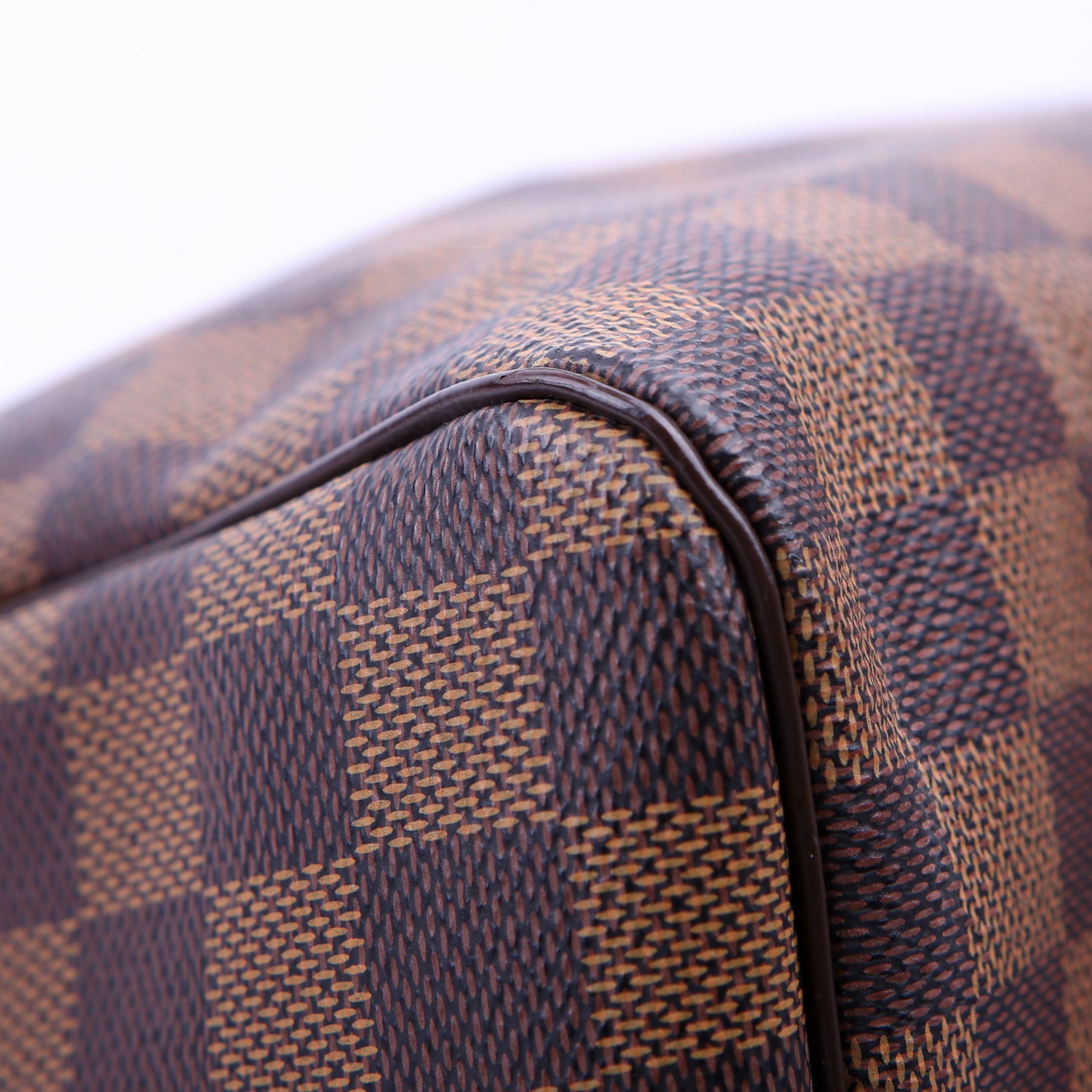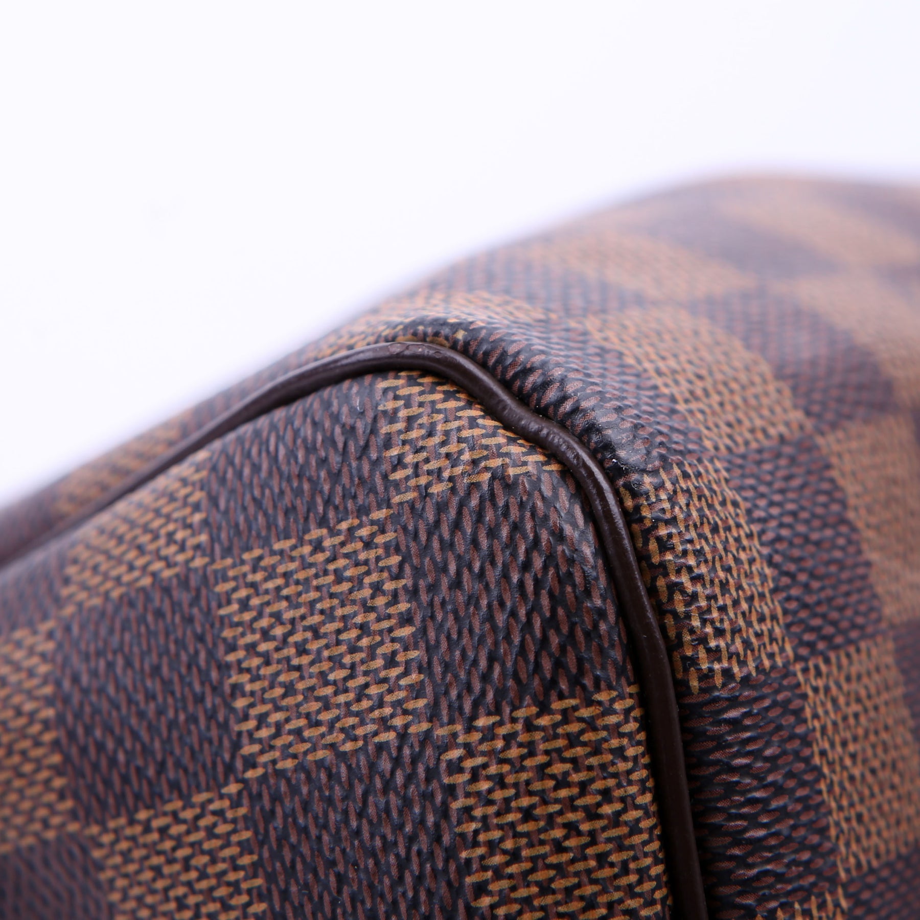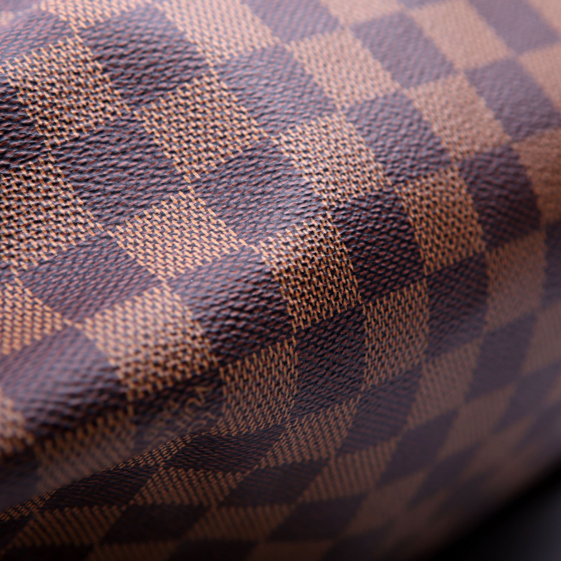 This pre-owned Louis Vuitton Speedy 30 is guaranteed 100% authentic. The exterior is in the classic Louis Vuitton Damier Ebene coated canvas.