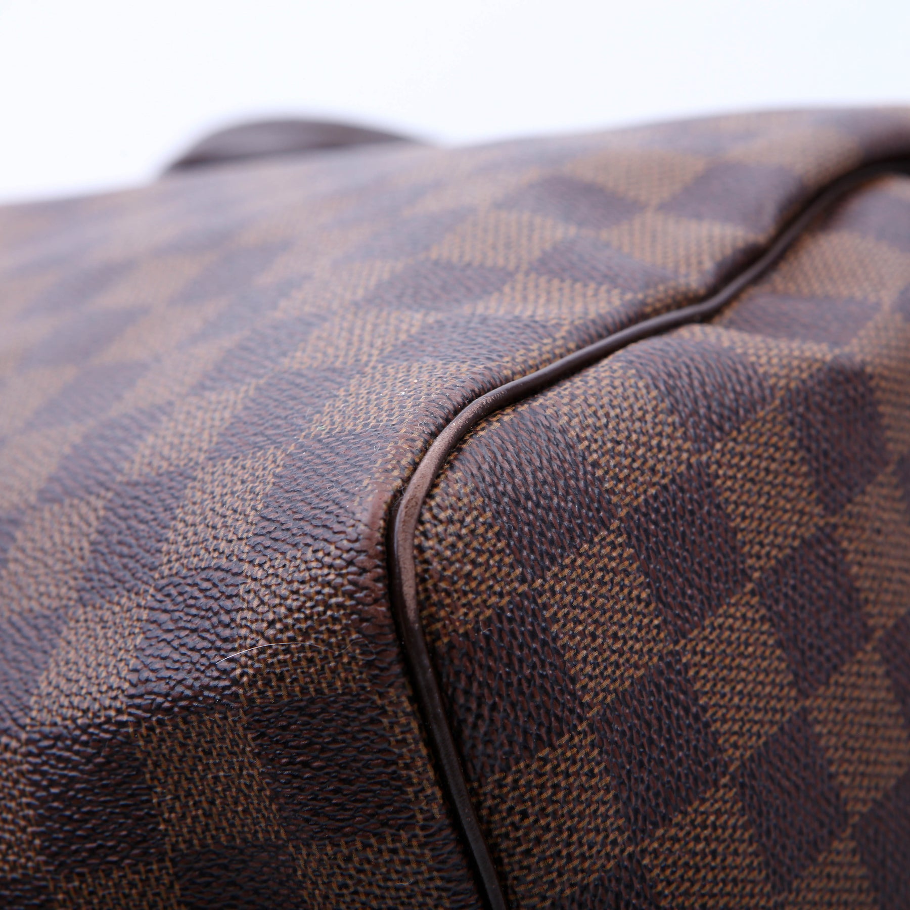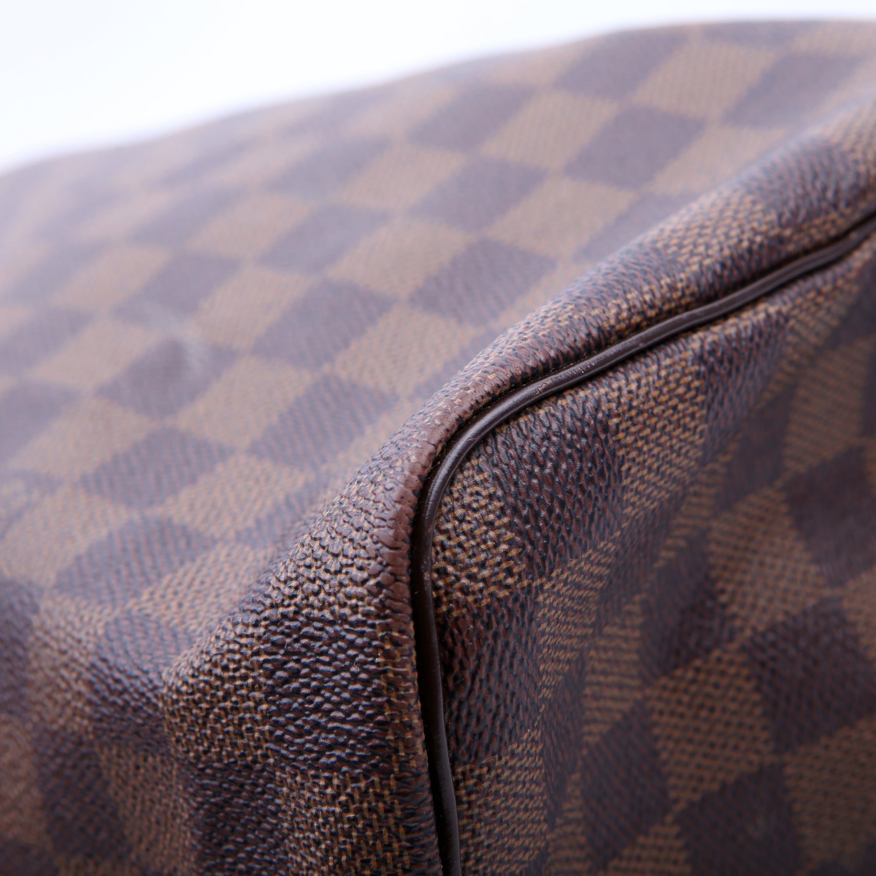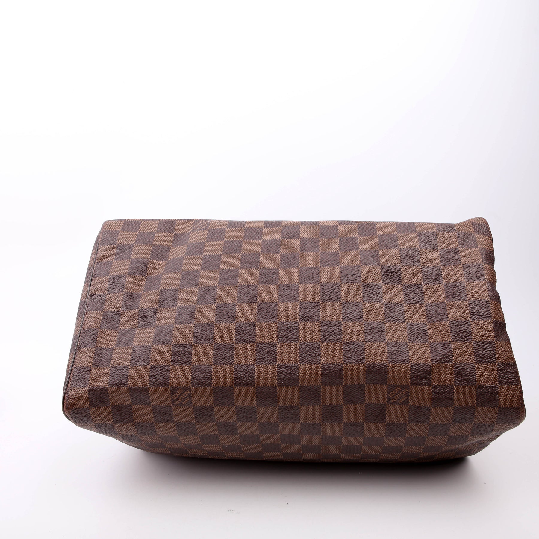 This pre-owned Louis Vuitton Speedy 35 is guaranteed 100% authentic. The exterior is in the classic Louis Vuitton Damier Ebene coated canvas.
