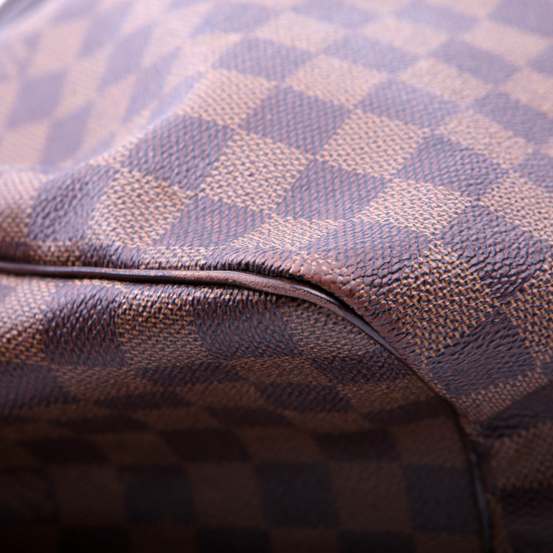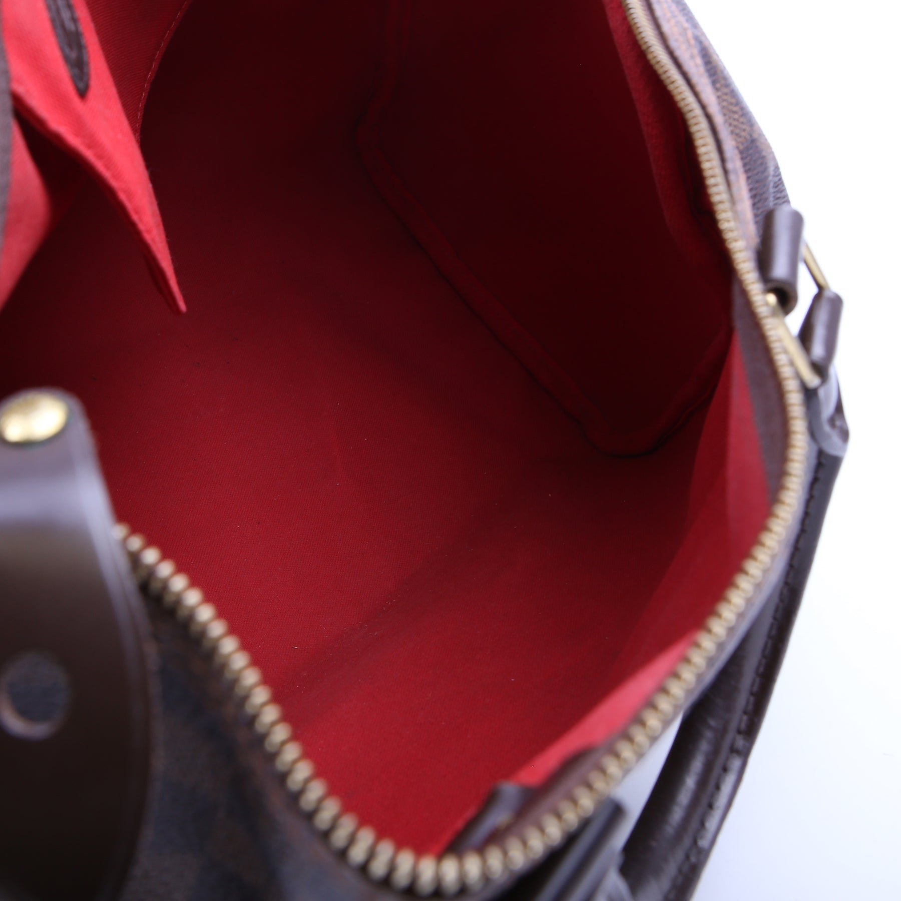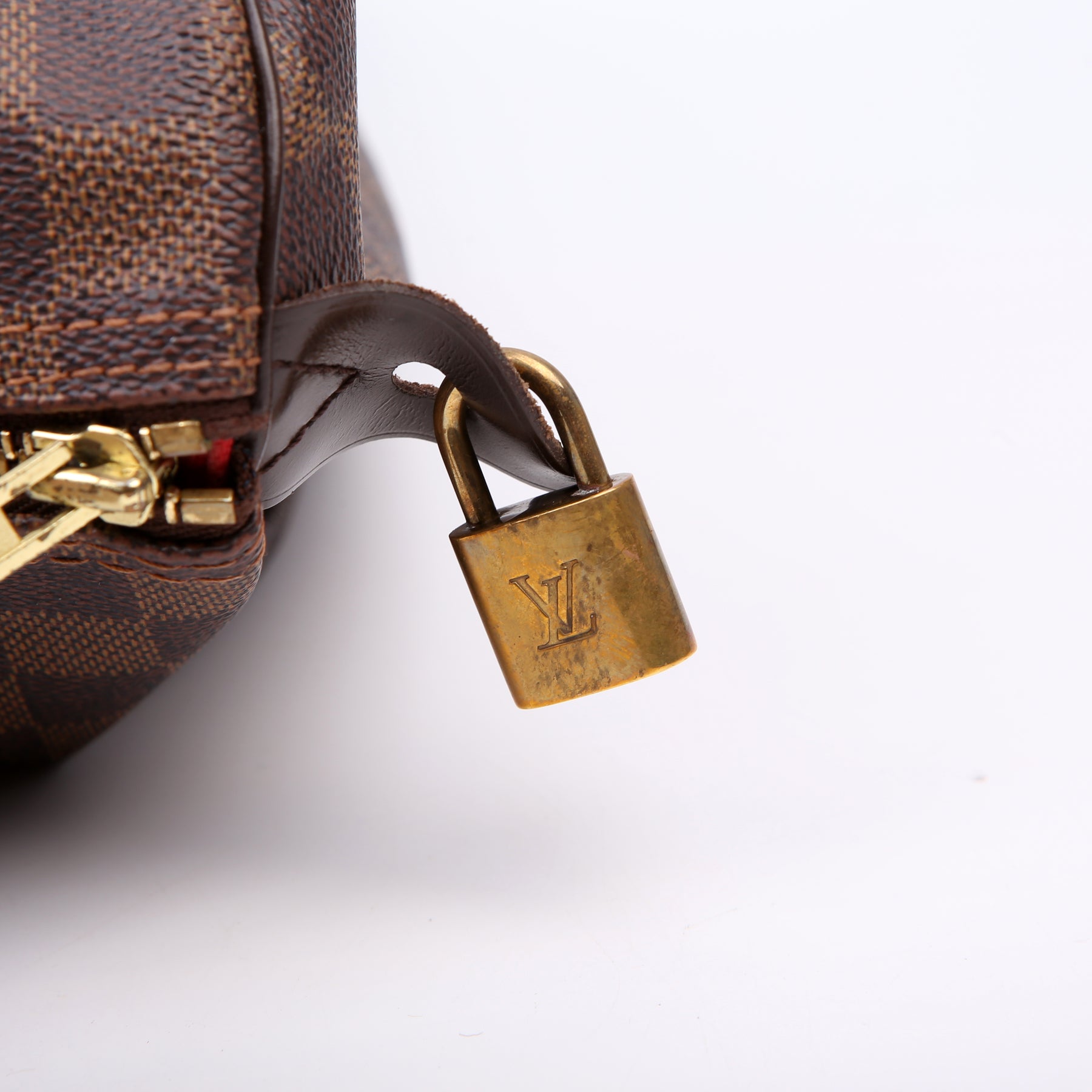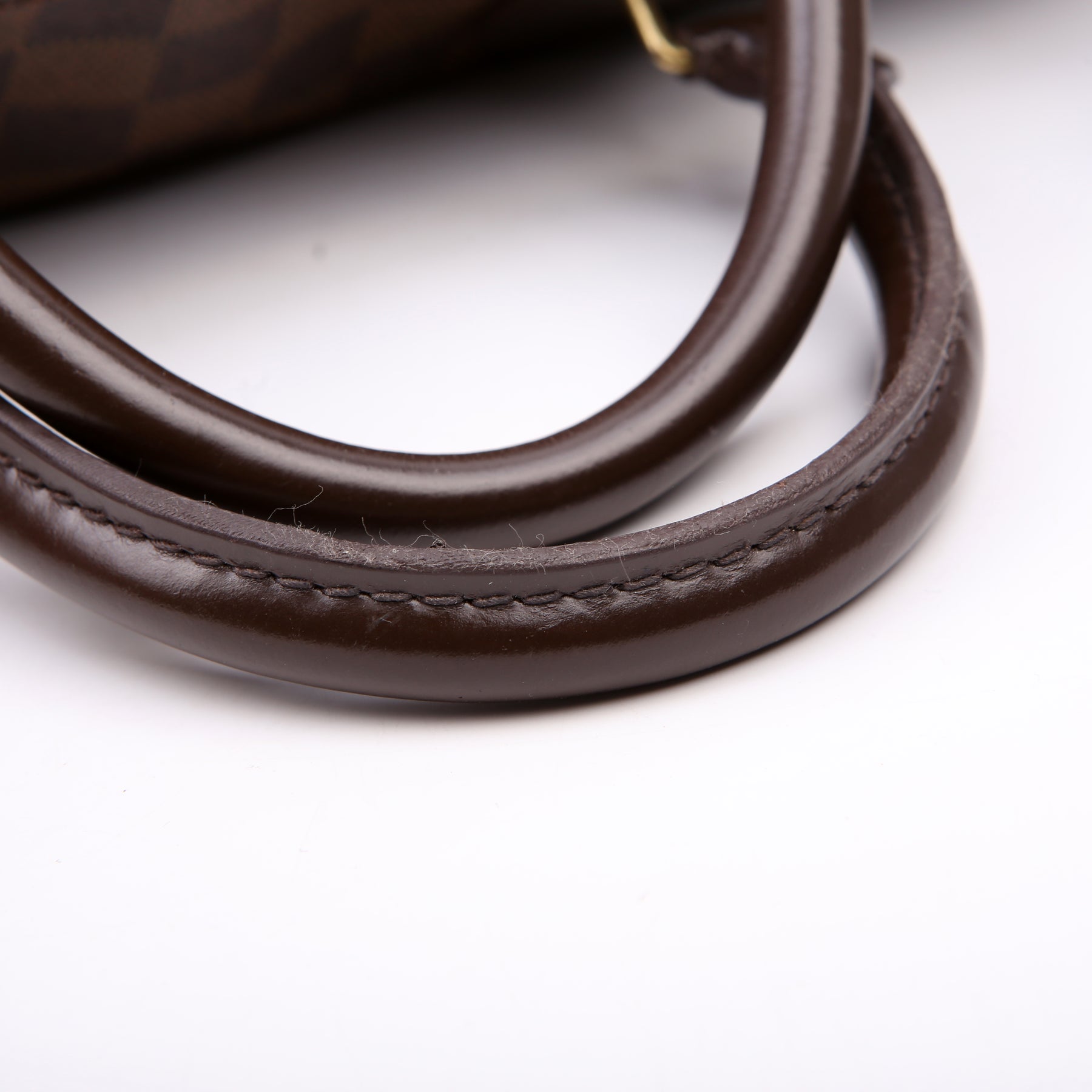 This pre-owned Louis Vuitton Speedy 35 is guaranteed 100% authentic. The exterior is in the classic Louis Vuitton Damier Ebene coated canvas.