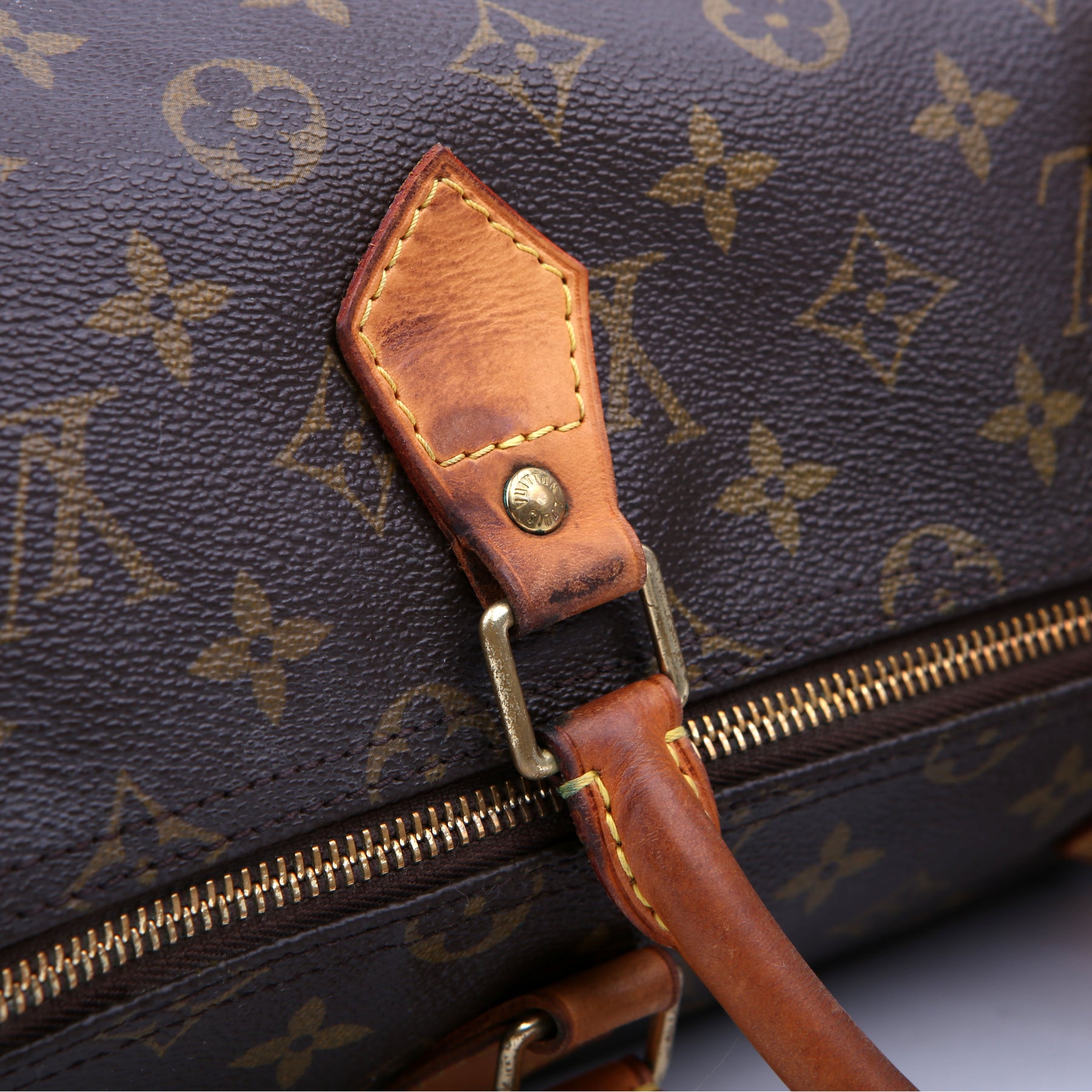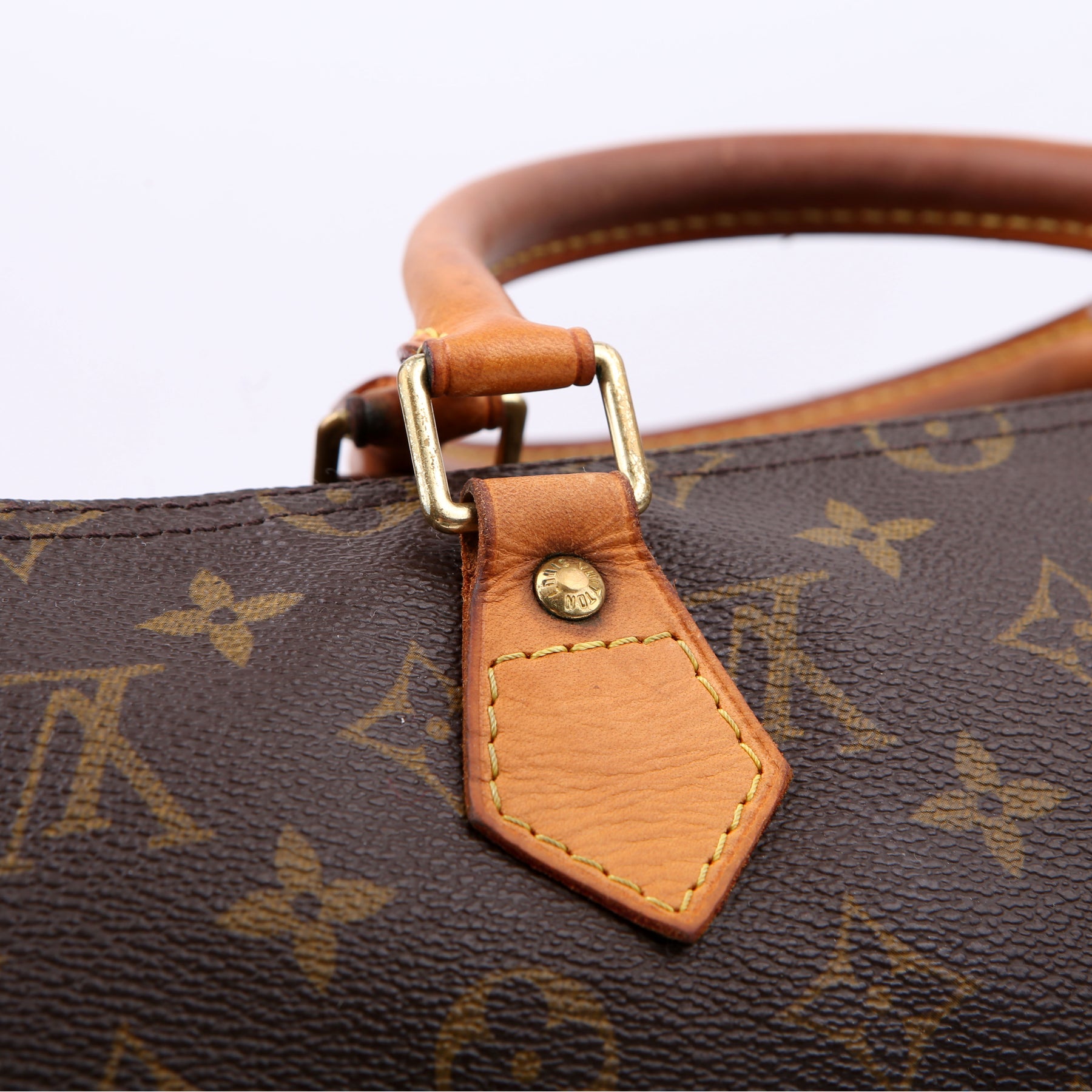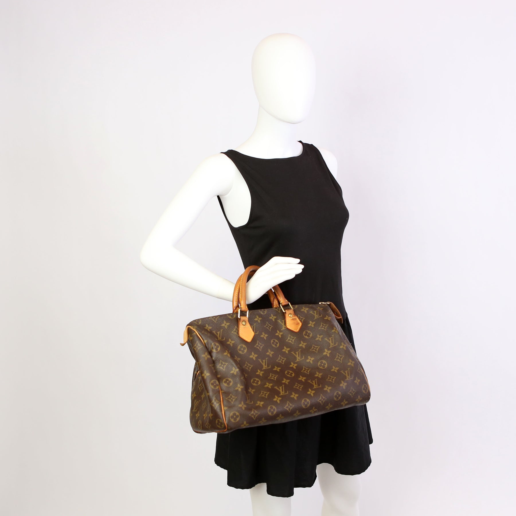 This pre-owned Louis Vuitton Speedy 35 is guaranteed 100% authentic. The exterior is in the classic Louis Vuitton Monogram coated canvas.