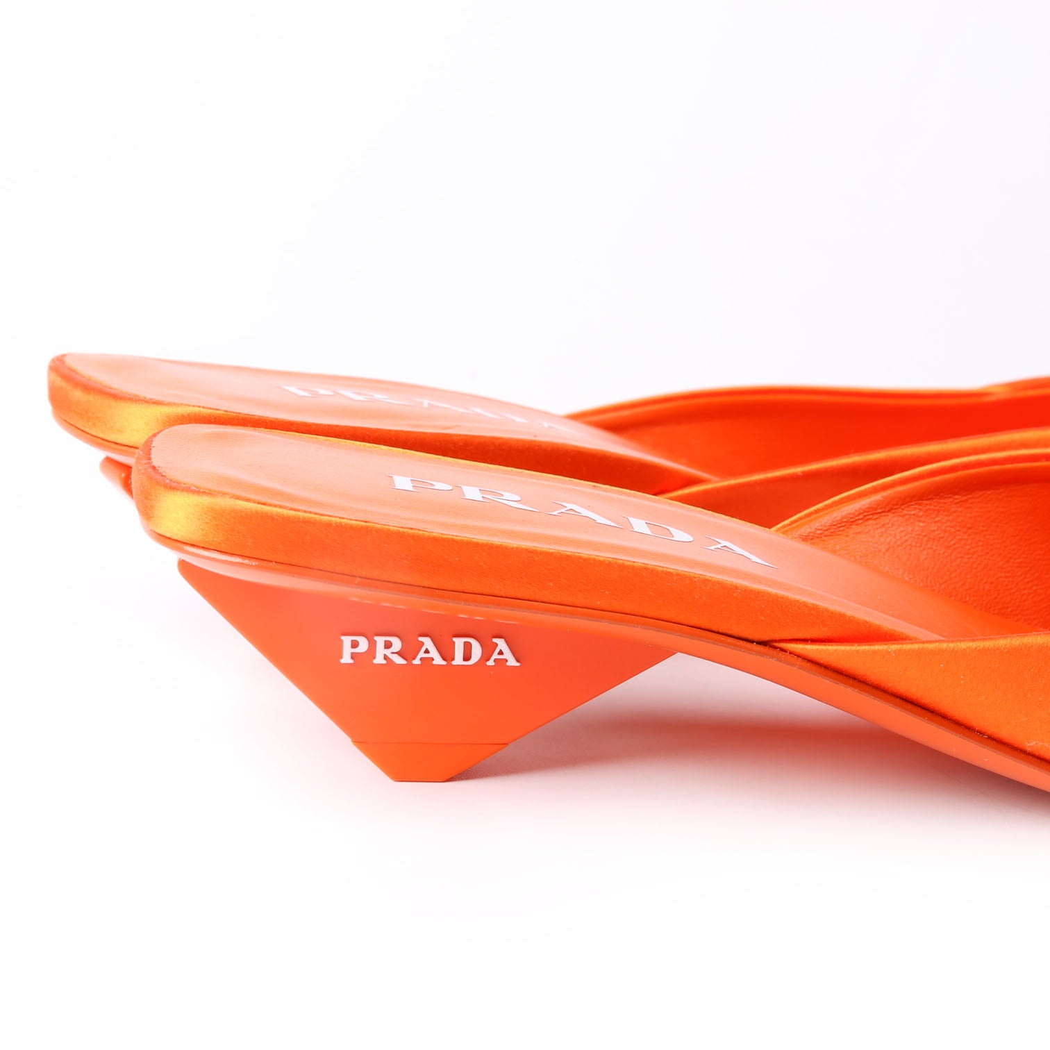 These pre-owned Prada Square Toe Satin Mules are guaranteed 100% authentic.