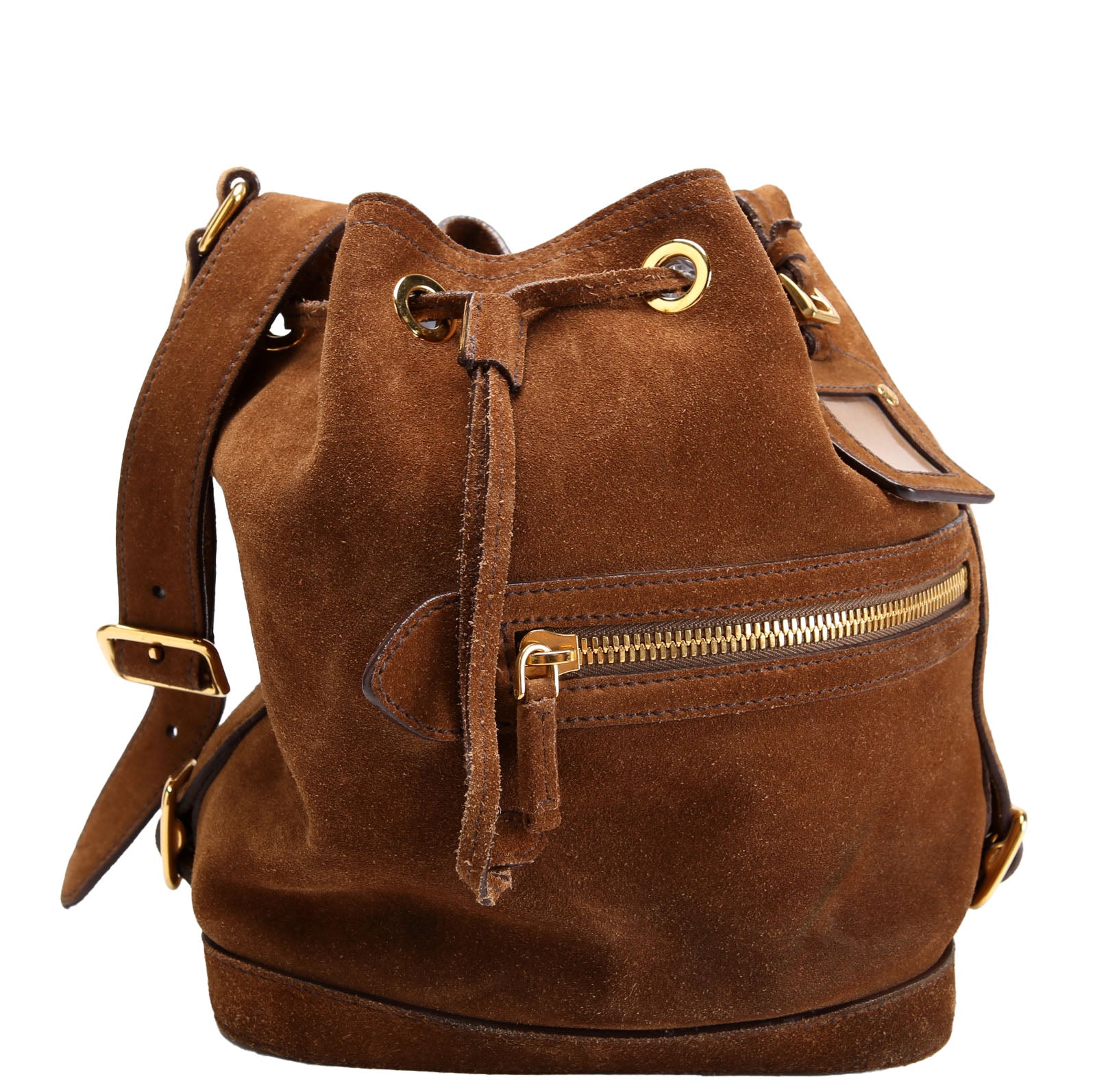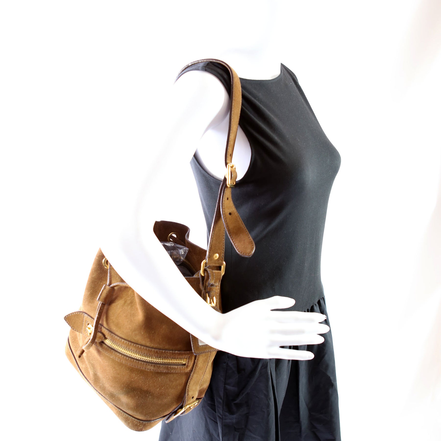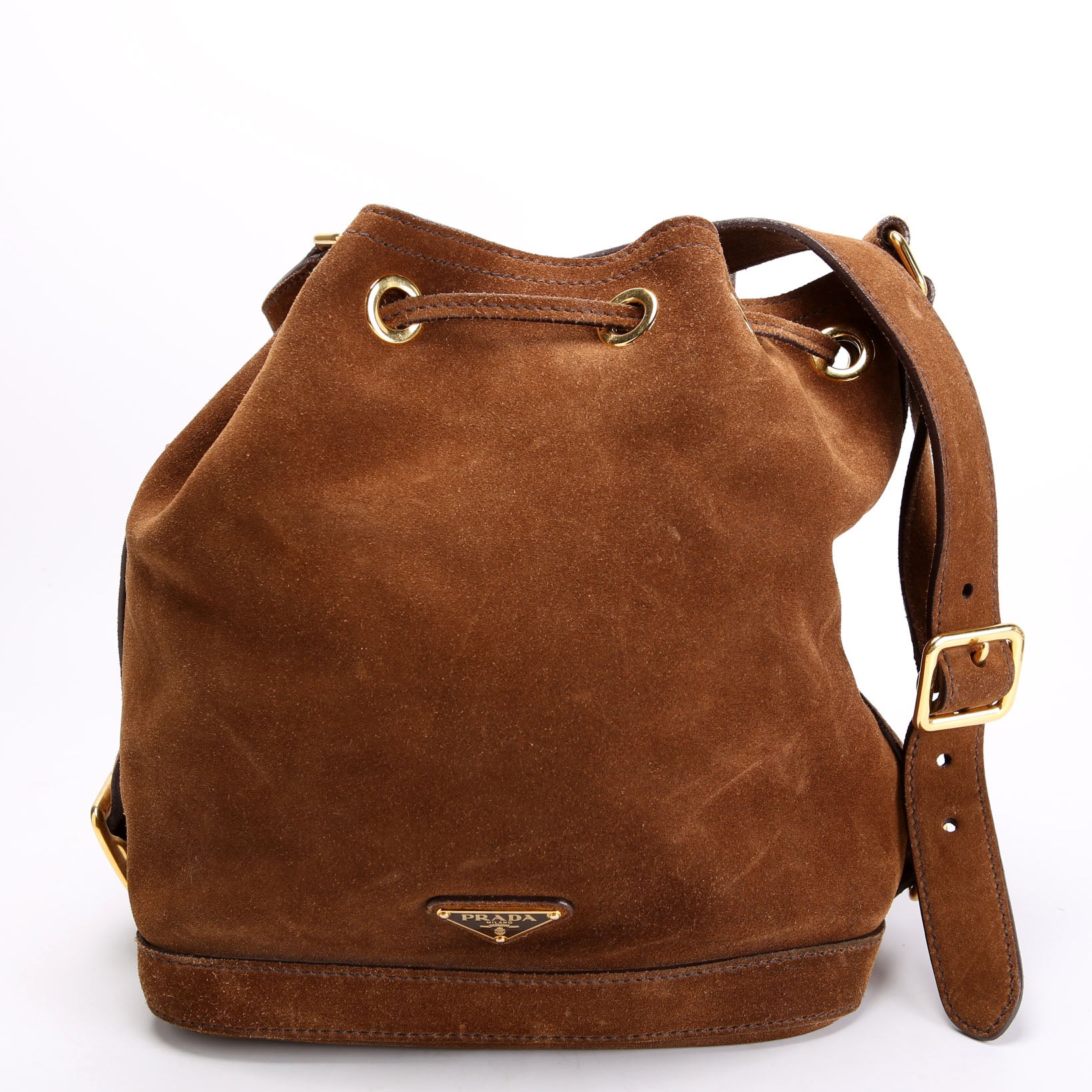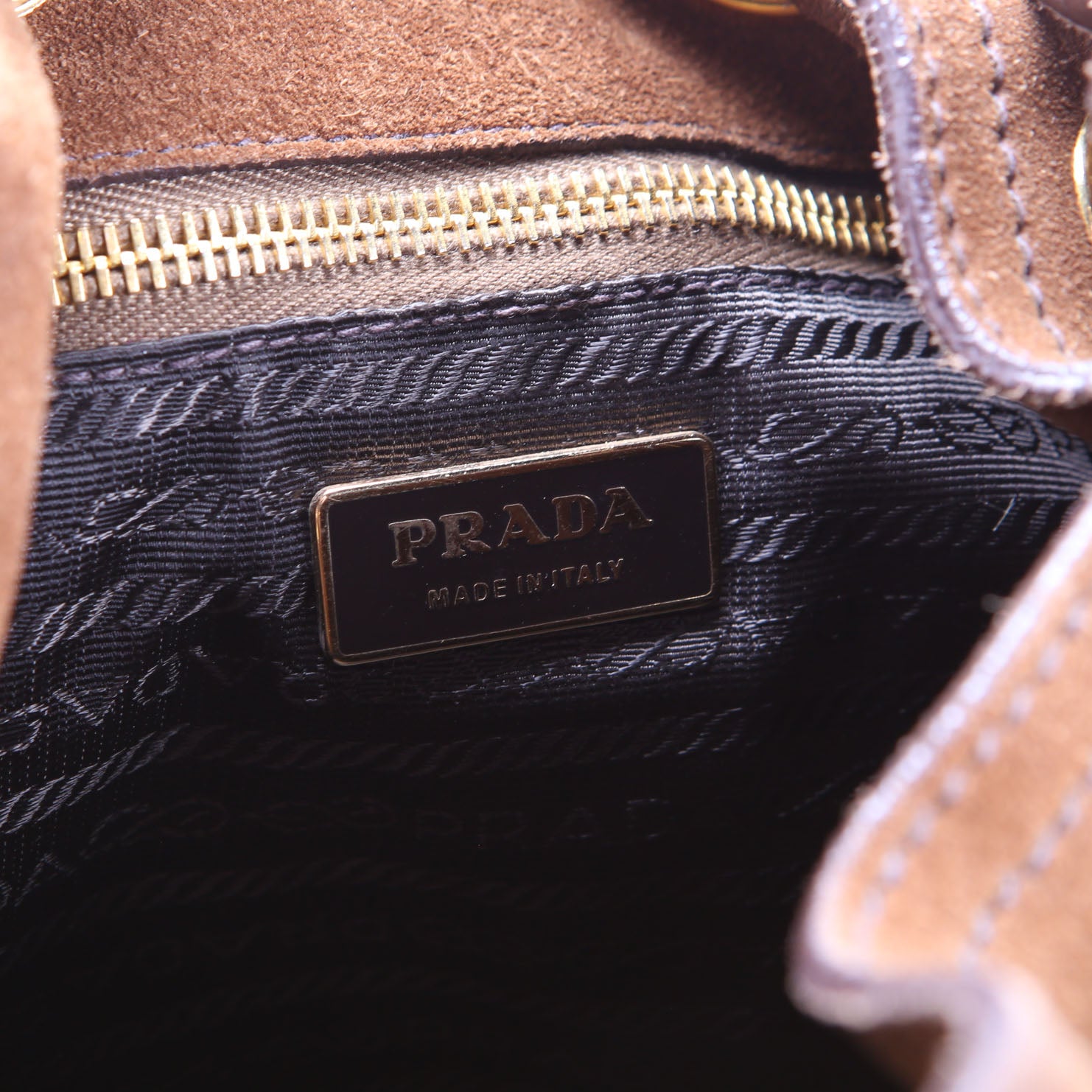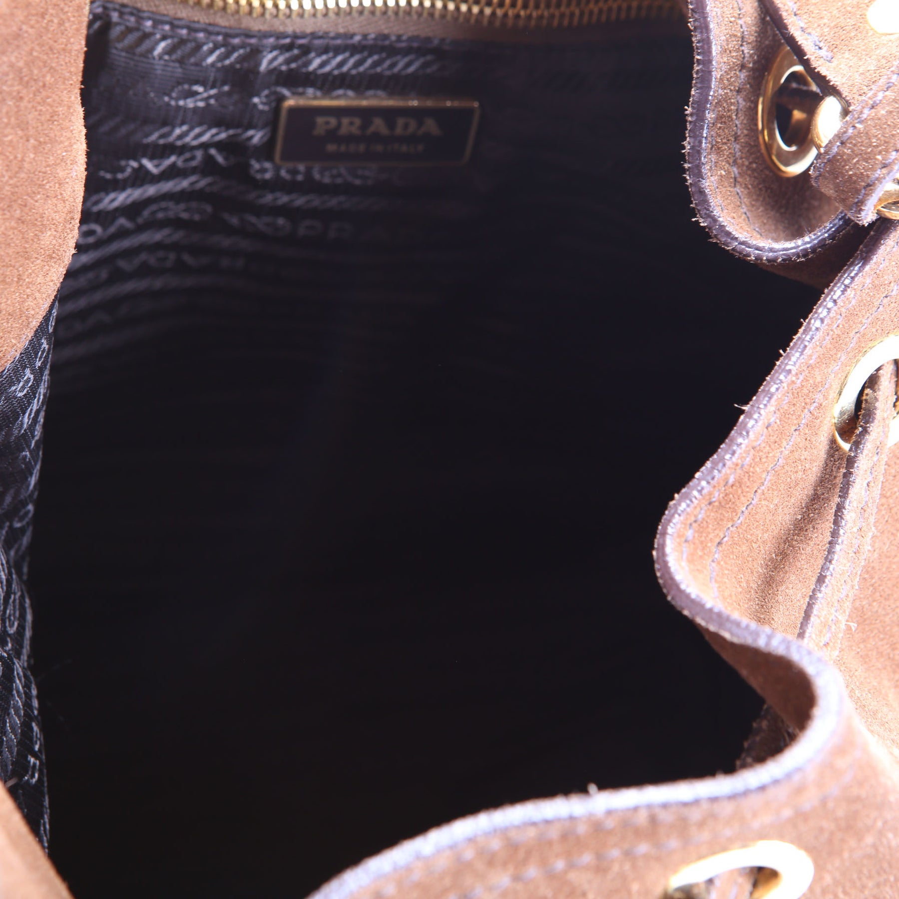 This pre-owned Prada Suede Drawstring Shoulder Bucket Bag is guaranteed 100% authentic.