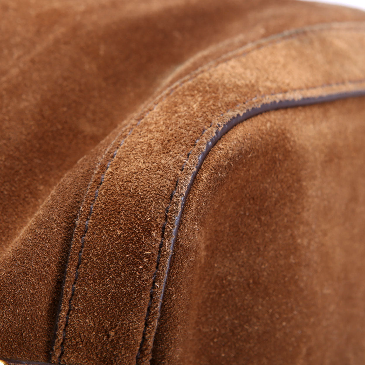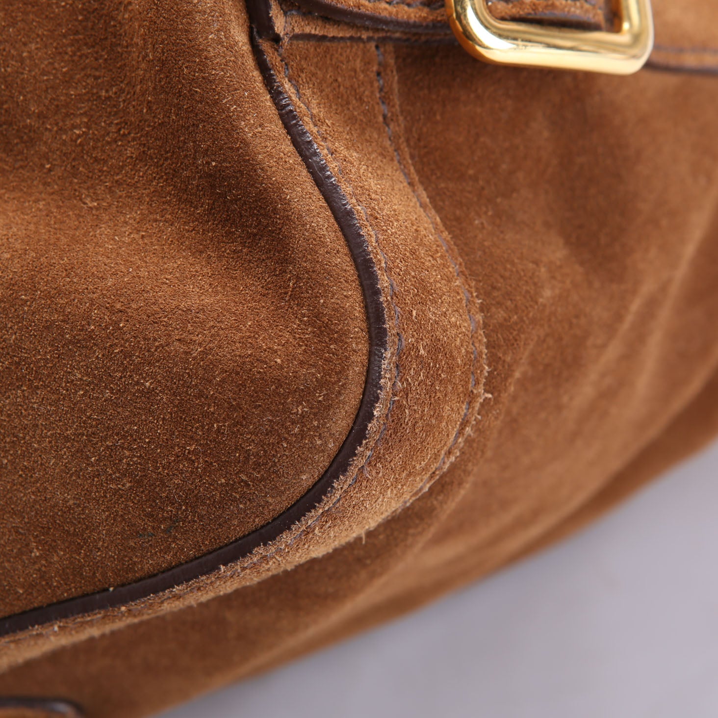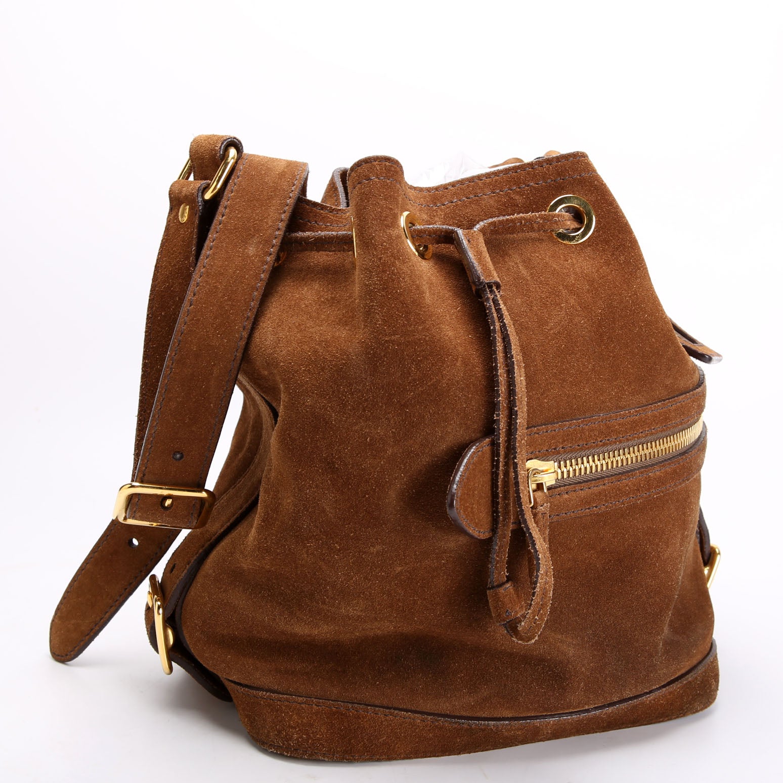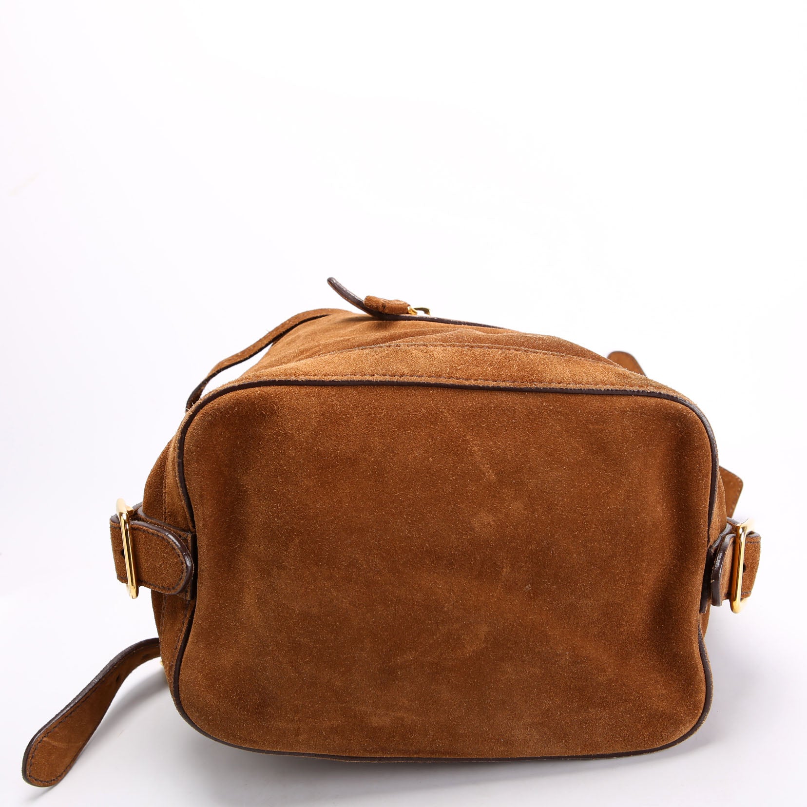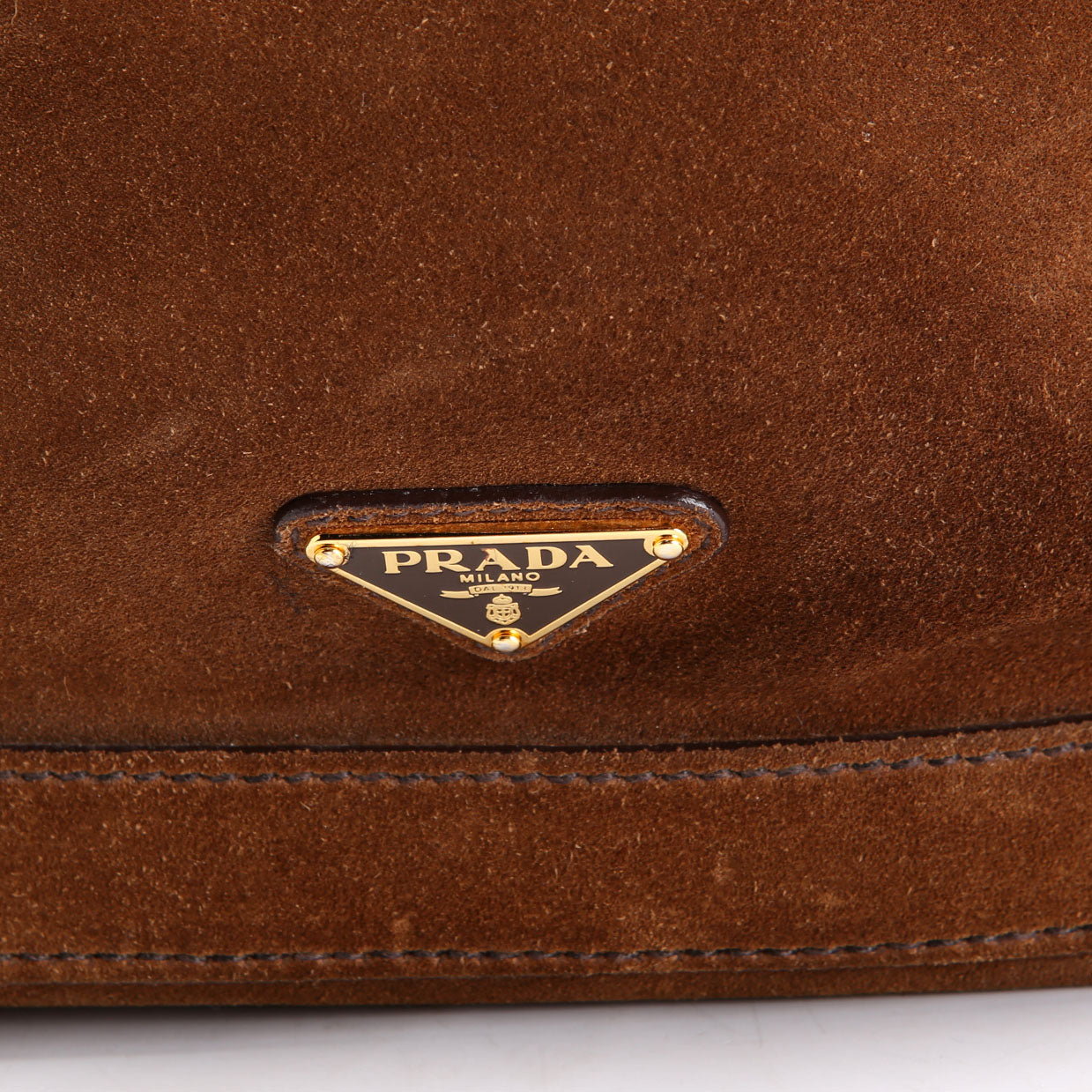 This pre-owned Prada Suede Drawstring Shoulder Bucket Bag is guaranteed 100% authentic.