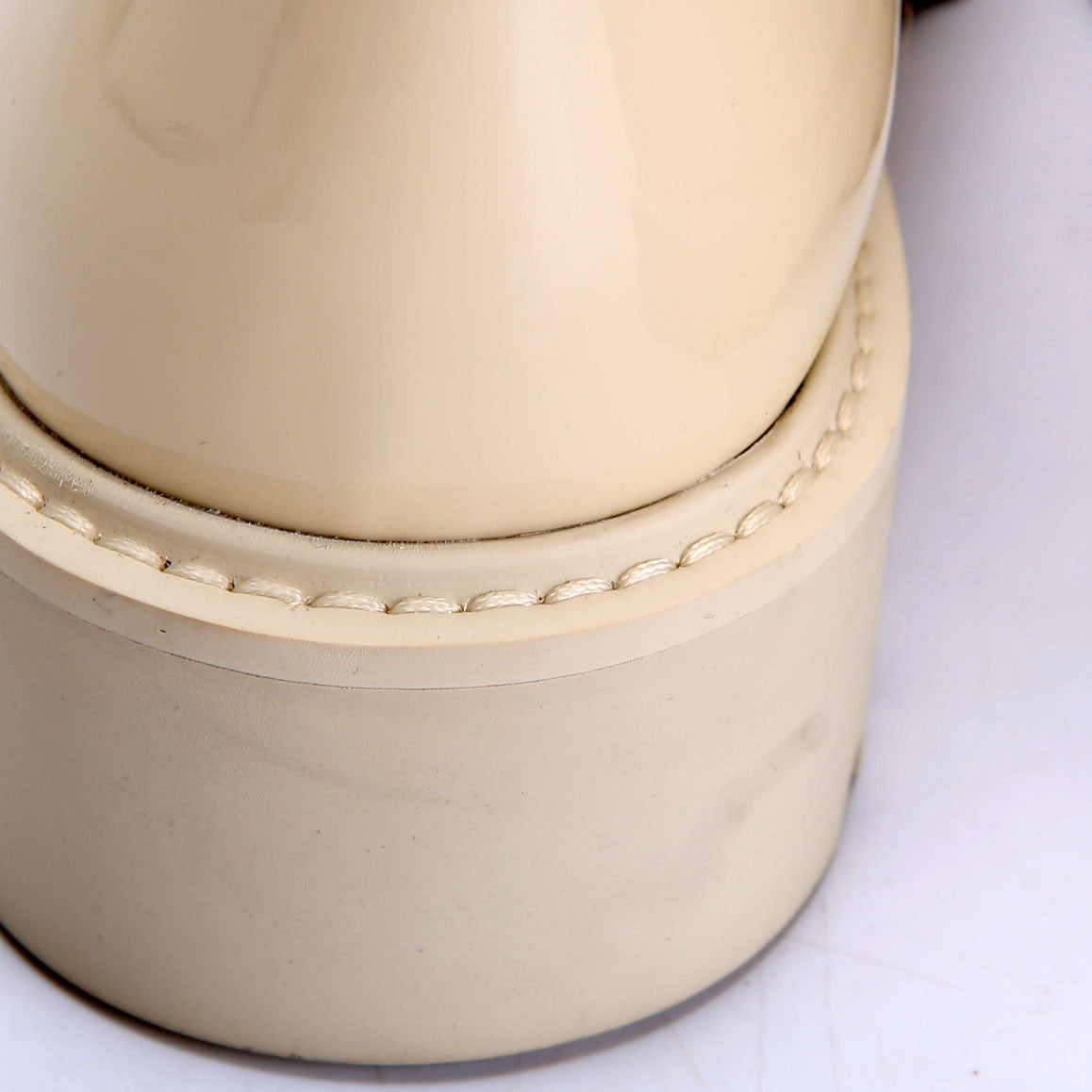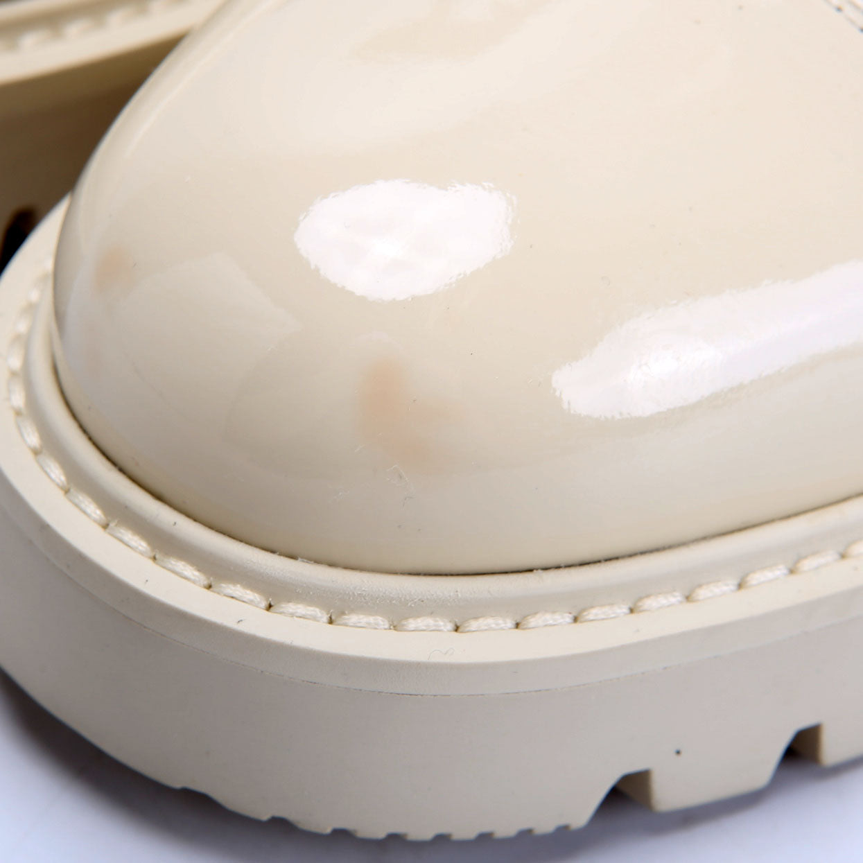 Exterior: The exterior shows minor staining on the patent leather around the toe box.