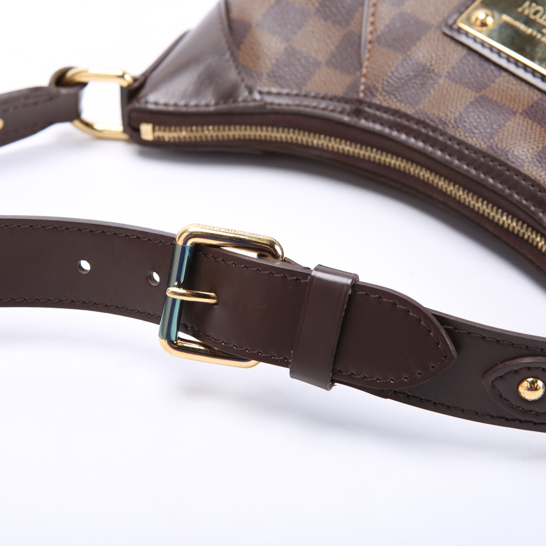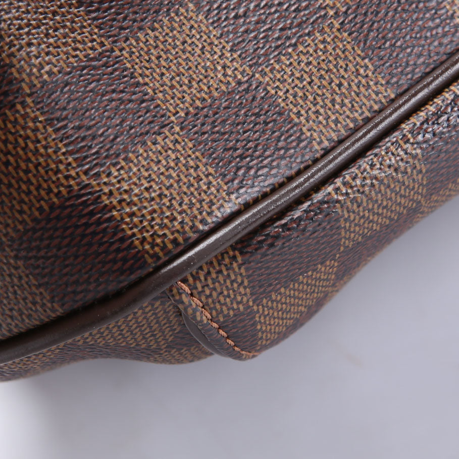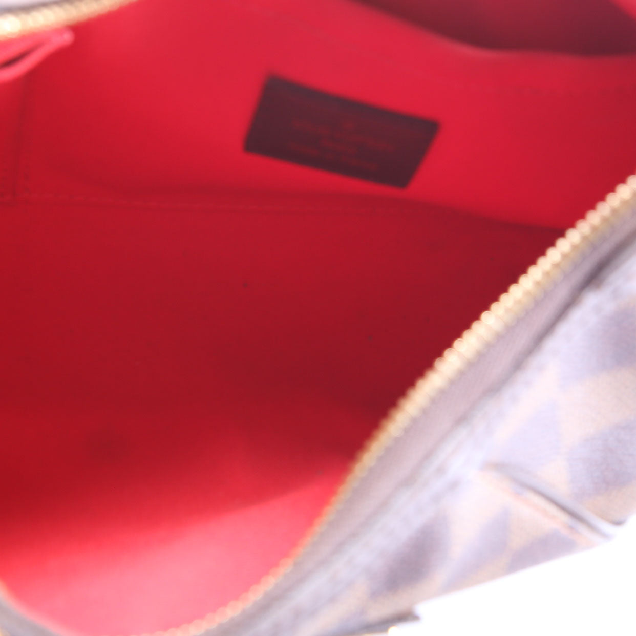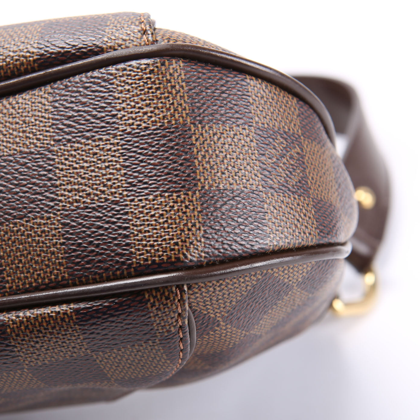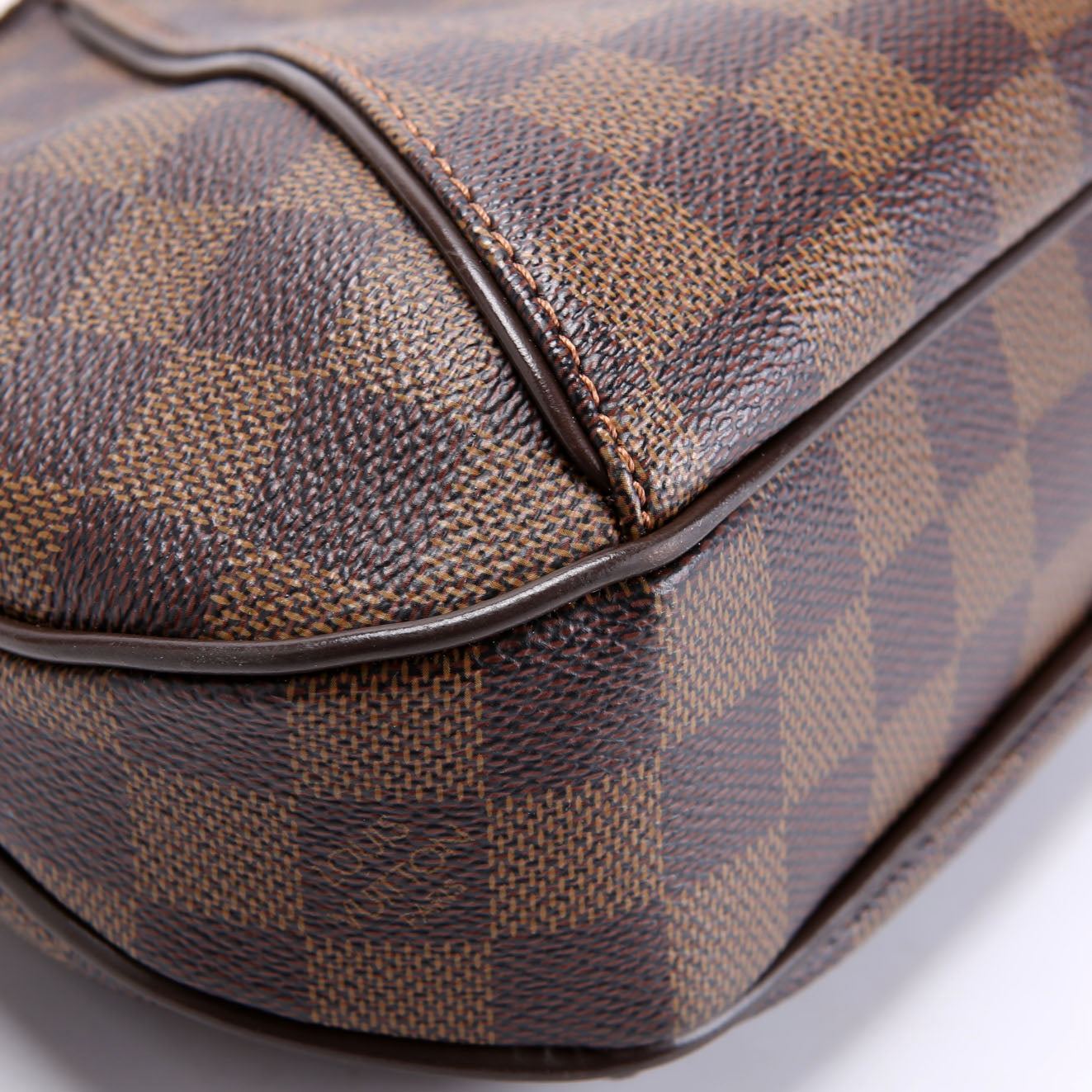 This pre-owned Louis Vuitton Thames PM is guaranteed 100% authentic. The exterior is in the classic Louis Vuitton Damier Ebene coated canvas.