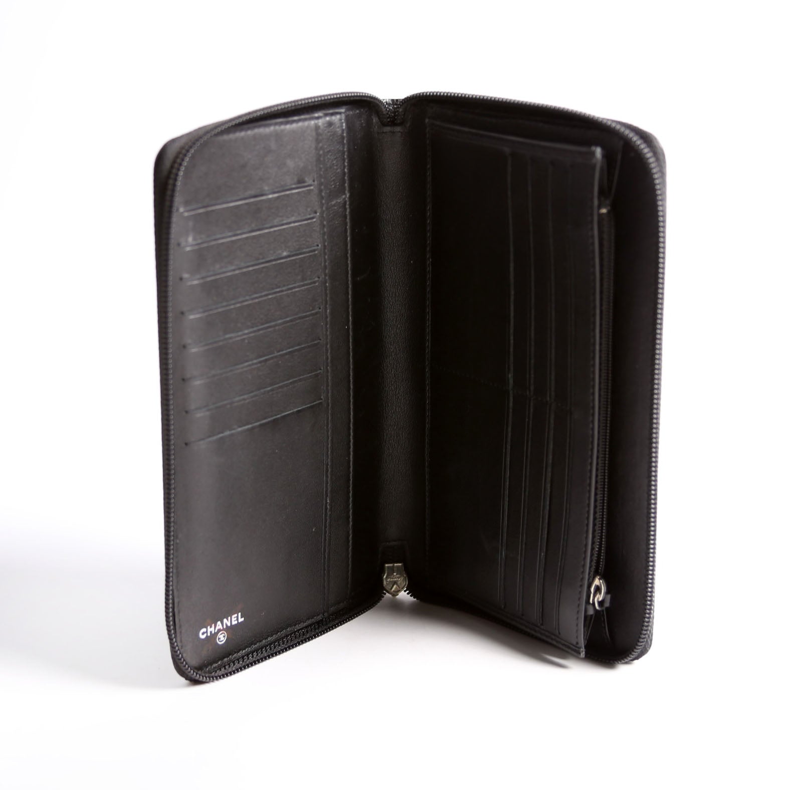 This pre-owned Chanel Timeless CC Zip Around Organizer Wallet is guaranteed 100% authentic.