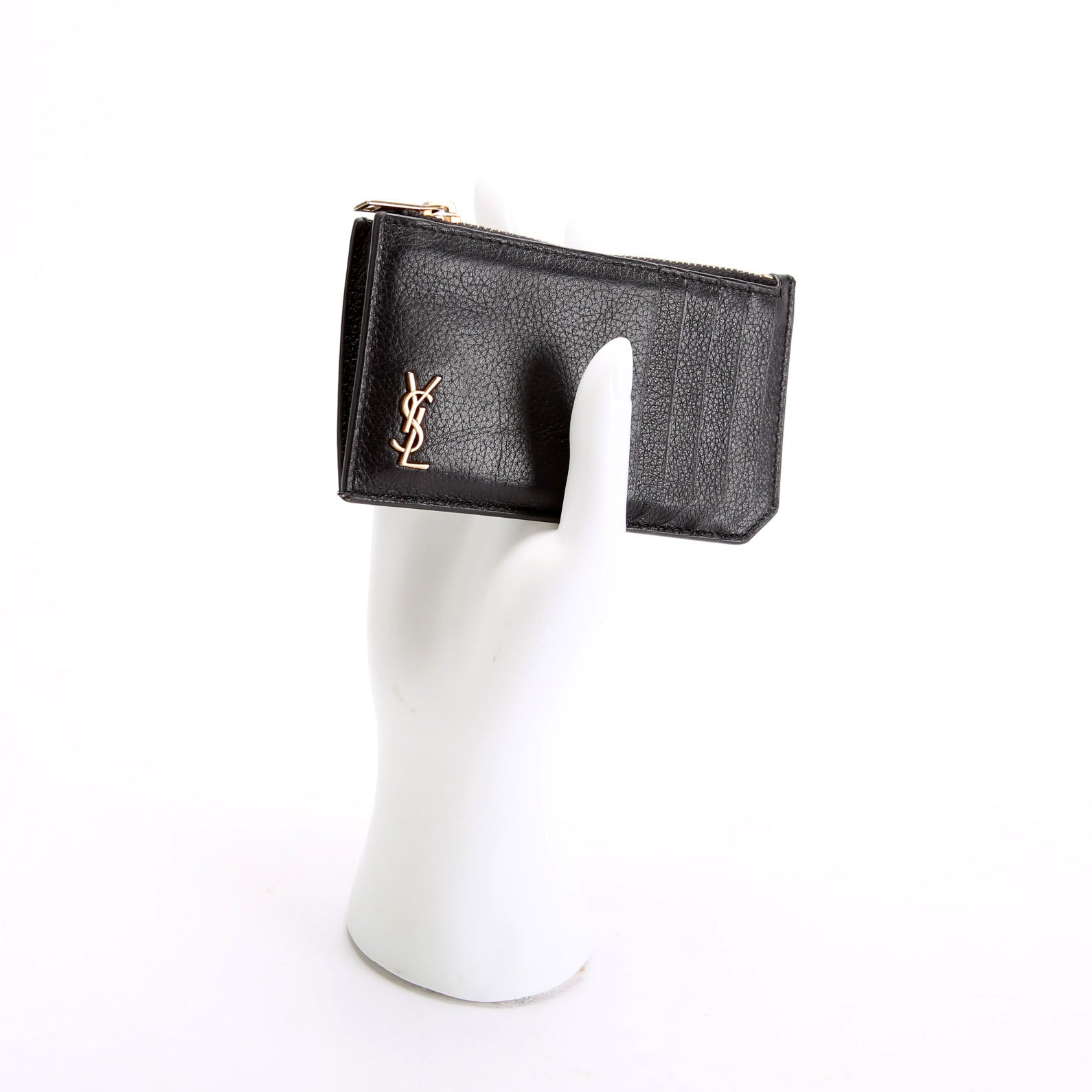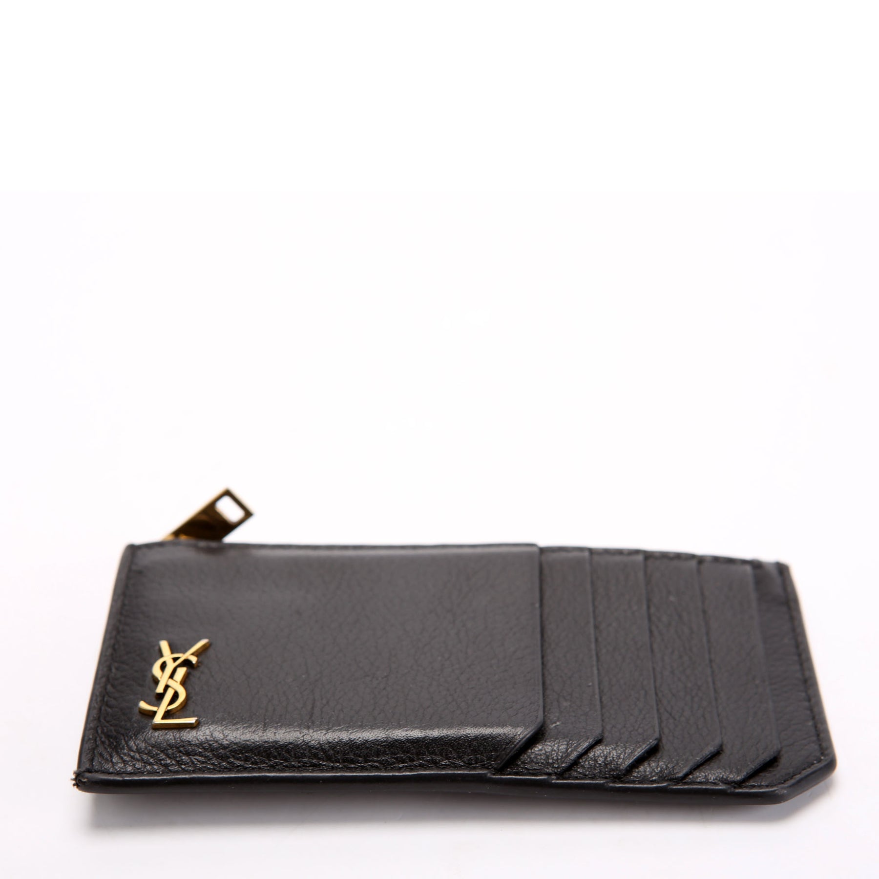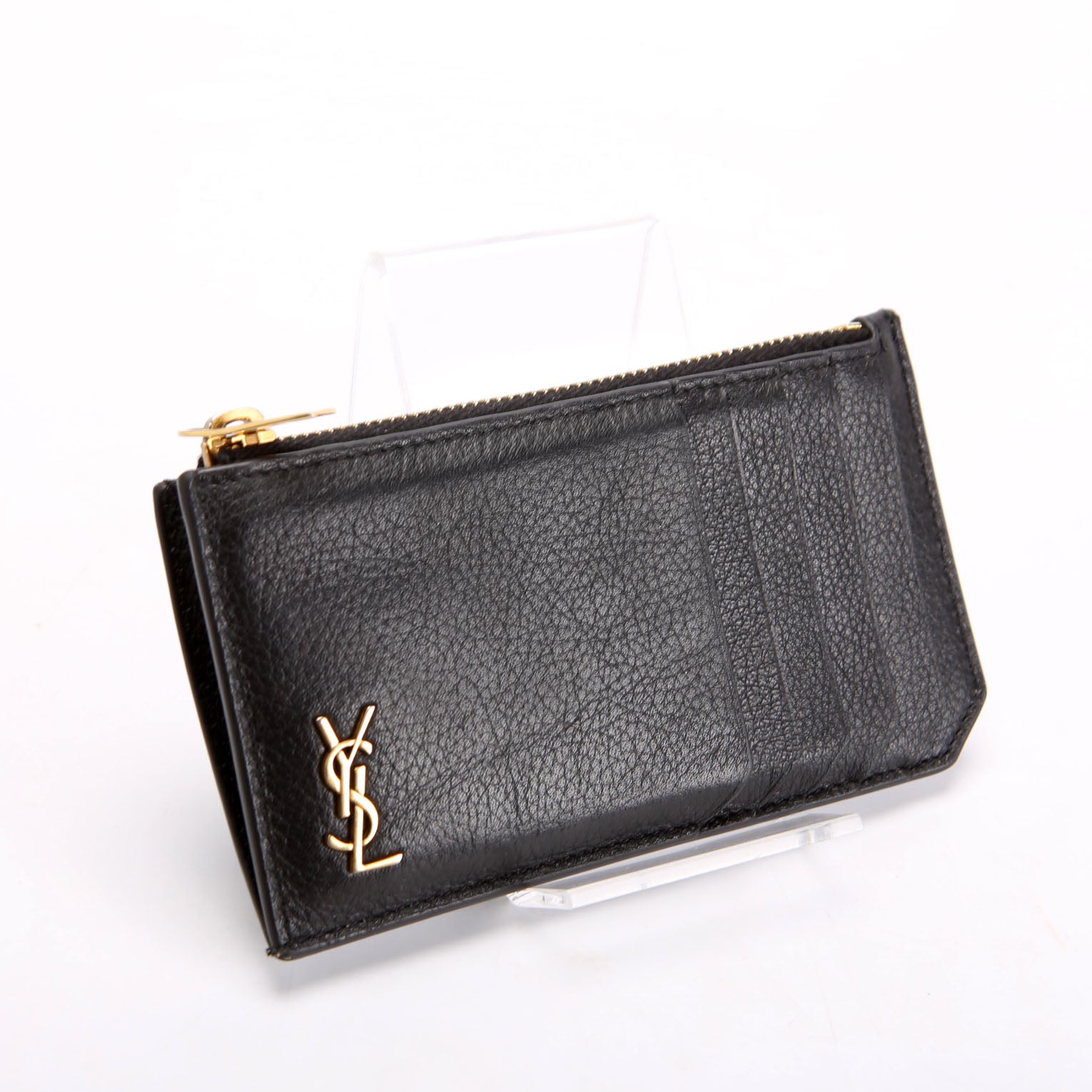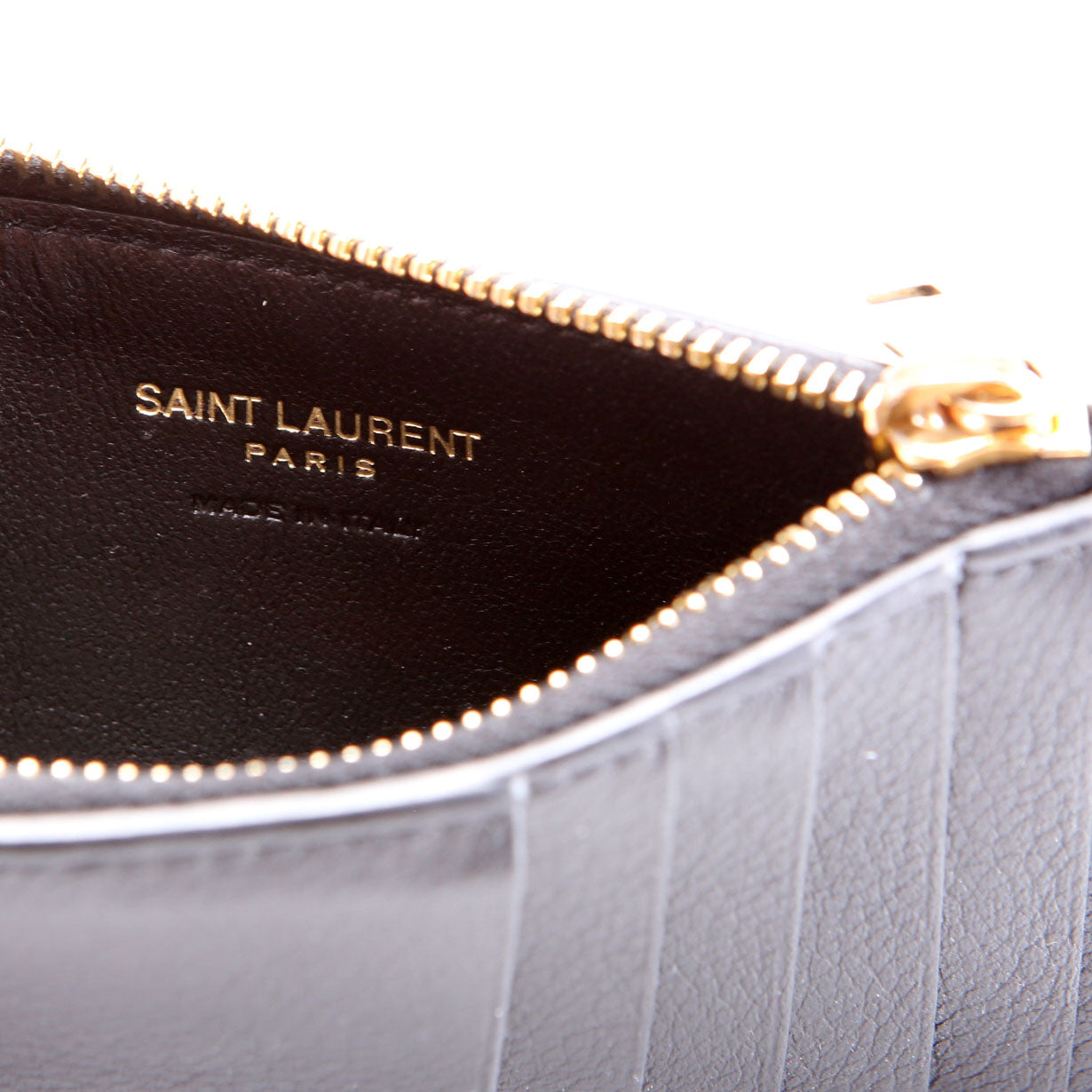 Hardware: The YSL Logo shows minor scratches and discoloration. The zipper functions properly and smoothly.