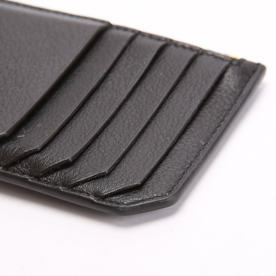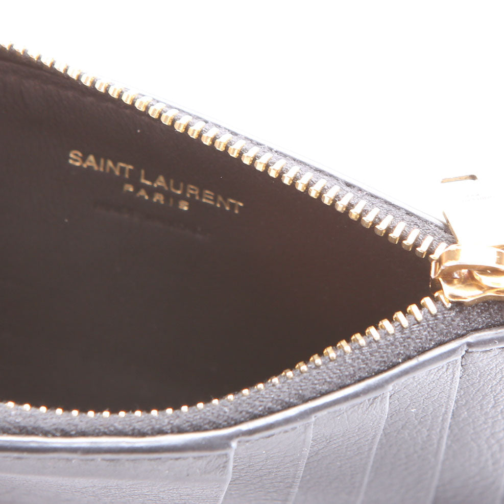 This pre-owned Saint Laurent Tiny Cassandra Fragments Card Holder is guaranteed 100% authentic. The exterior is in the classic Saint Laurent Calfskin Leather.