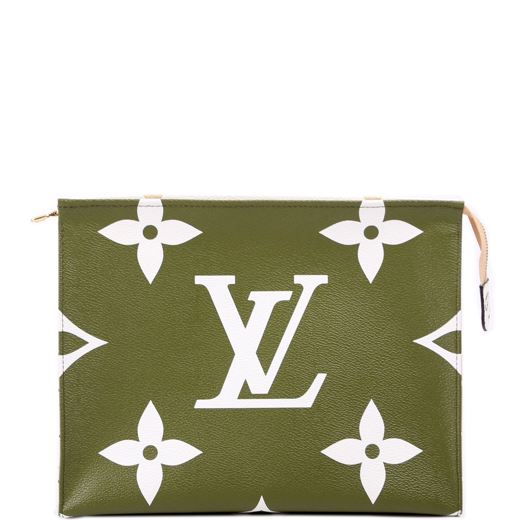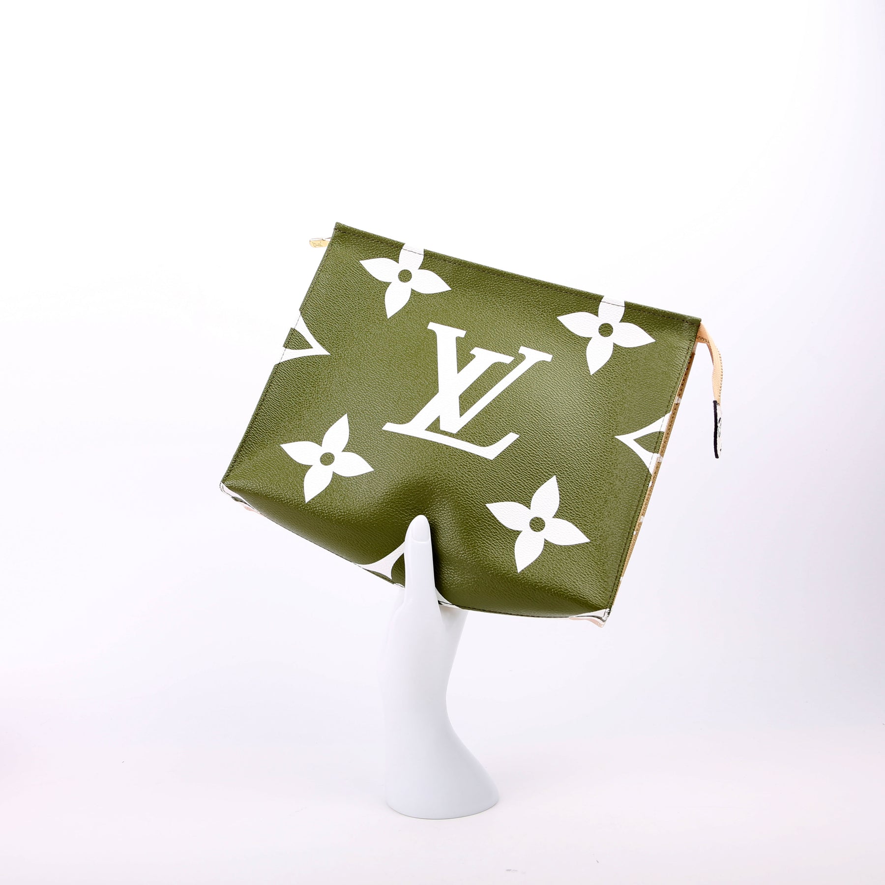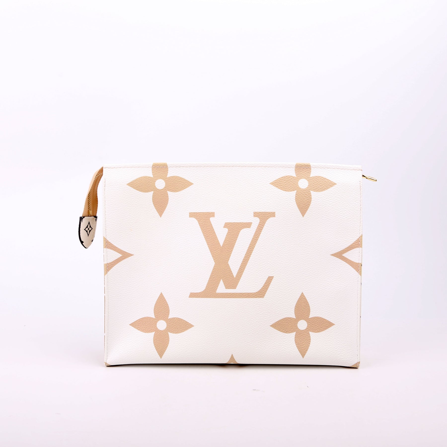 This pre-owned Louis Vuitton Toiletry Pouch 26 is guaranteed 100% authentic. The exterior is in the classic Louis Vuitton Giant Monogram coated canvas.