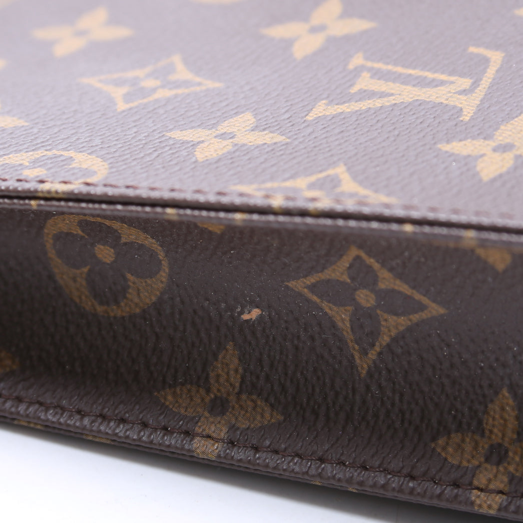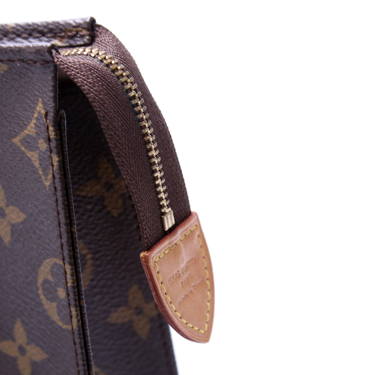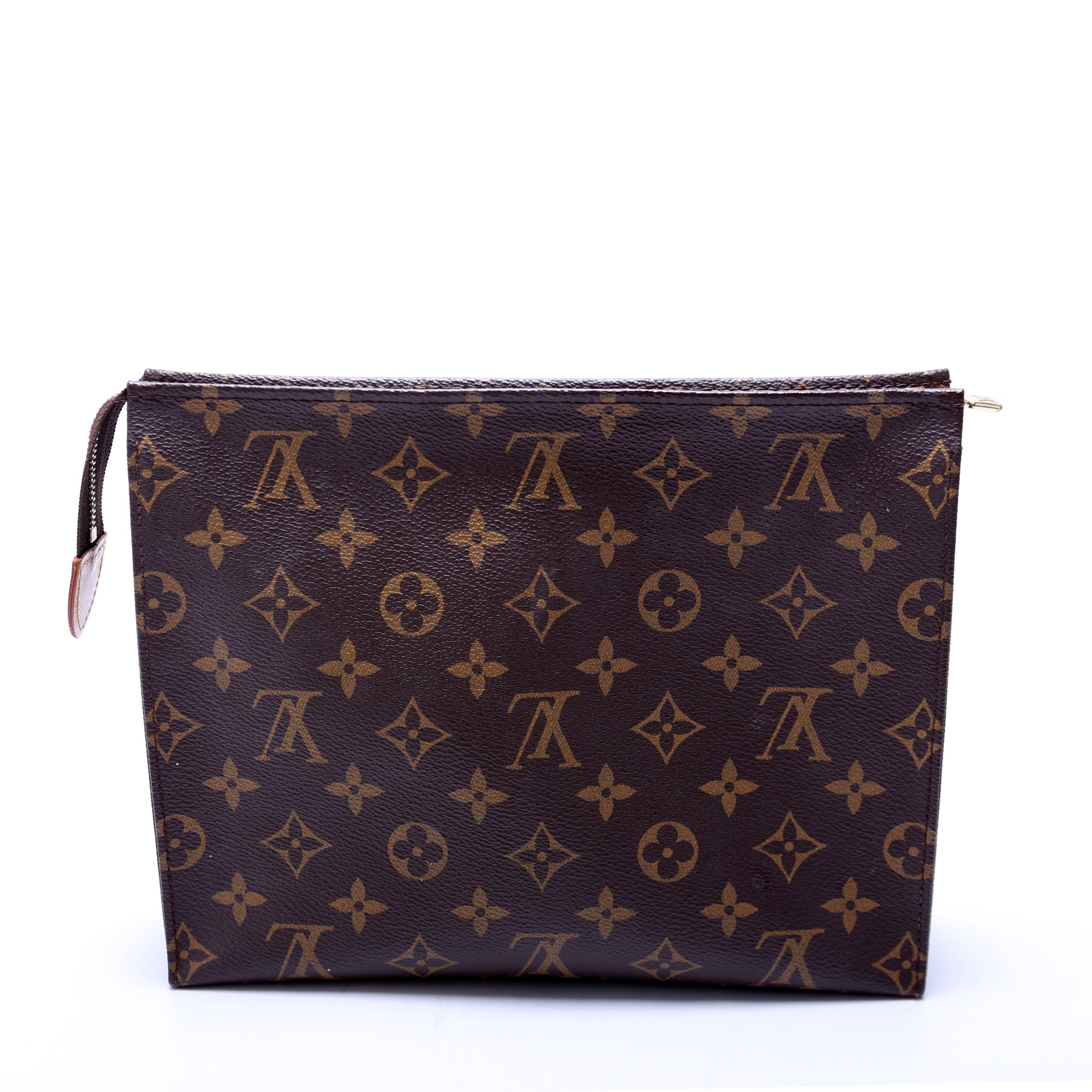 This pre-owned Louis Vuitton Toiletry Pouch 26 Newer is guaranteed 100% authentic. The exterior is in the classic Monogram coated canvas.