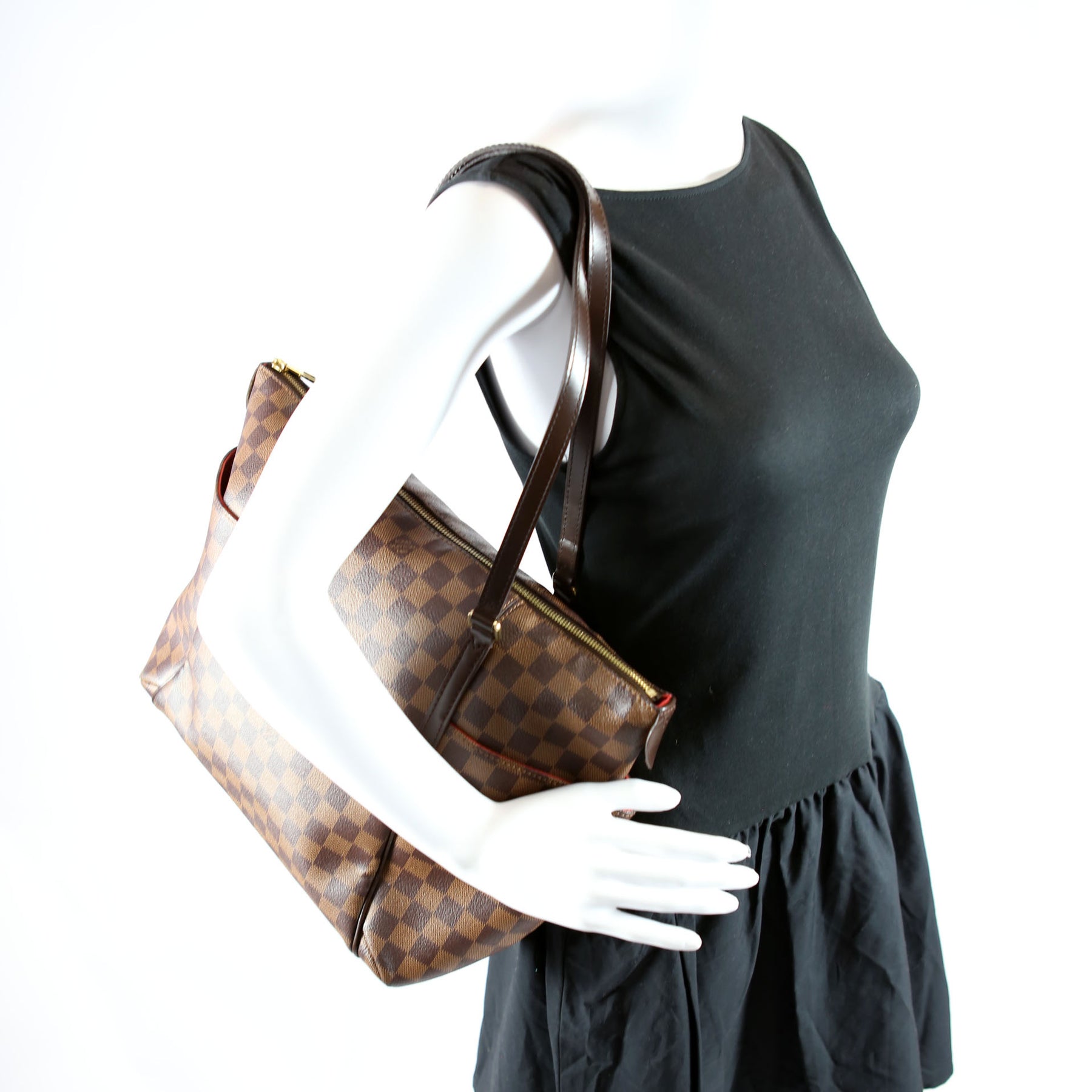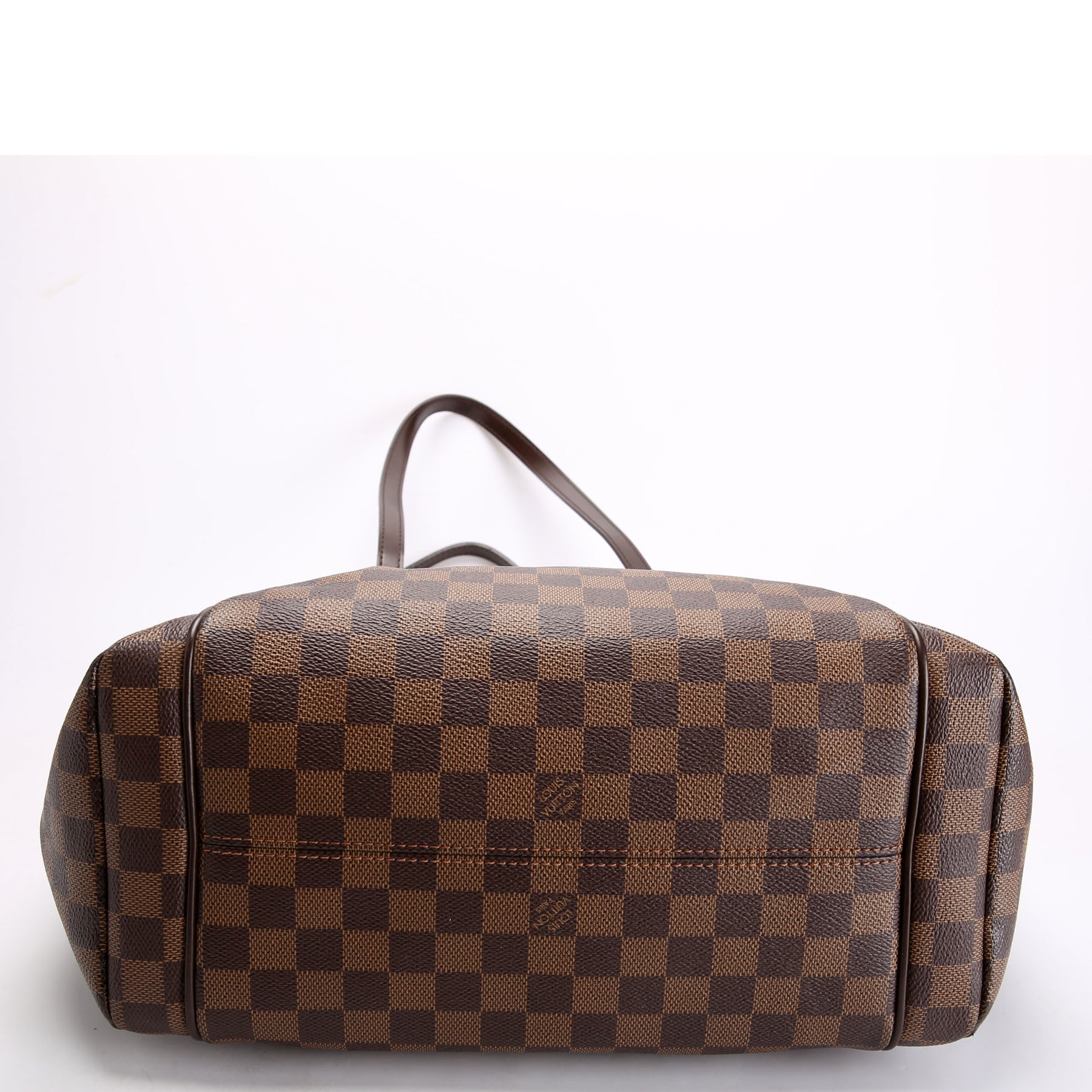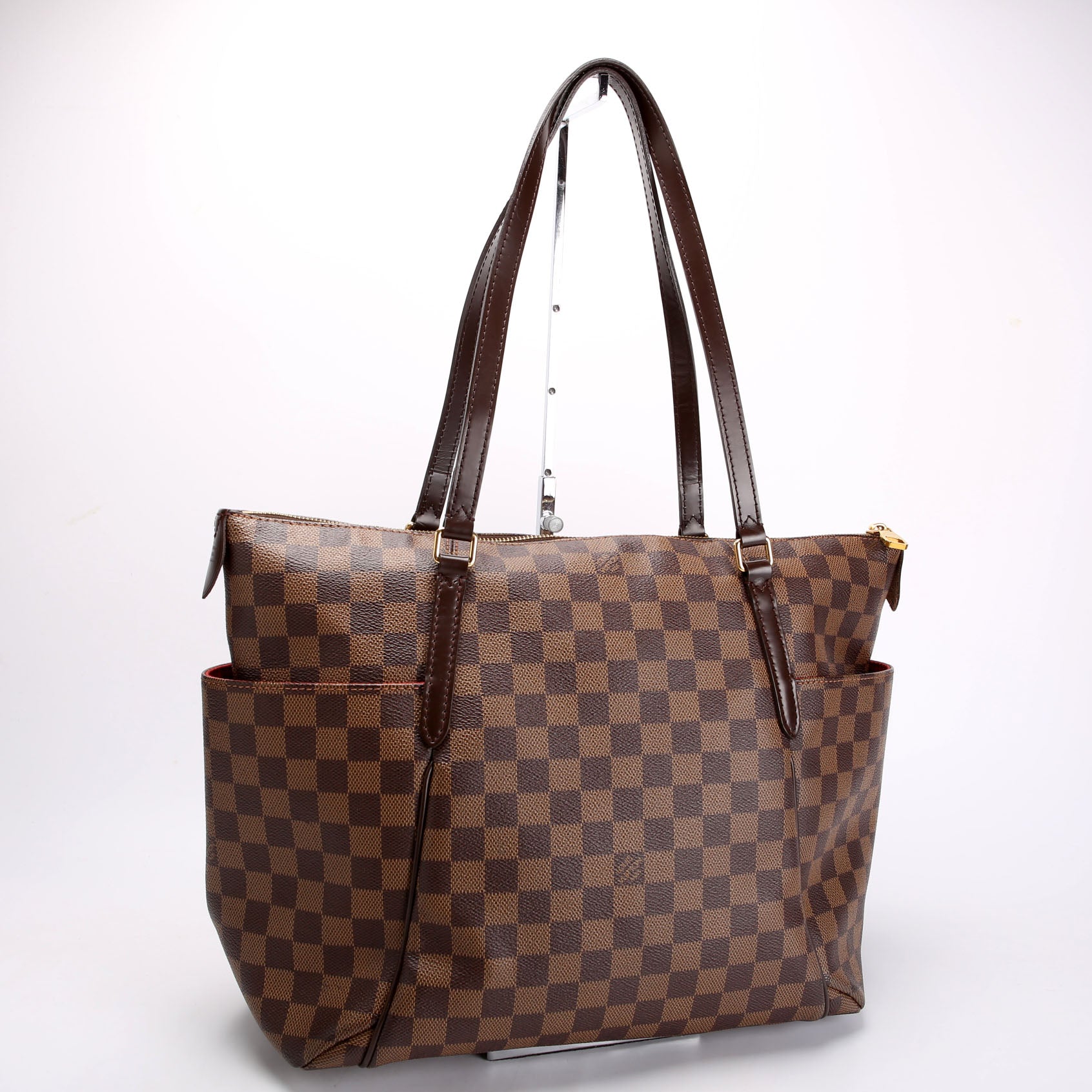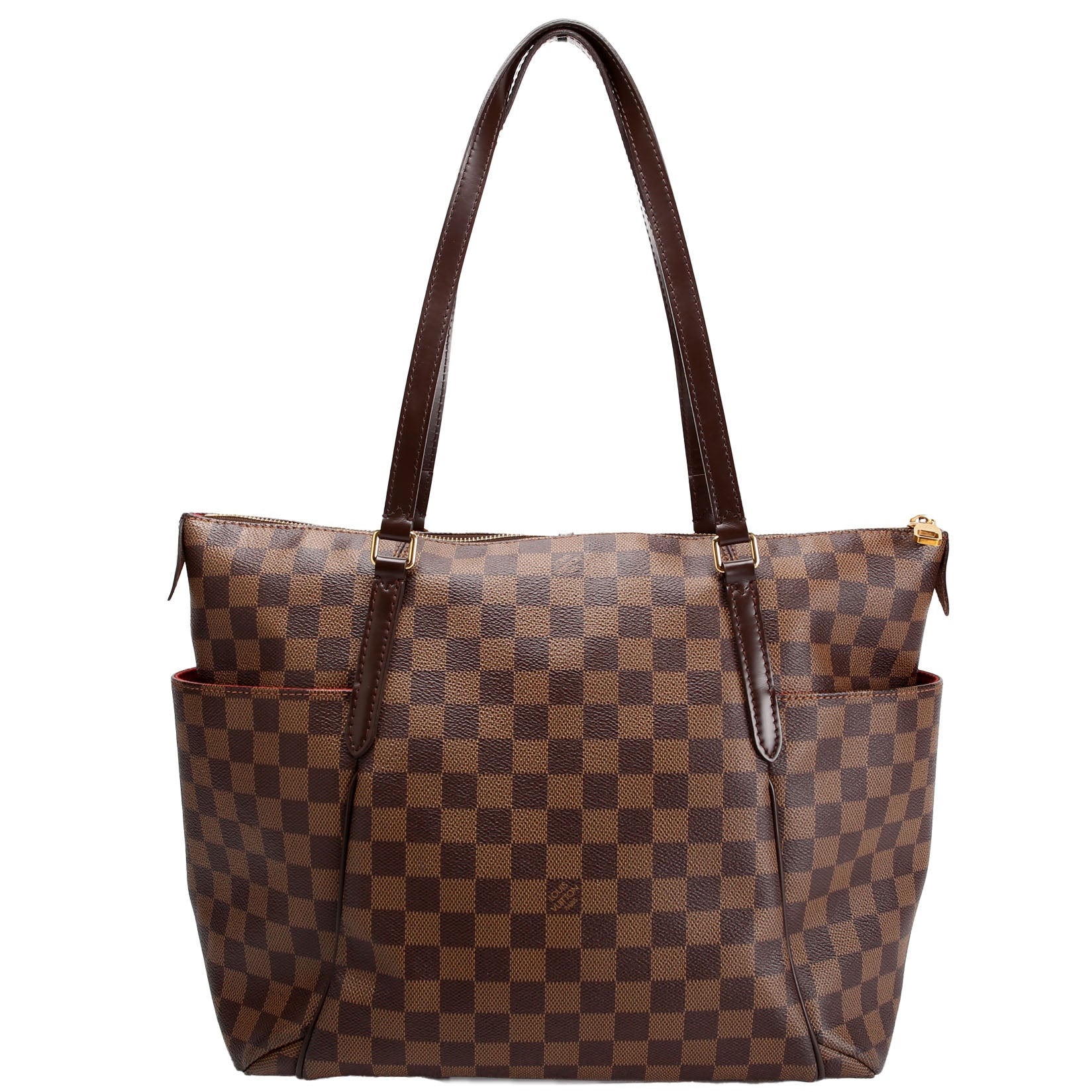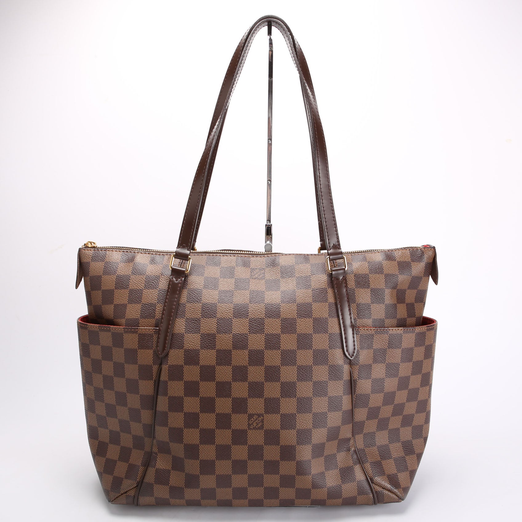 This pre-owned Louis Vuitton Totally MM Ebene is guaranteed 100% authentic. The exterior is in the classic Louis Vuitton Ebene coated canvas.