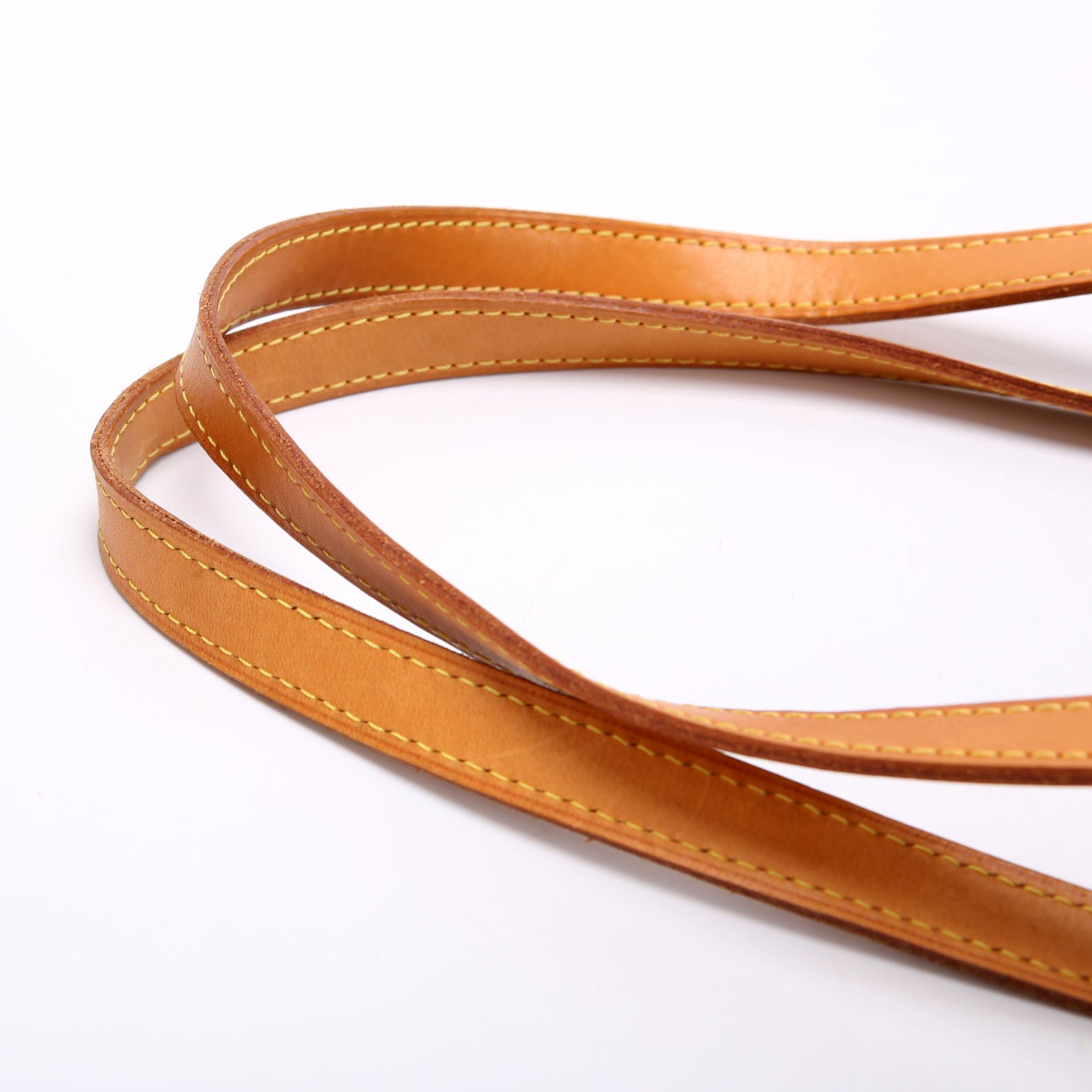 Strap: The leather straps shows light wear, discoloration, and seam splitting throughout. There is heavy discoloration by the hardware.