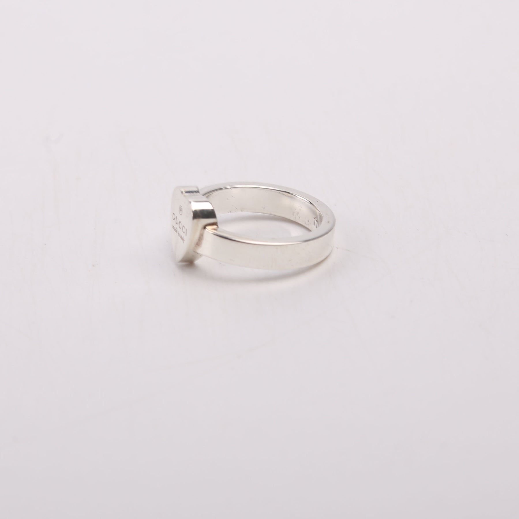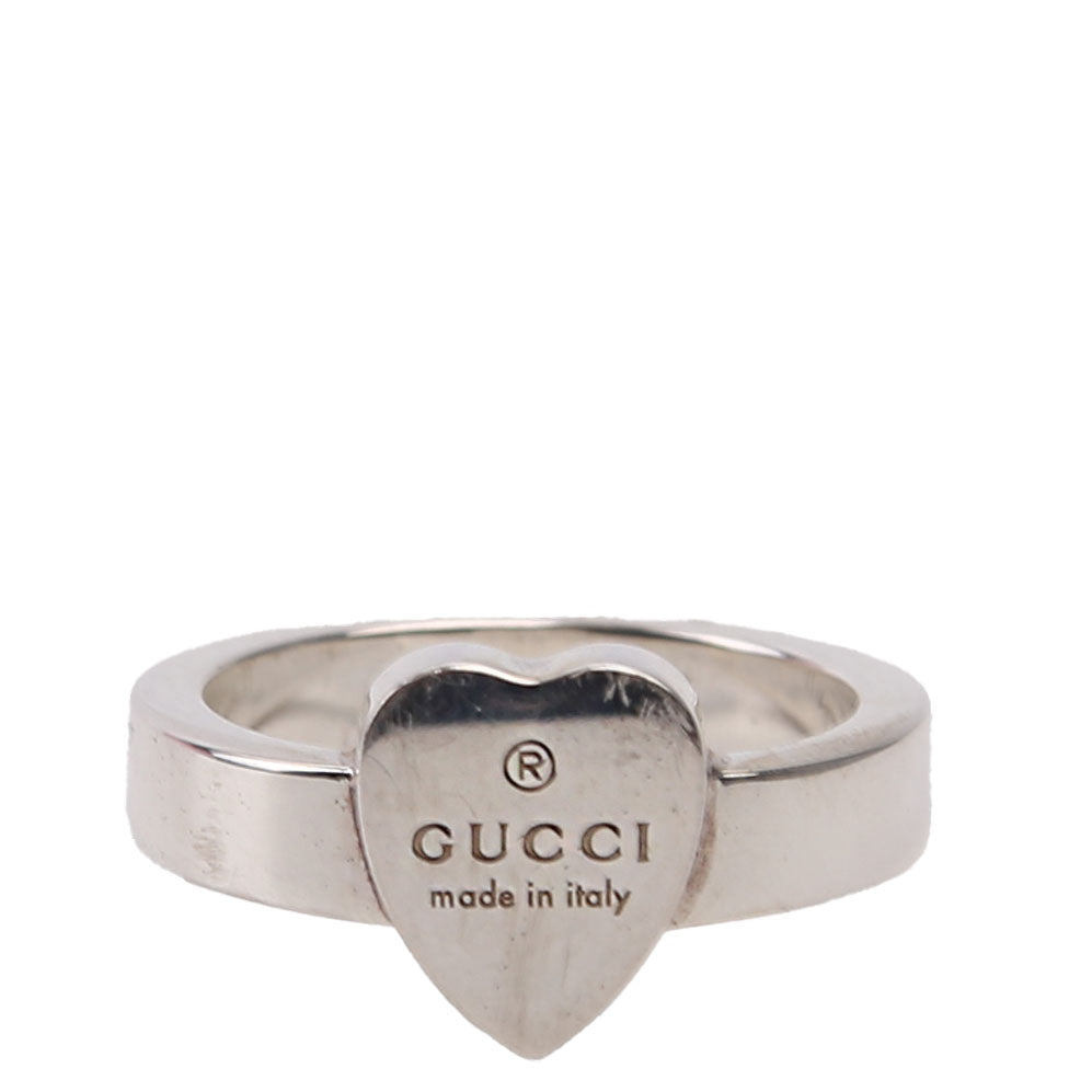 This pre-owned Gucci Trademark Logo Heart Ring 925 is guaranteed 100% authentic.
