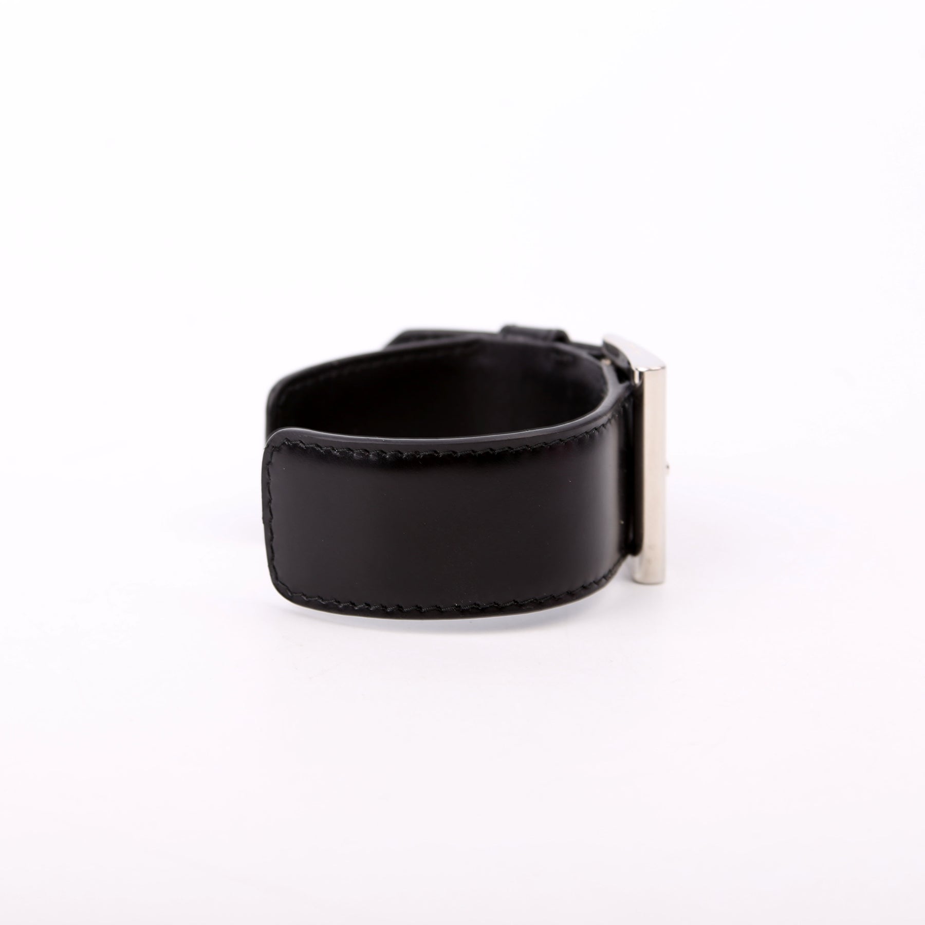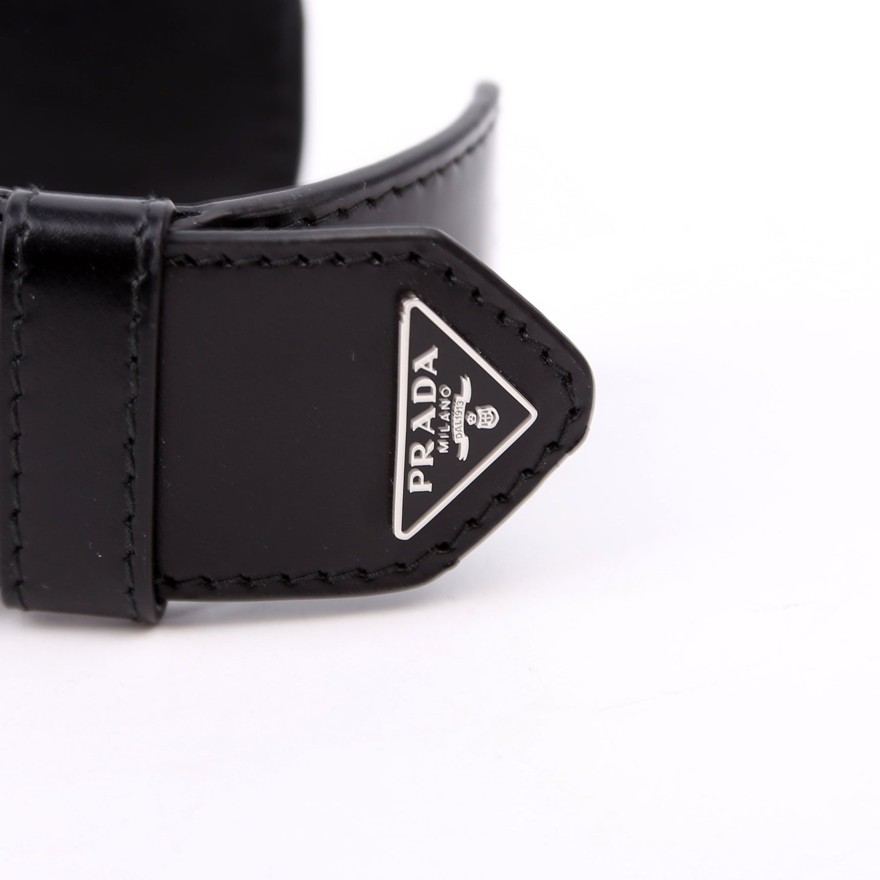 This pre-owned Prada Triangle Logo Leather Arm Cuff Bracelet is guaranteed 100% authentic.