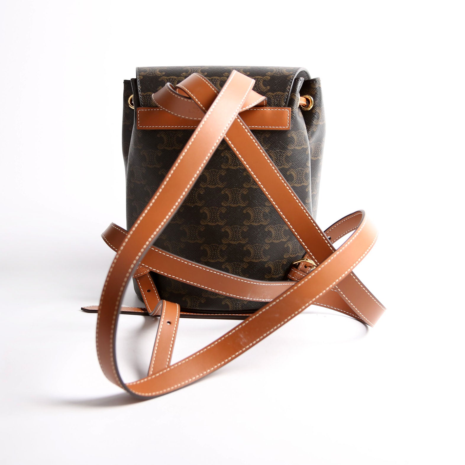 This pre-owned Celine Triomphe Calfskin Bonnie Backpack is guaranteed 100% authentic.