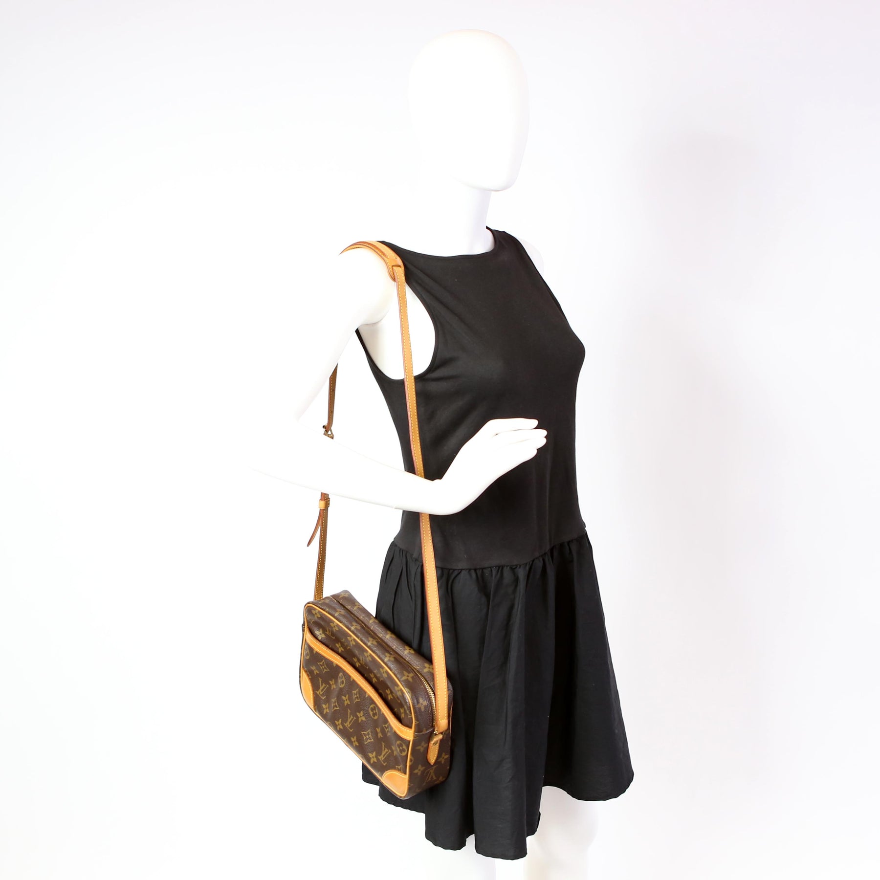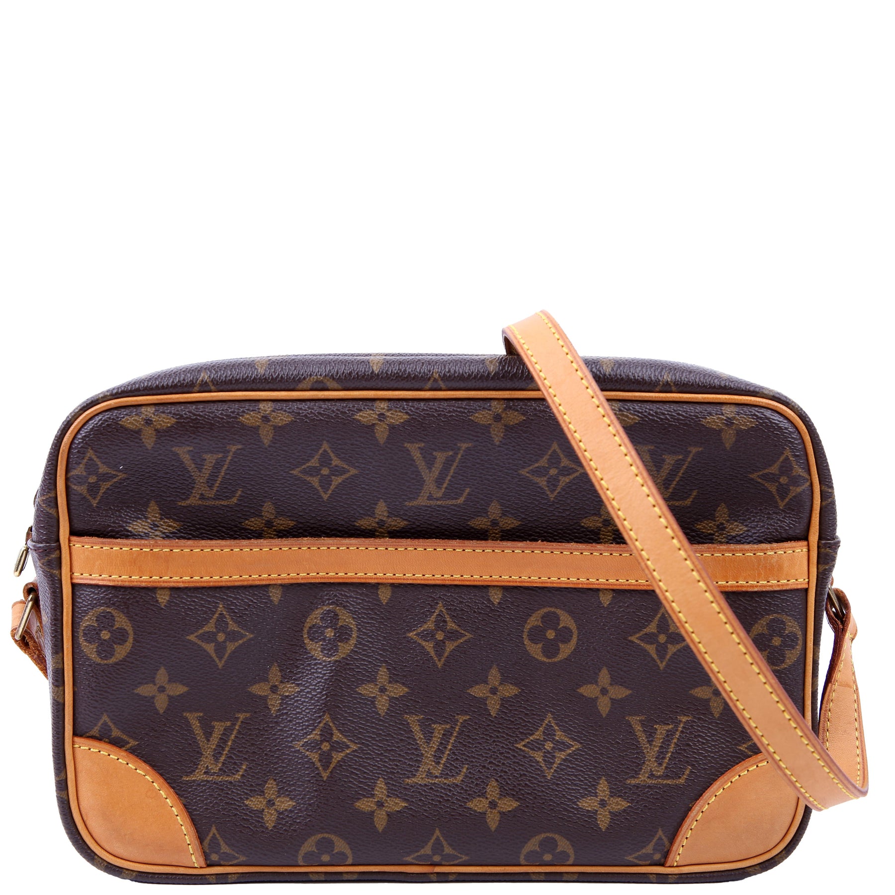 This pre-owned Louis Vuitton Trocadero 27 is guaranteed 100% authentic. The exterior is in the classic Louis Vuitton Monogram coated canvas.