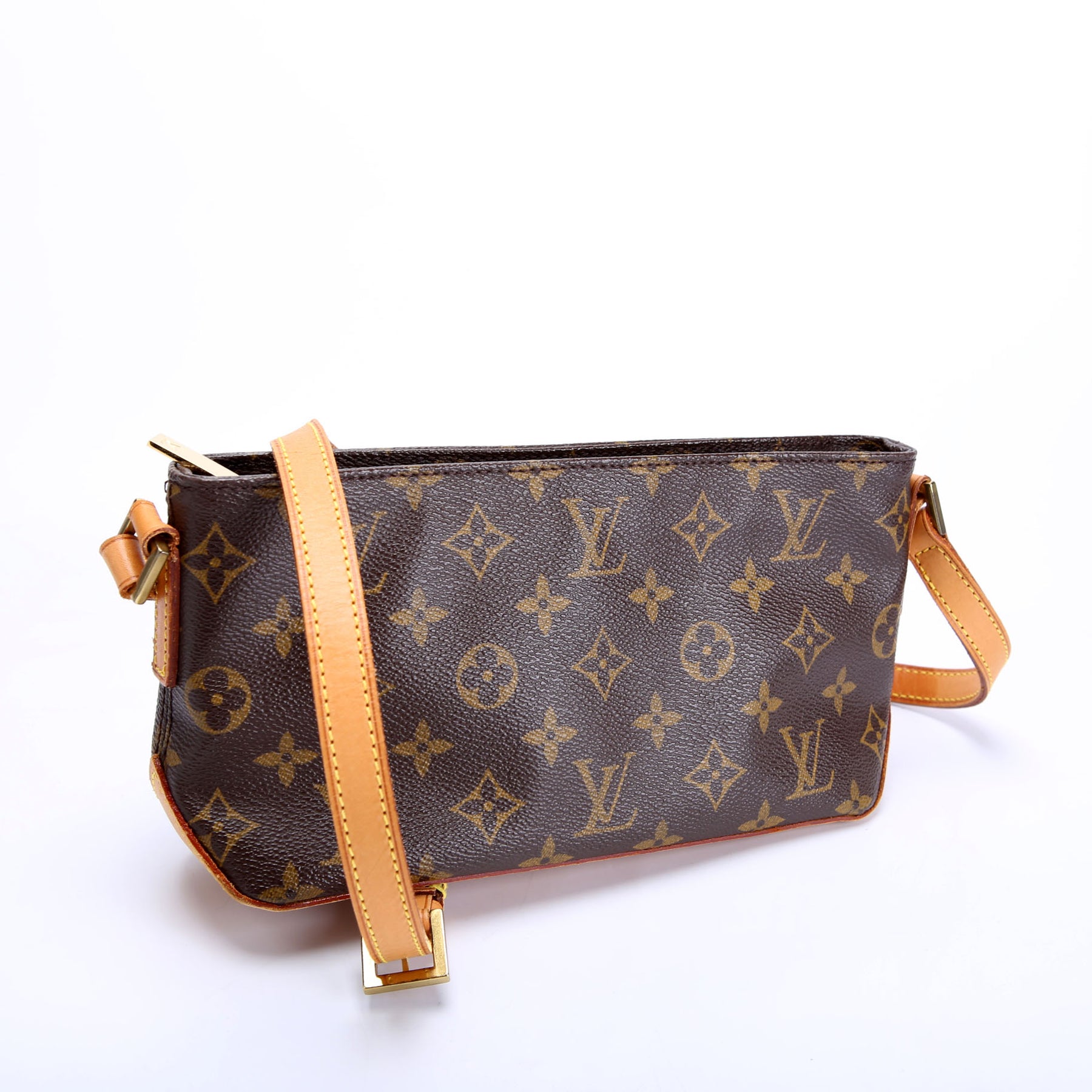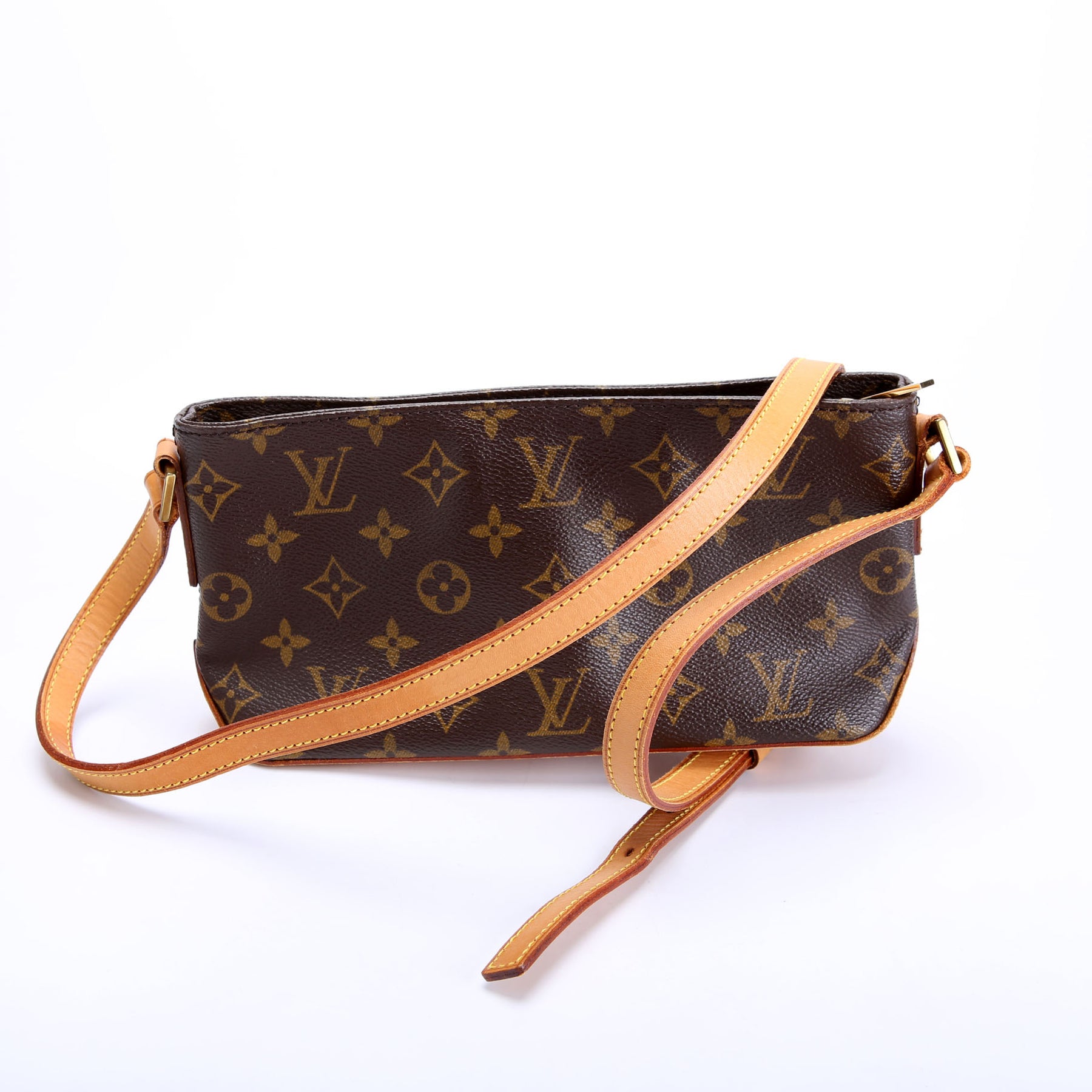 This pre-owned Louis Vuitton Trotteur is guaranteed 100% authentic. The exterior is in the classic Louis Vuitton Monogram coated canvas.