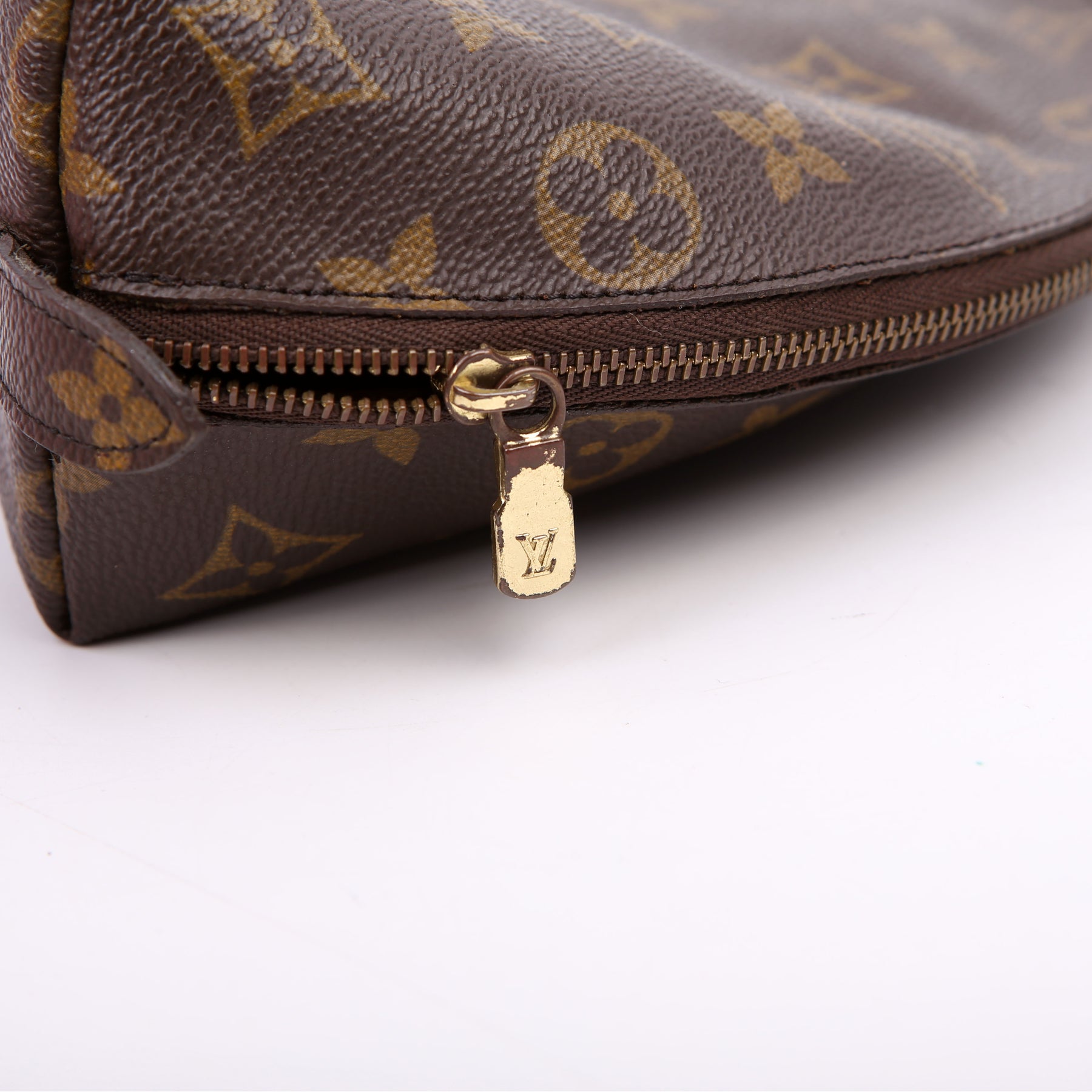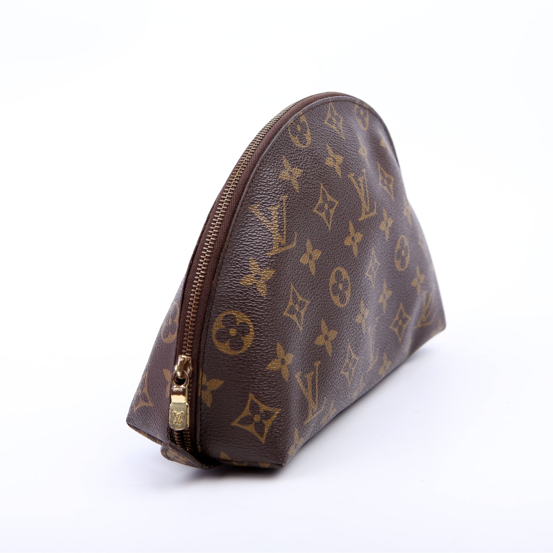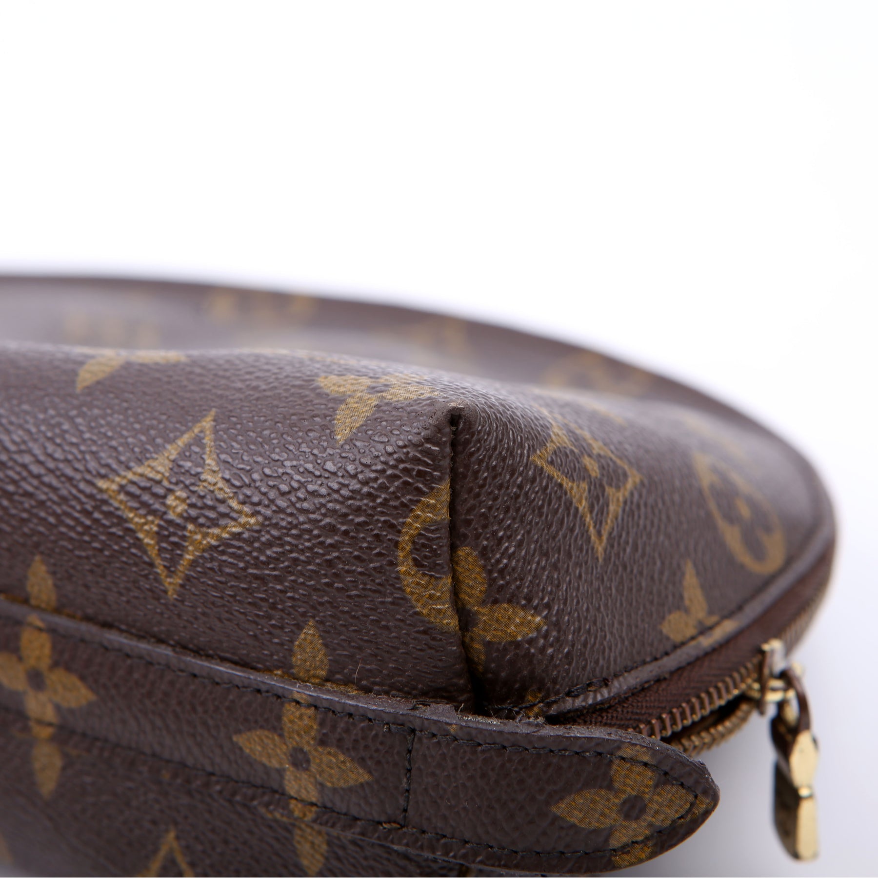 This pre-owned Louis Vuitton Trousse Demi Ronde 23 is guaranteed 100% authentic. The exterior is in the classic Louis Vuitton Monogram coated canvas.