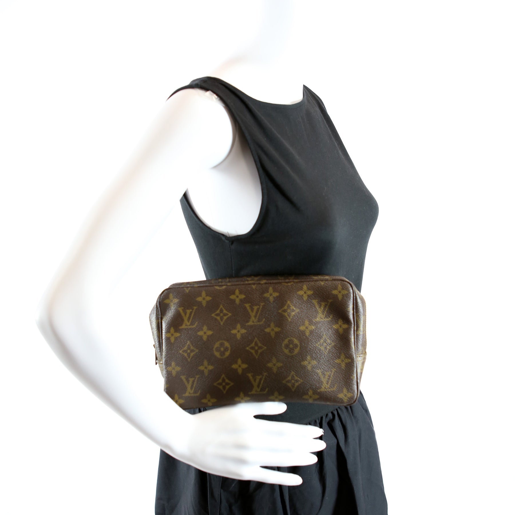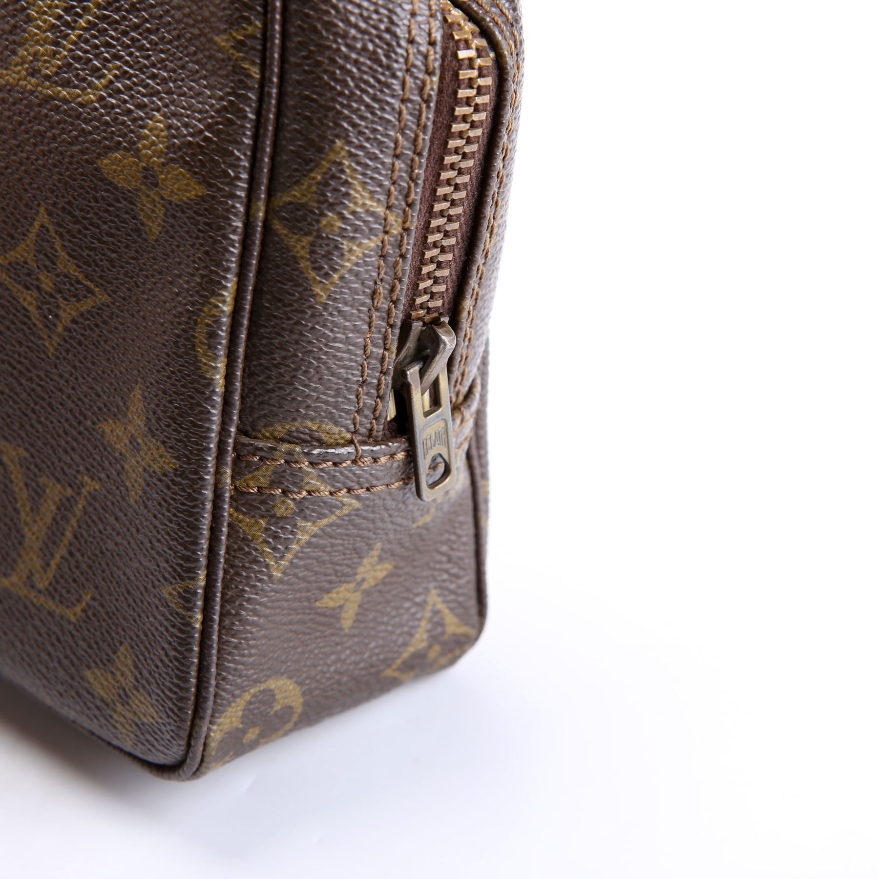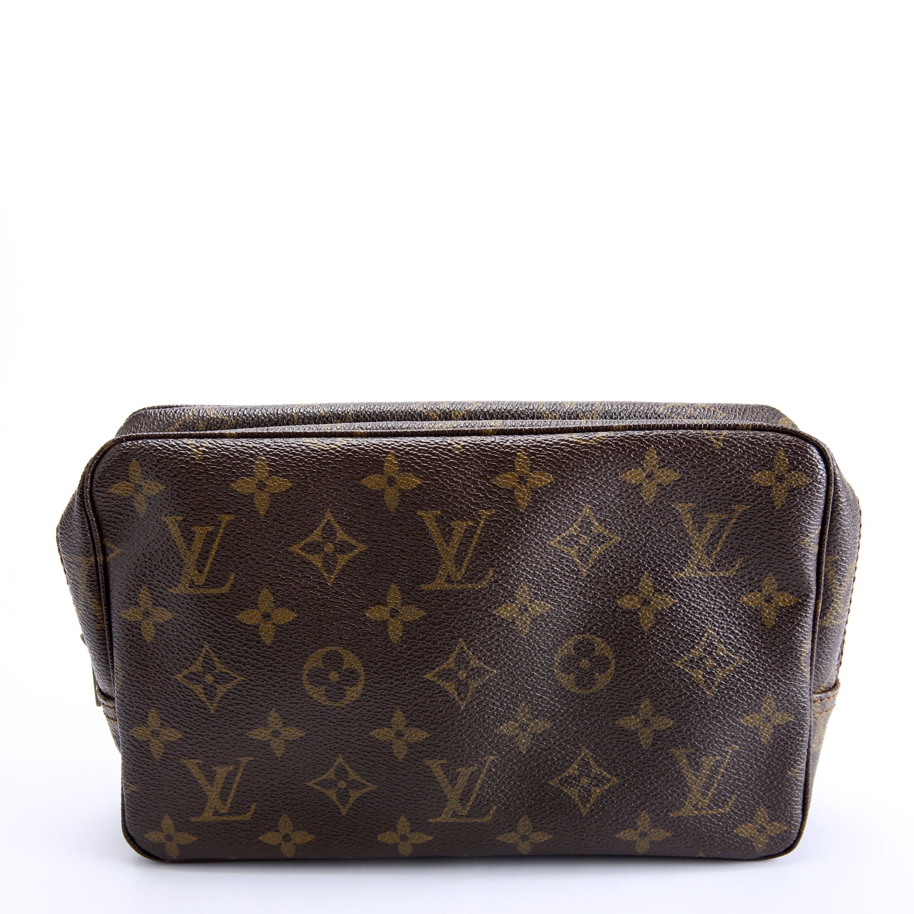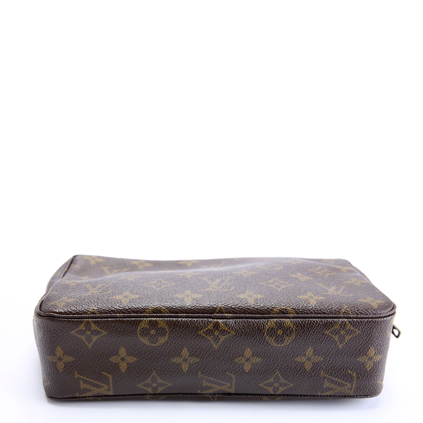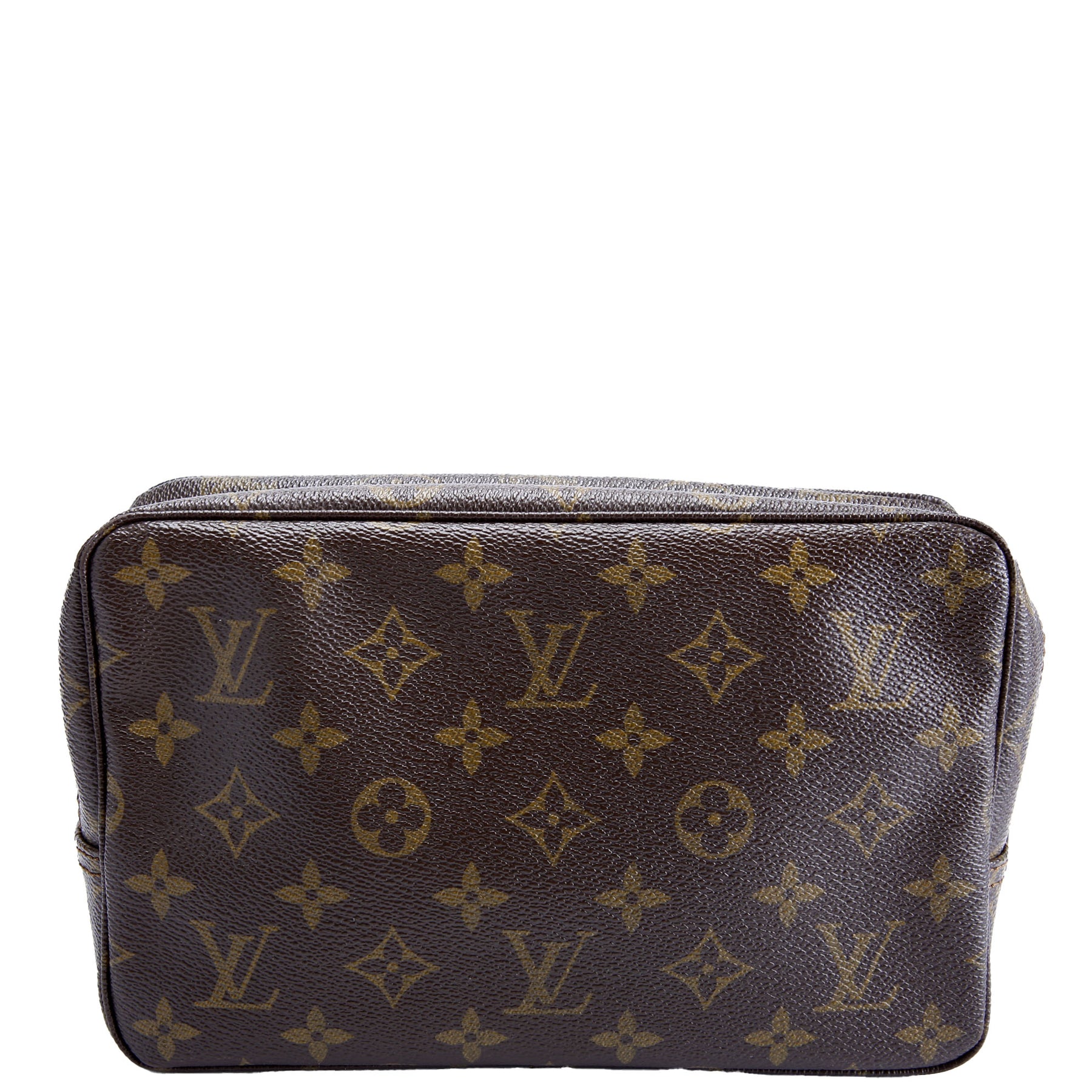 This pre-owned Louis Vuitton Trousse Toilette 23 guaranteed 100% authentic. The exterior is in the classic Louis Vuitton Monogram coated canvas.