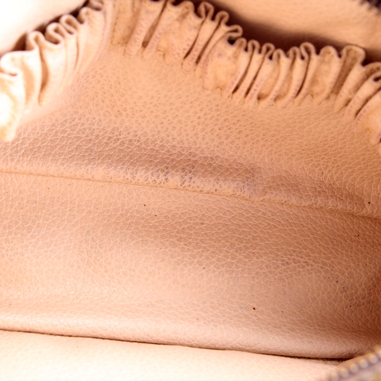 Hardware: The zipper operates properly and runs smoothly. The hardware shows heavy discoloration and tarnishing.