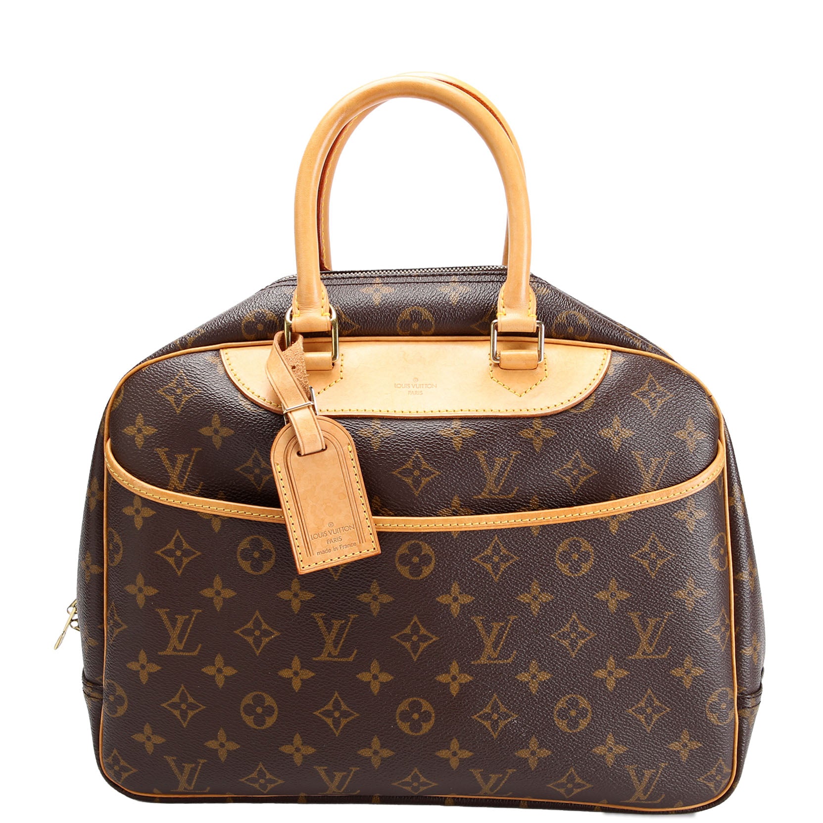 This pre-owned Louis Vuitton Trouville is guaranteed 100% authentic. The exterior is in the classic monogram coated canvas.