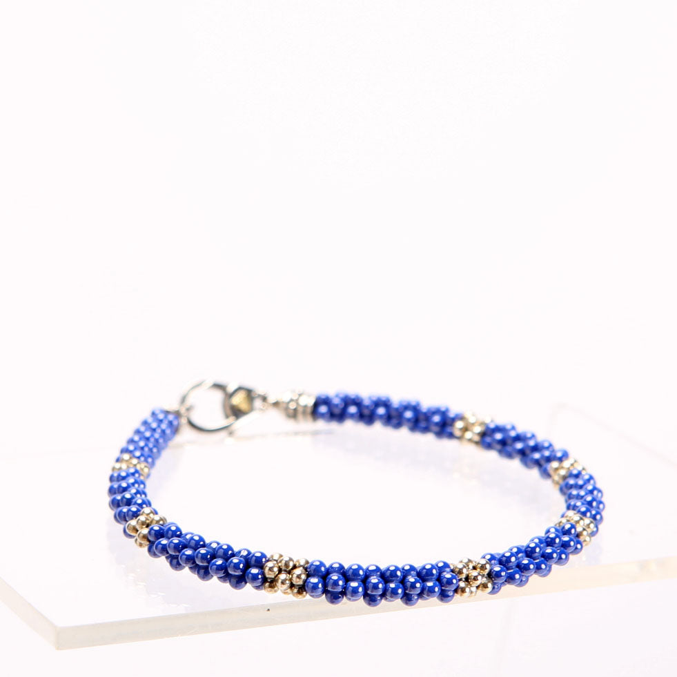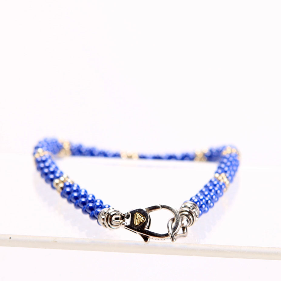 This pre-owned Lagos Ultramarine Seven Station Rope 925/Ceramic Bracelet is guaranteed 100% authentic.