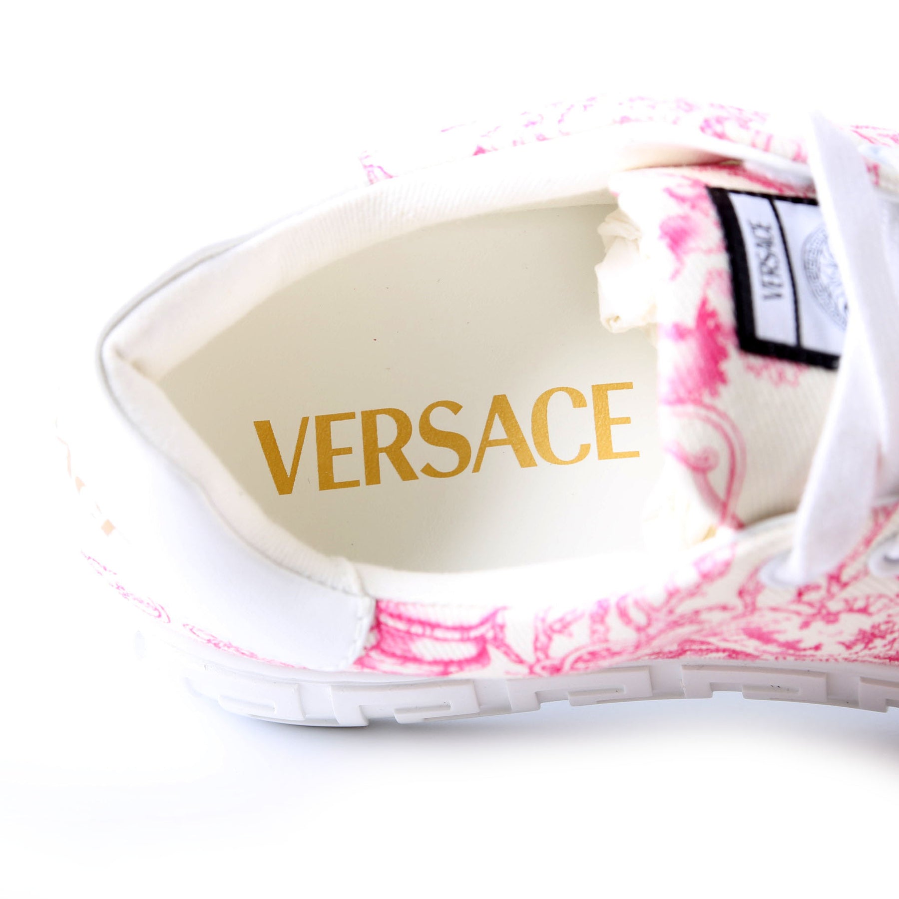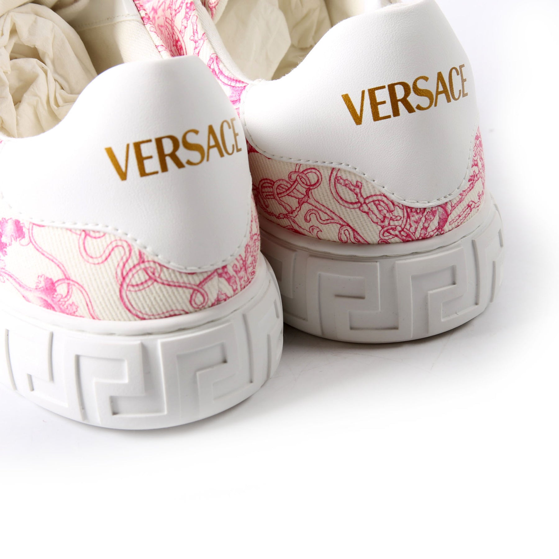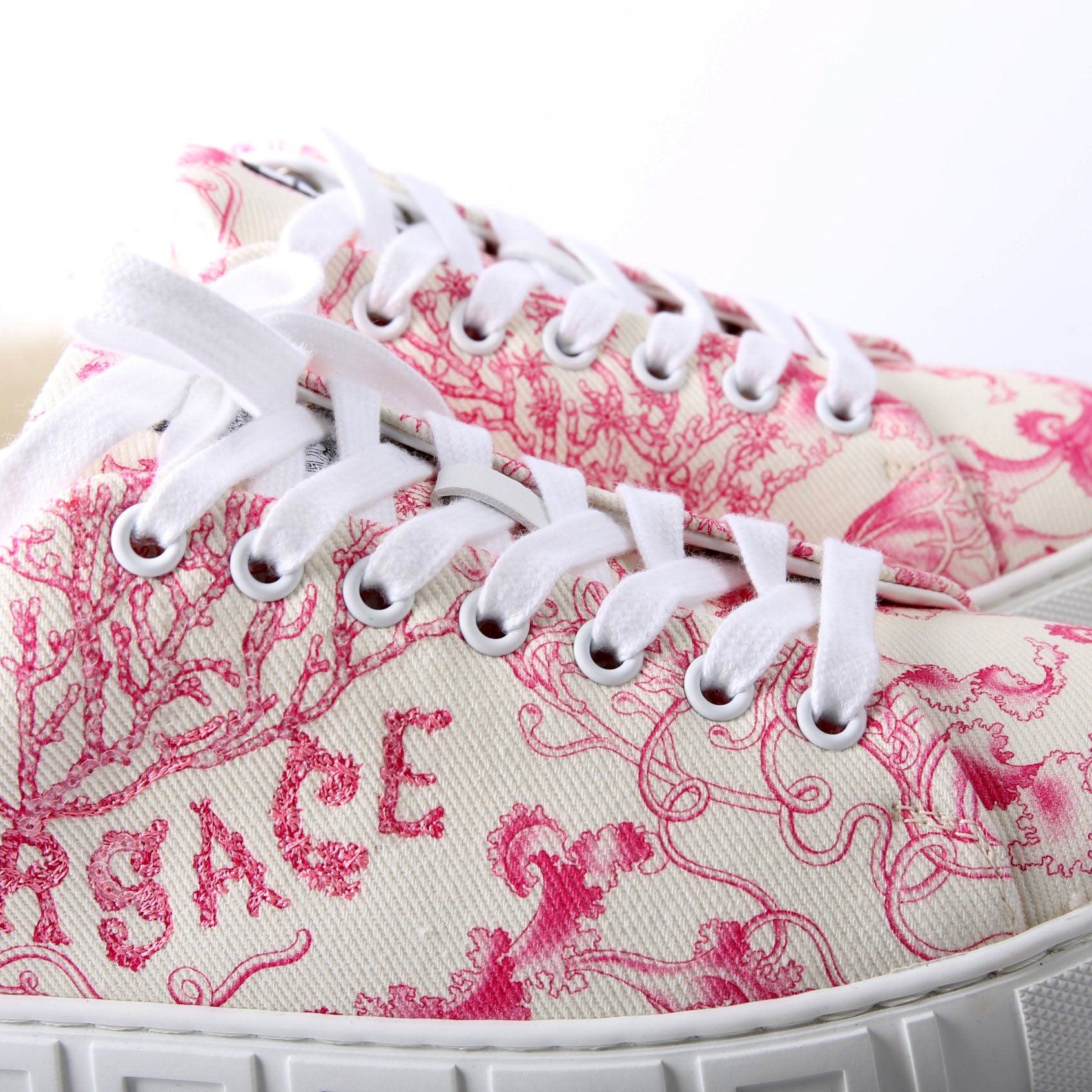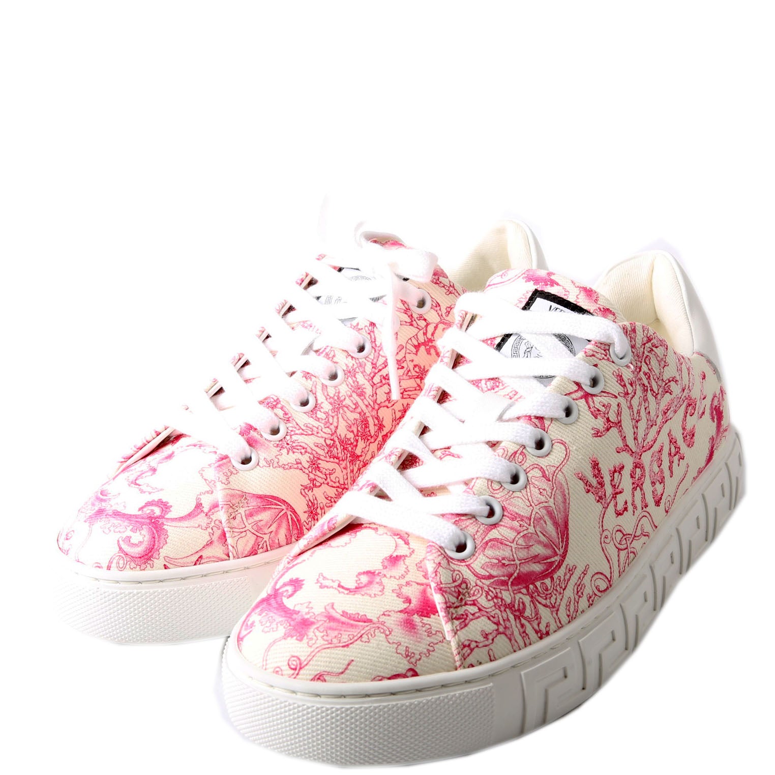 These pre-owned Versace Underwater Barocco Greca Sneakers are guaranteed 100% authentic.