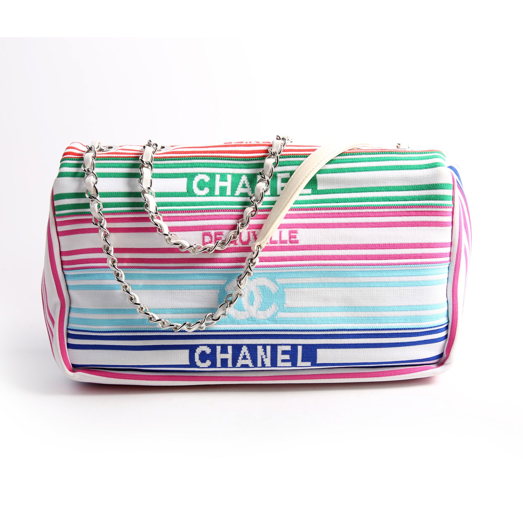 This pre-owned Chanel Venise Biarritz Flap 27M is guaranteed 100% authentic. The exterior is in the classic Chanel Mixed Fibers and Lambskin Leather.