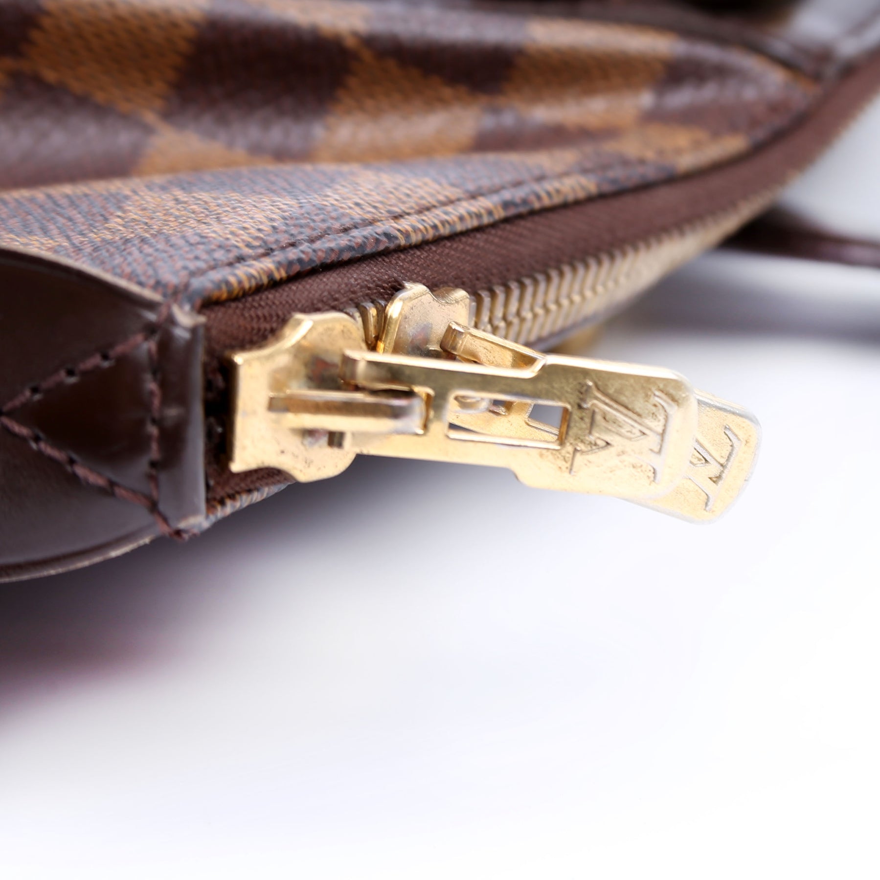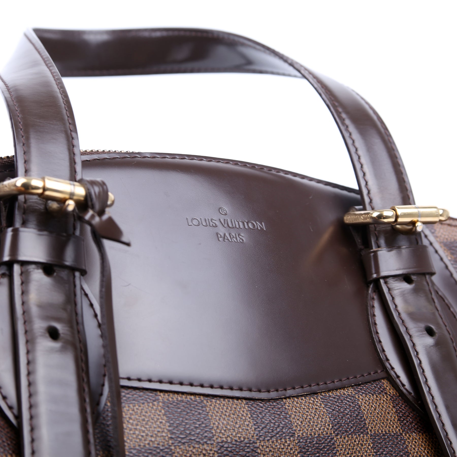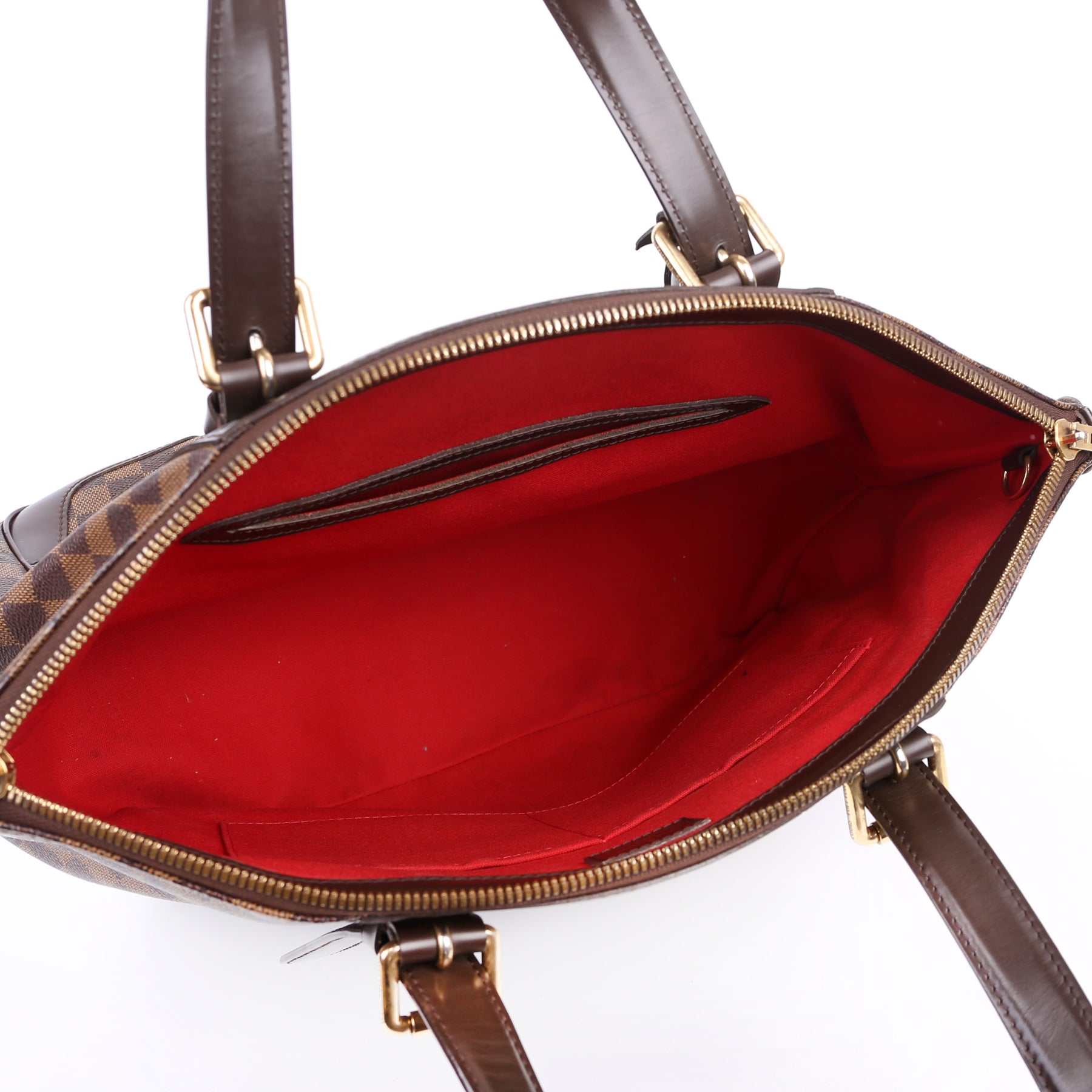 This pre-owned Louis Vuitton Verona GM is guaranteed 100% authentic. The exterior is in the classic Louis Vuitton Damier Ebene coated canvas.