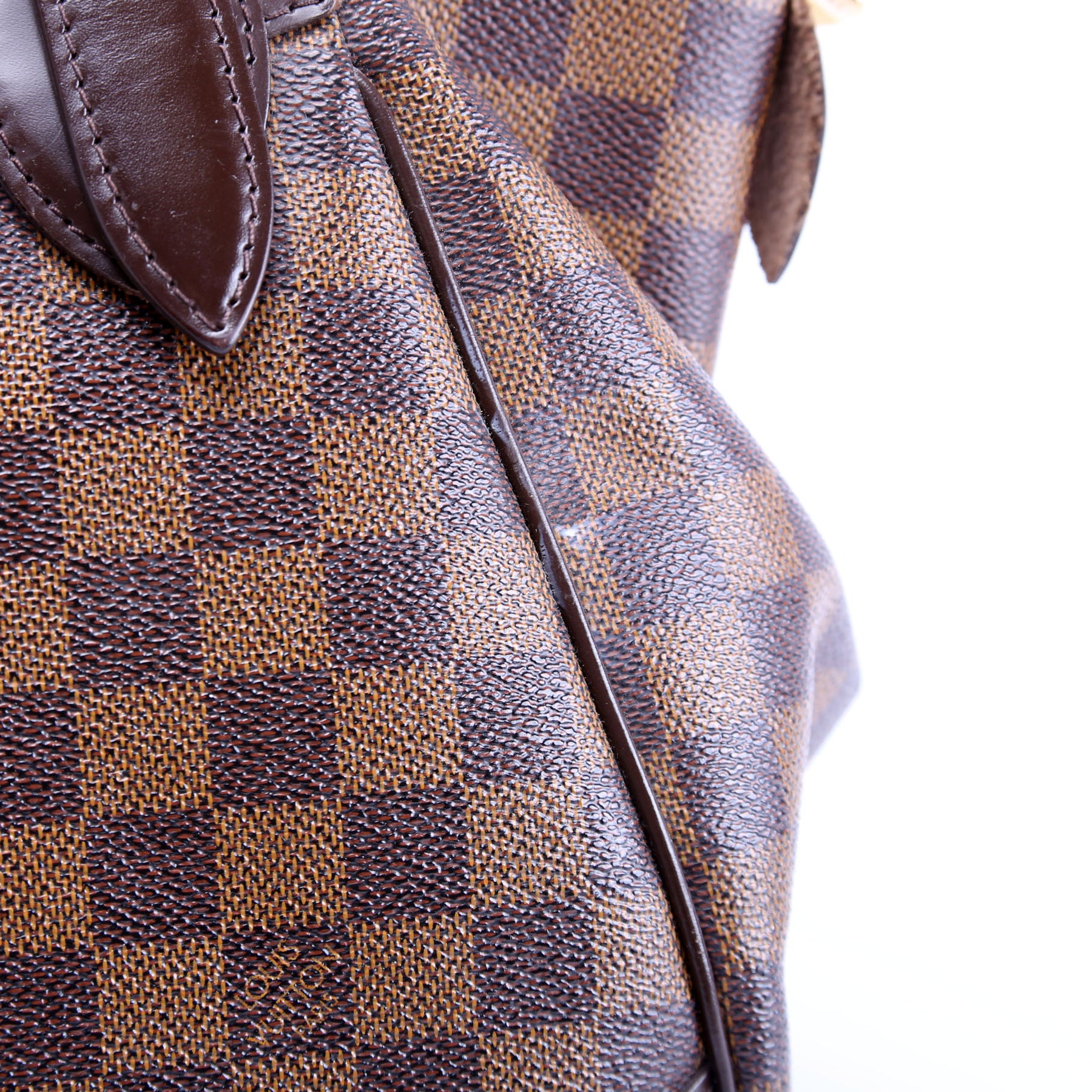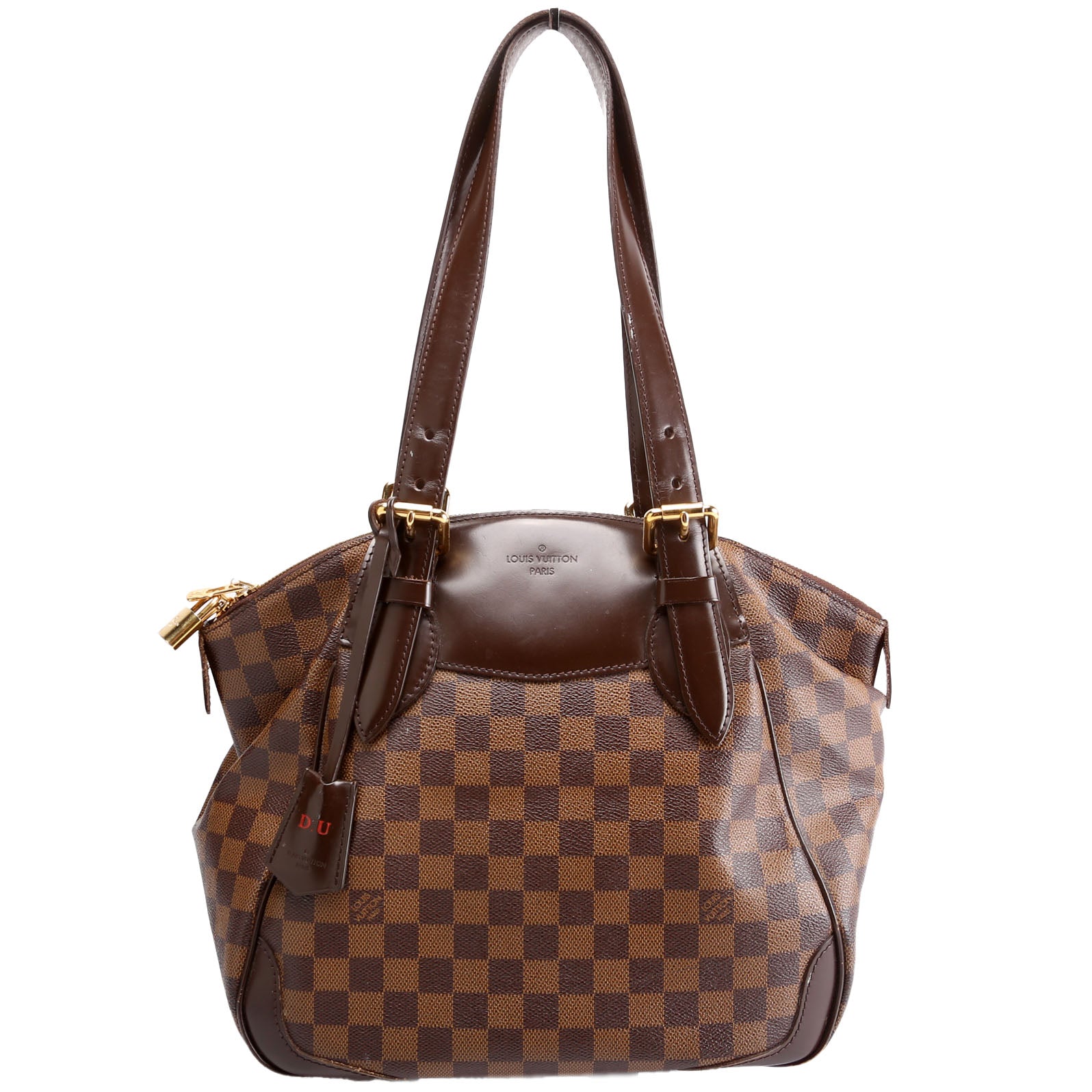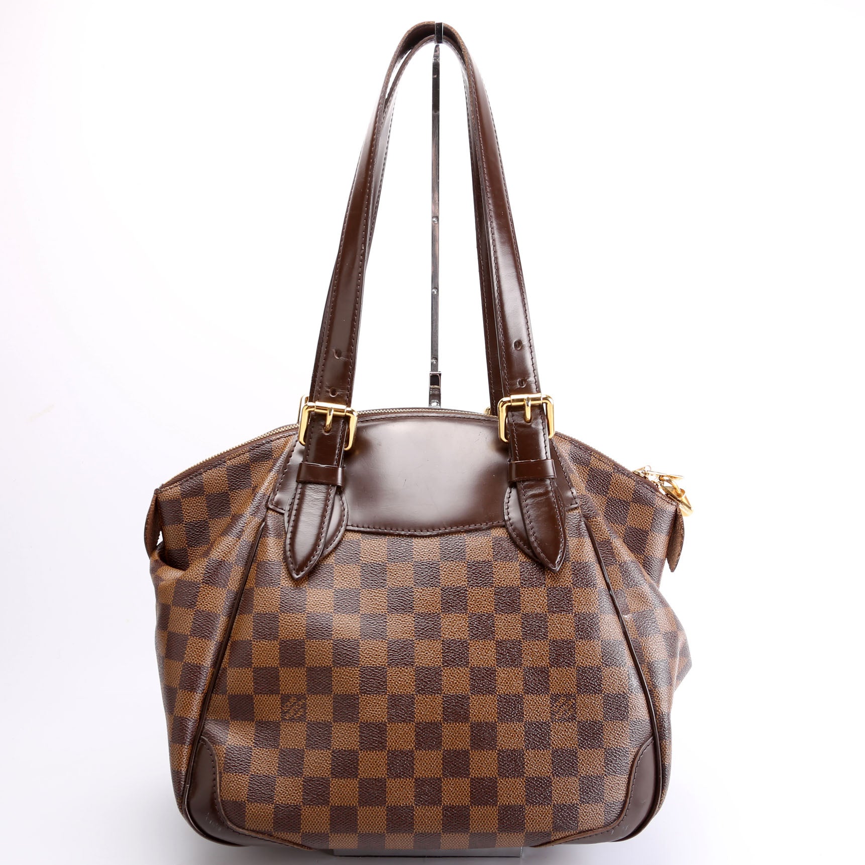 This pre-owned Louis Vuitton Verona MM is guaranteed 100% authentic. The exterior is in the classic Louis Vuitton Damier Ebene coated canvas.