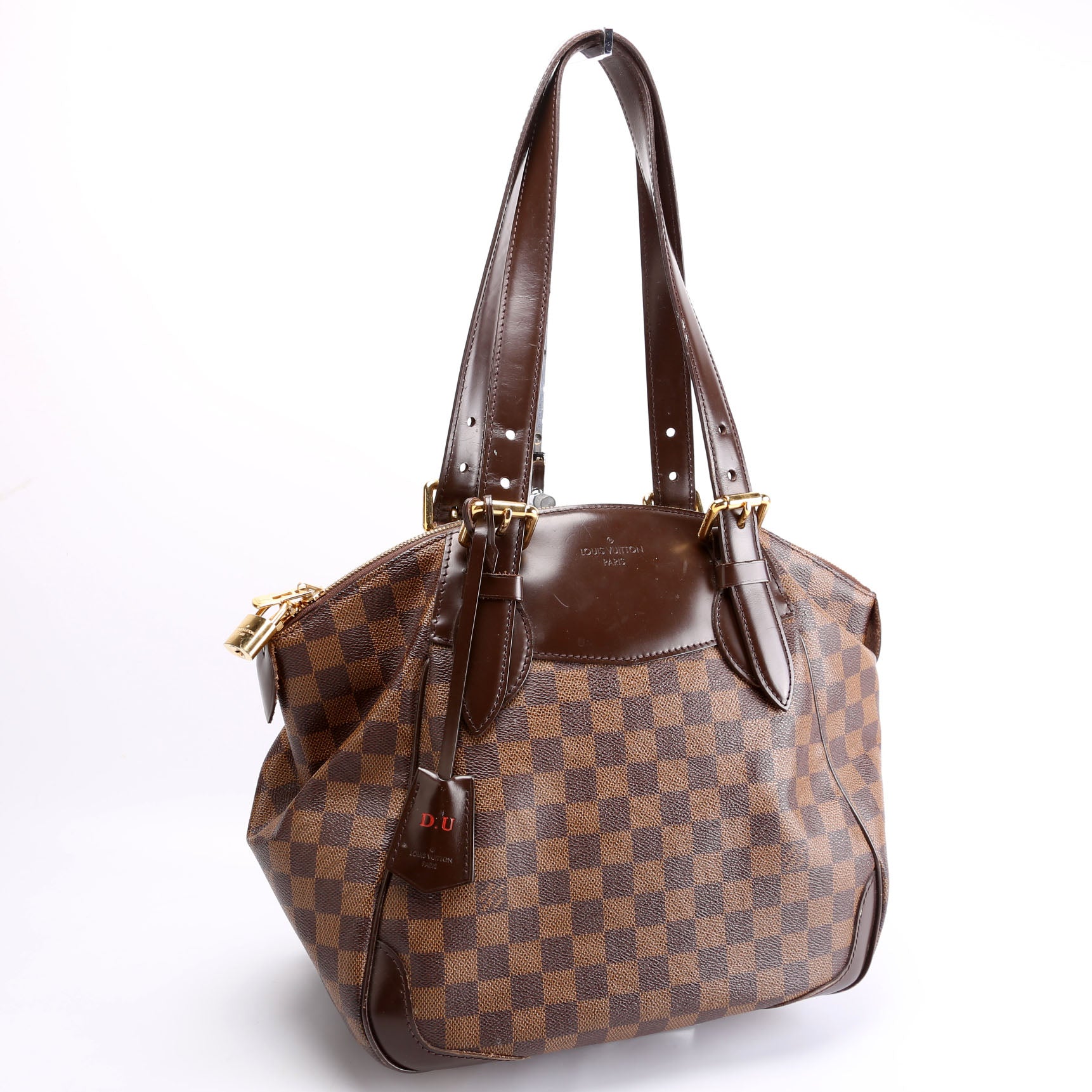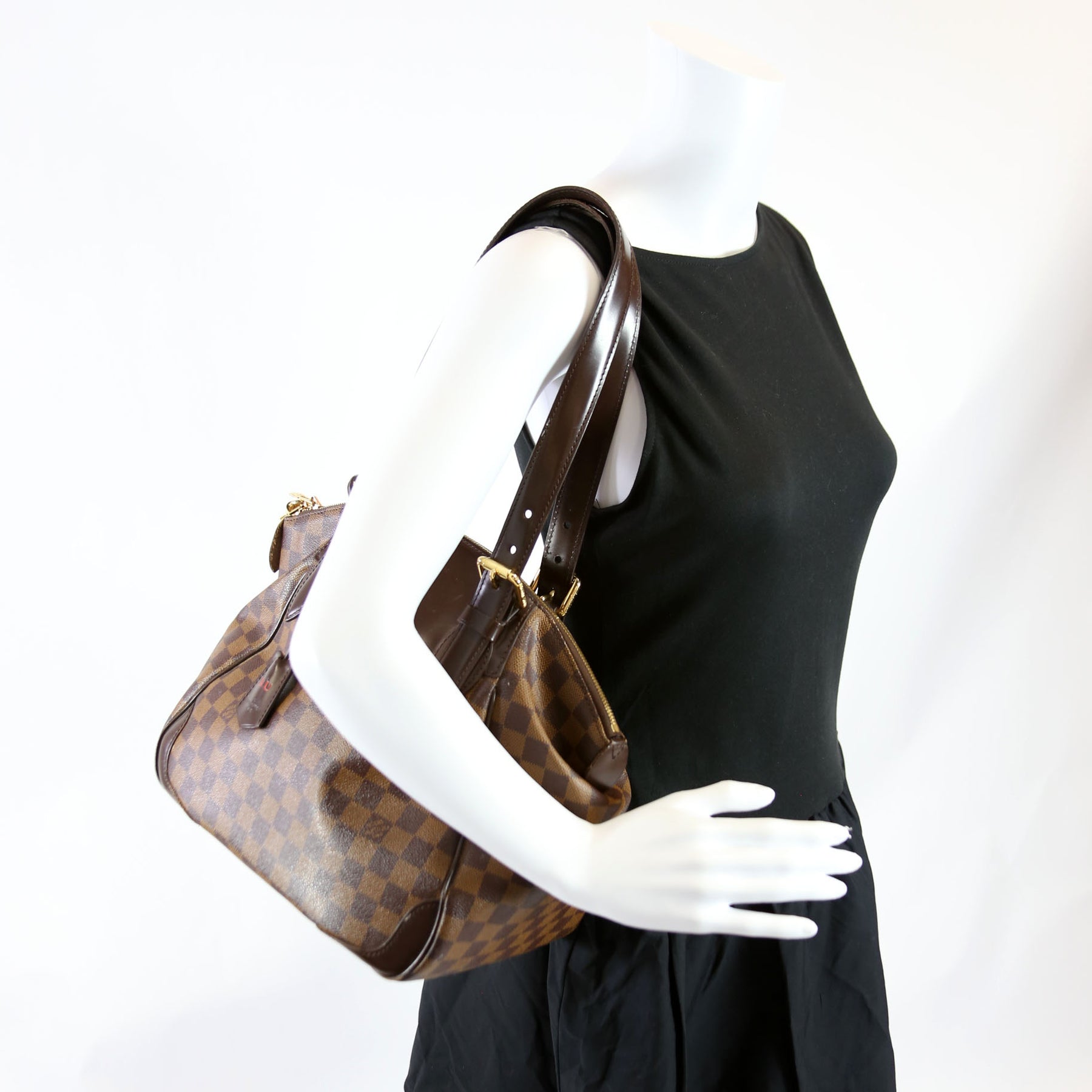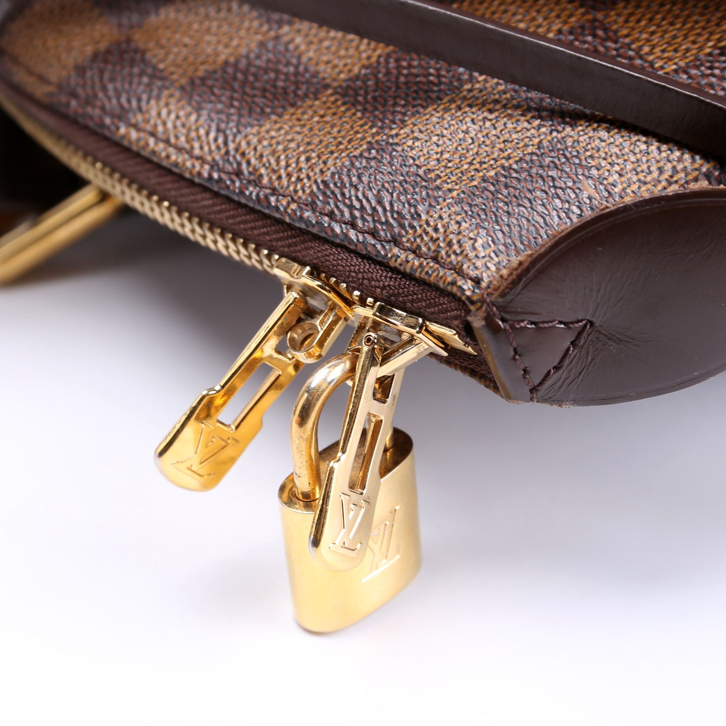 This pre-owned Louis Vuitton Verona MM is guaranteed 100% authentic. The exterior is in the classic Louis Vuitton Damier Ebene coated canvas.