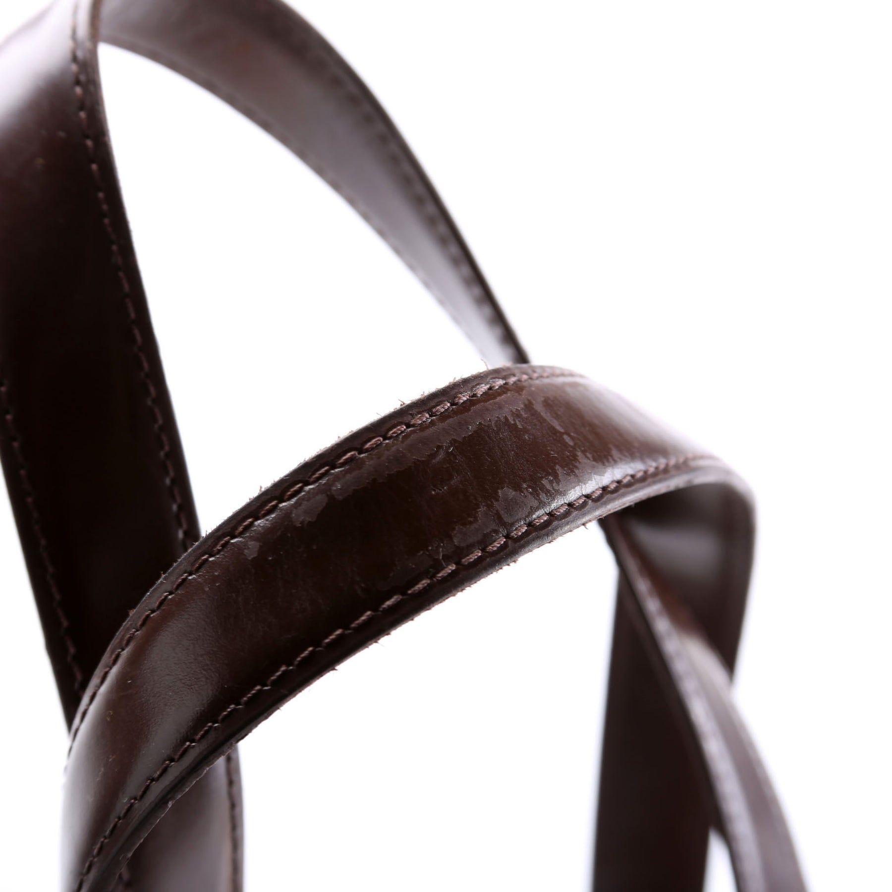 Hardware: The zipper operates properly. The hardware shows light wear; discoloration and scratching. The lock key cloche has a heat stamp "D.U"