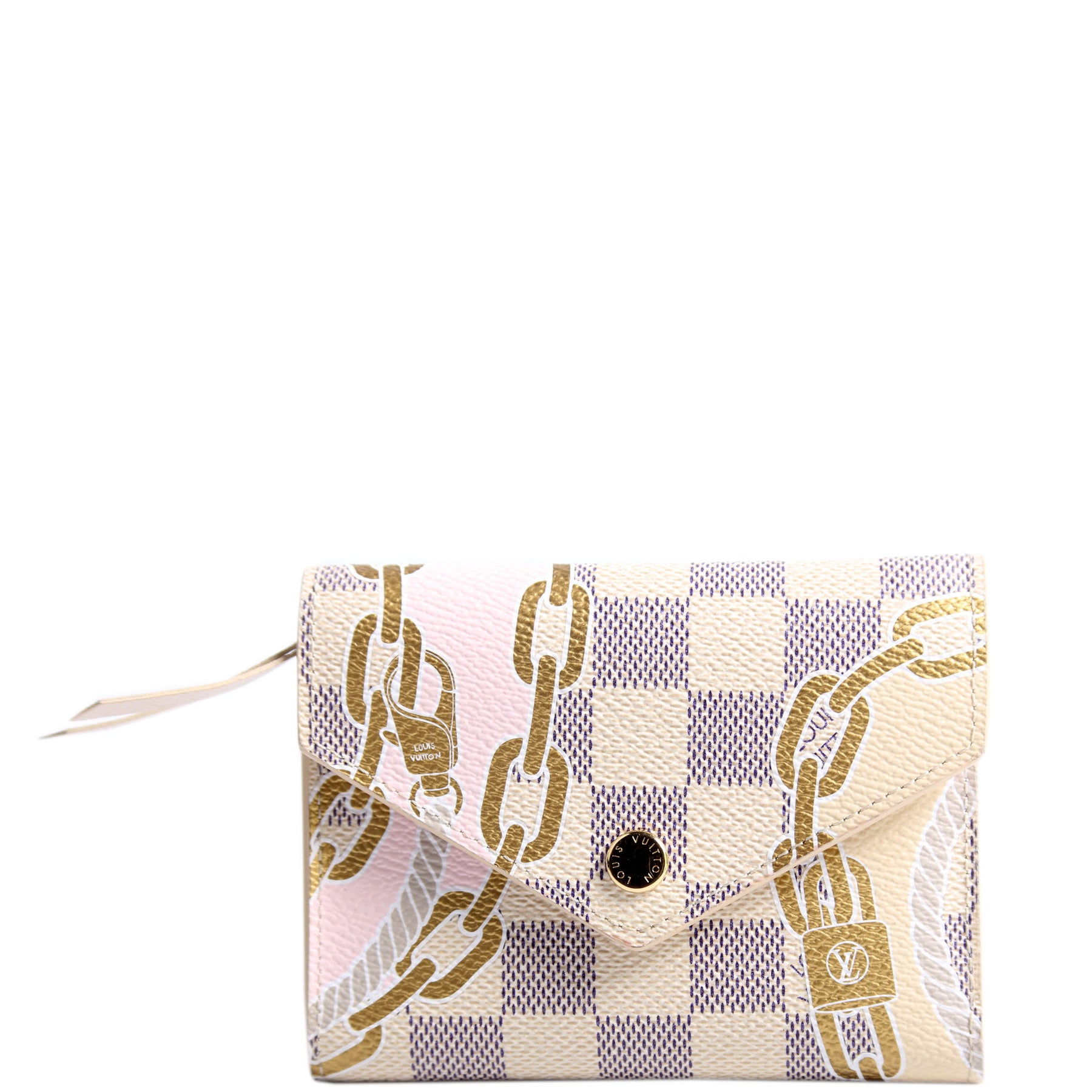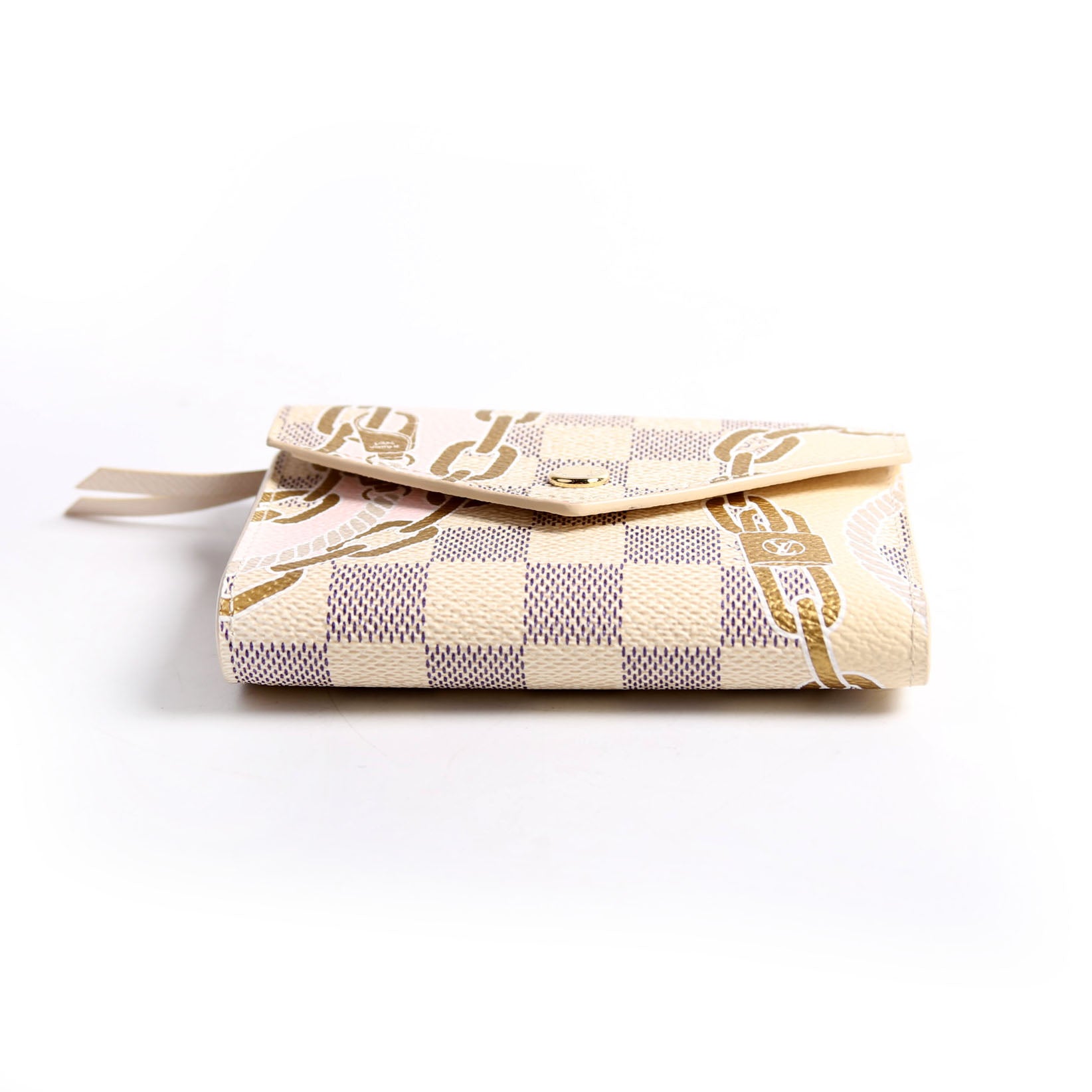 This pre-owned Louis Vuitton Victorine Nautical is guaranteed 100% authentic. The exterior is in the classic Louis Vuitton Damier Azur coated canvas.