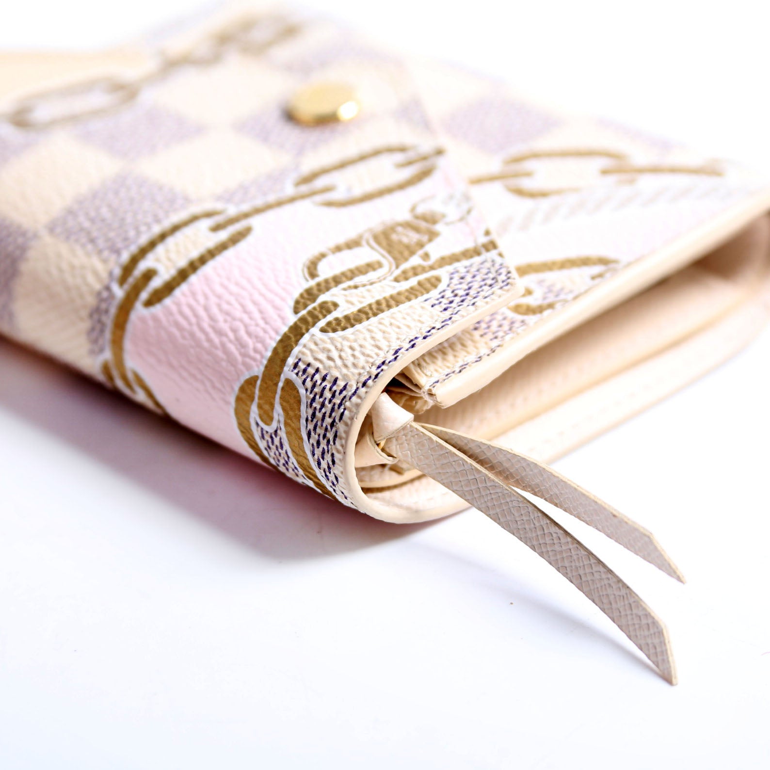 This pre-owned Louis Vuitton Victorine Nautical is guaranteed 100% authentic. The exterior is in the classic Louis Vuitton Damier Azur coated canvas.