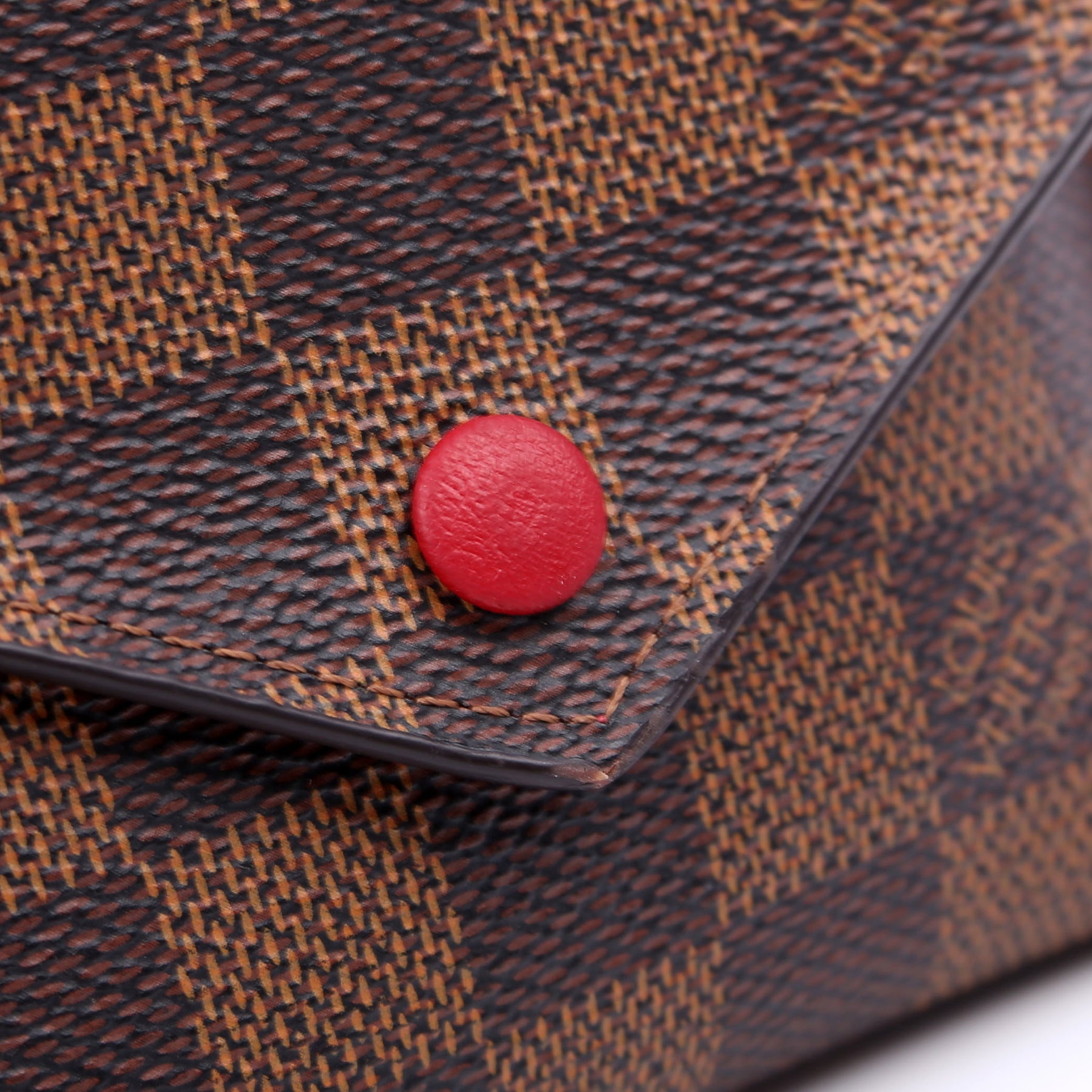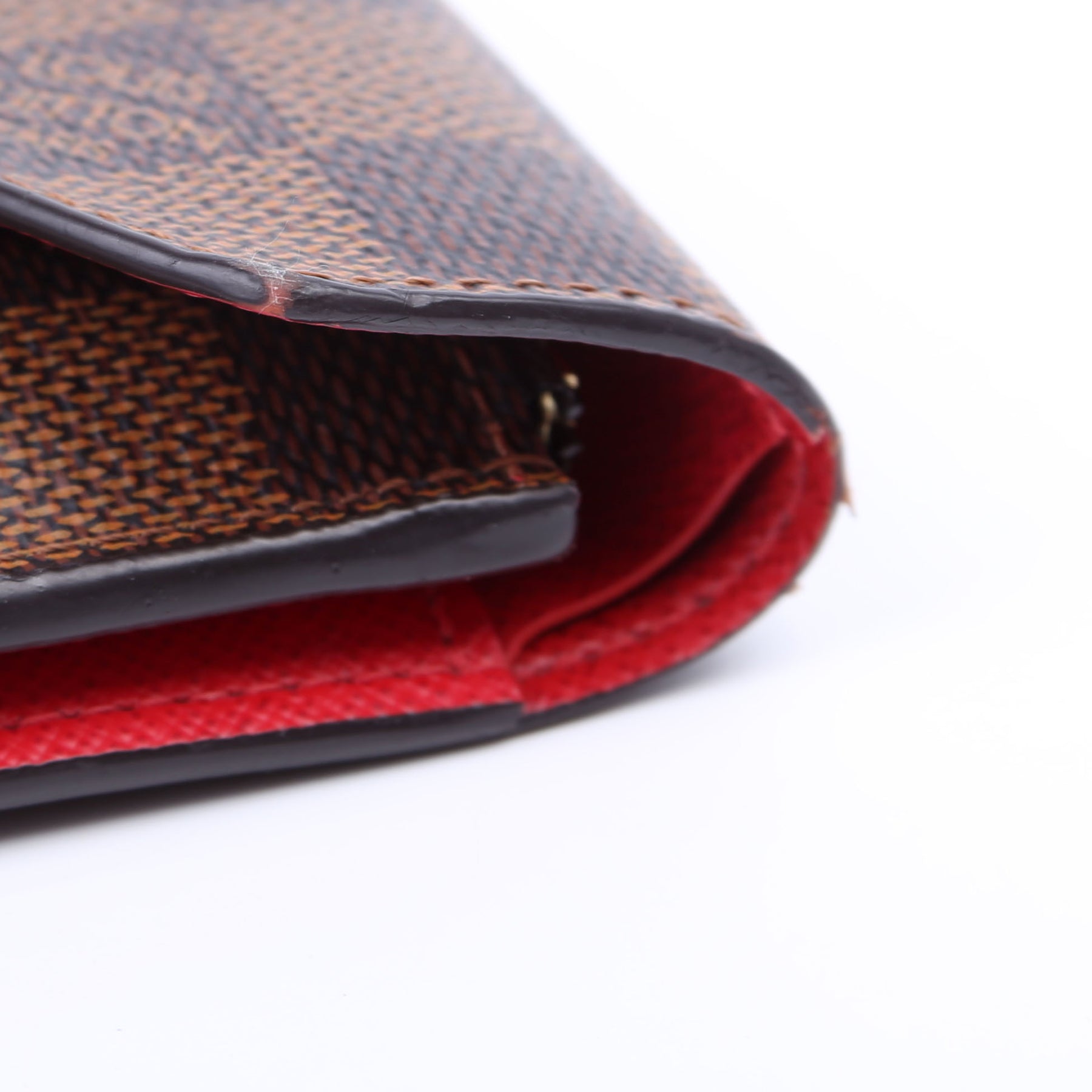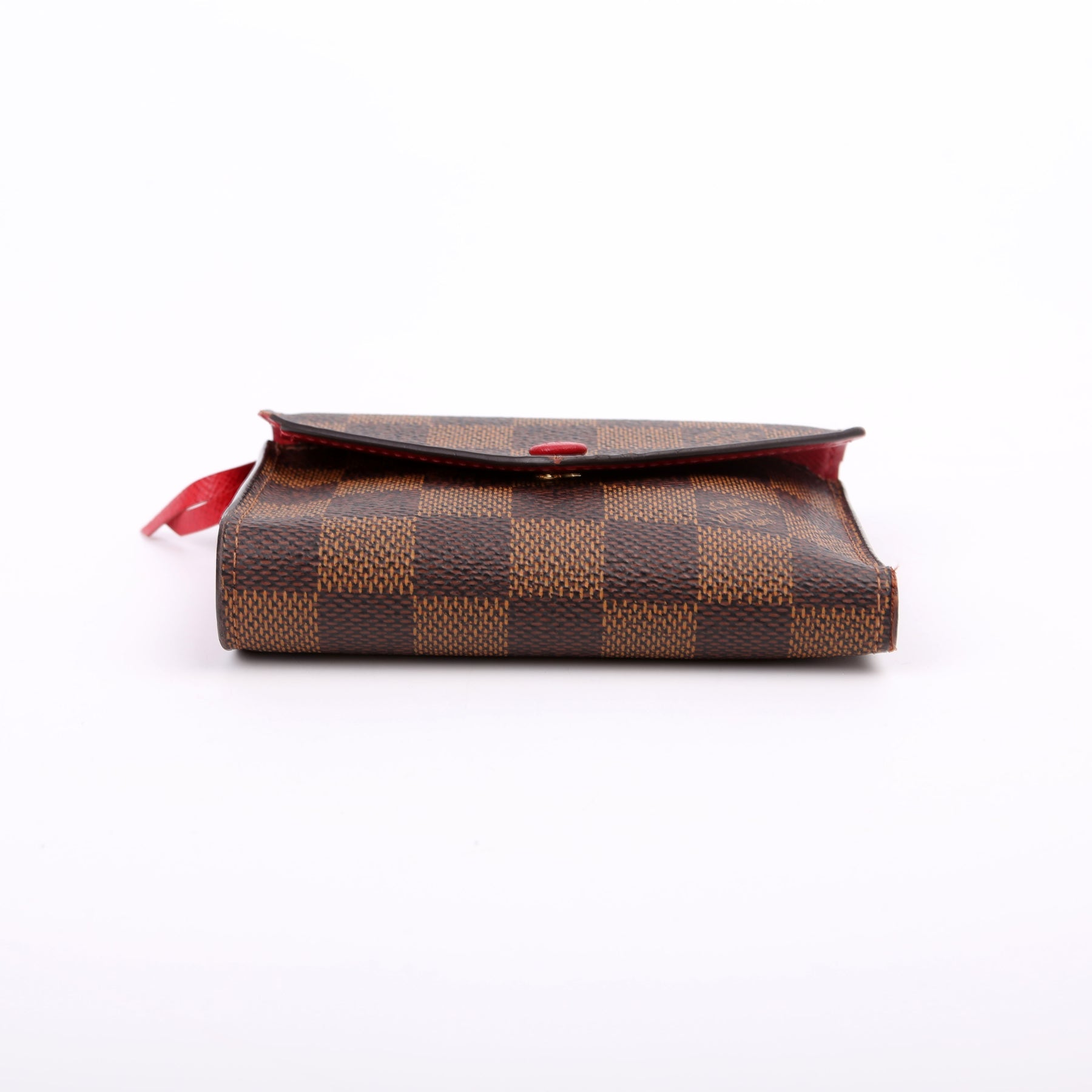 This pre-owned Louis Vuitton Victorine Wallet is guaranteed 100% authentic. The exterior is in the classic Louis Vuitton Damier Ebene coated canvas.
