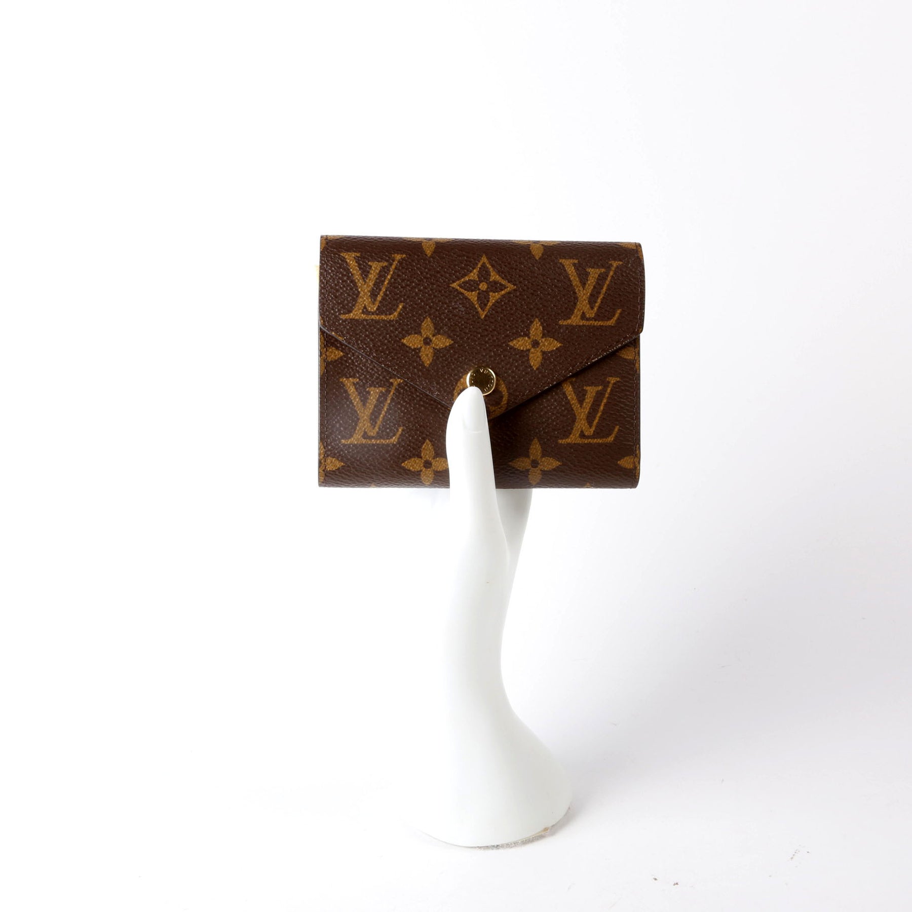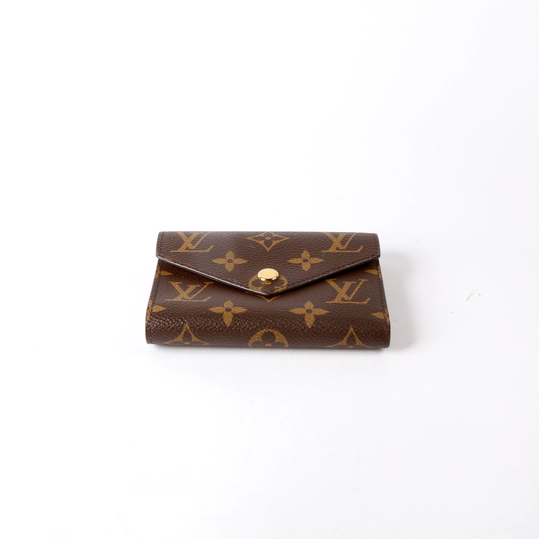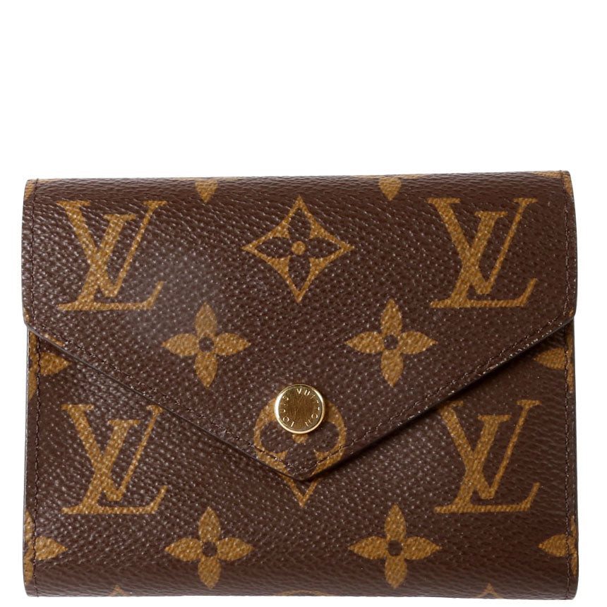 This pre-owned Louis Vuitton Victorine Wallet is guaranteed 100% authentic. The exterior is in the classic Monogram coated canvas.