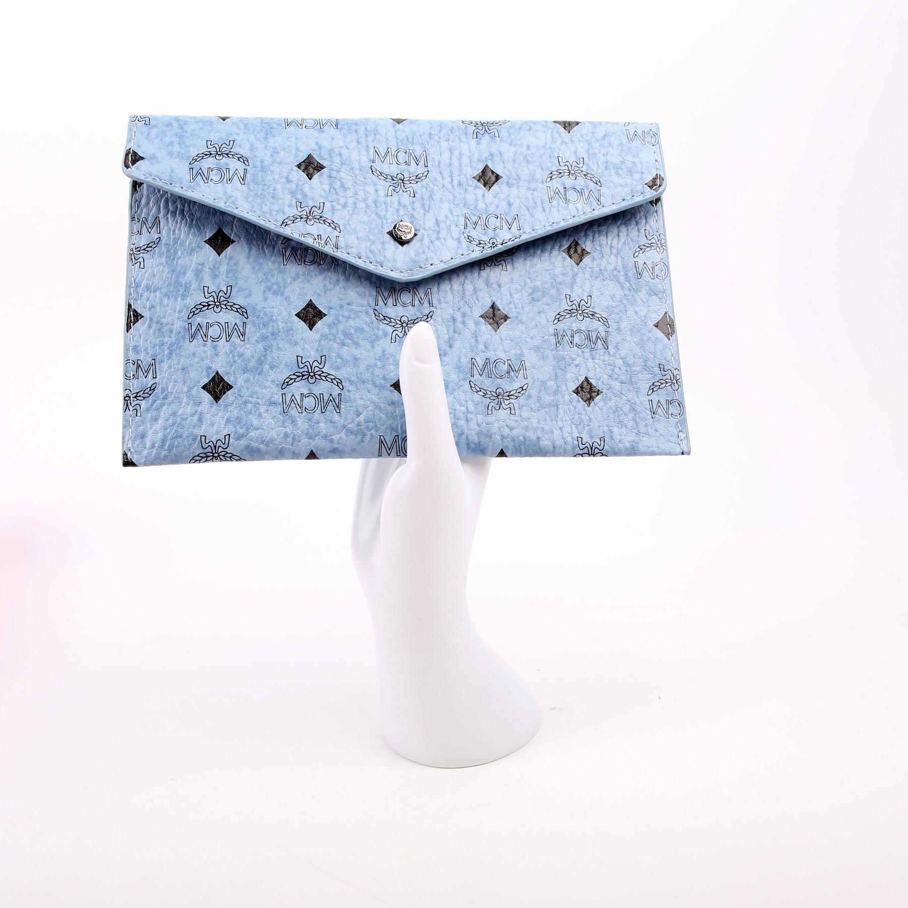 This pre-owned MCM Visetos Envelope Pouch is guaranteed 100% authentic. The exterior is in the classic MCM Visetos leather.