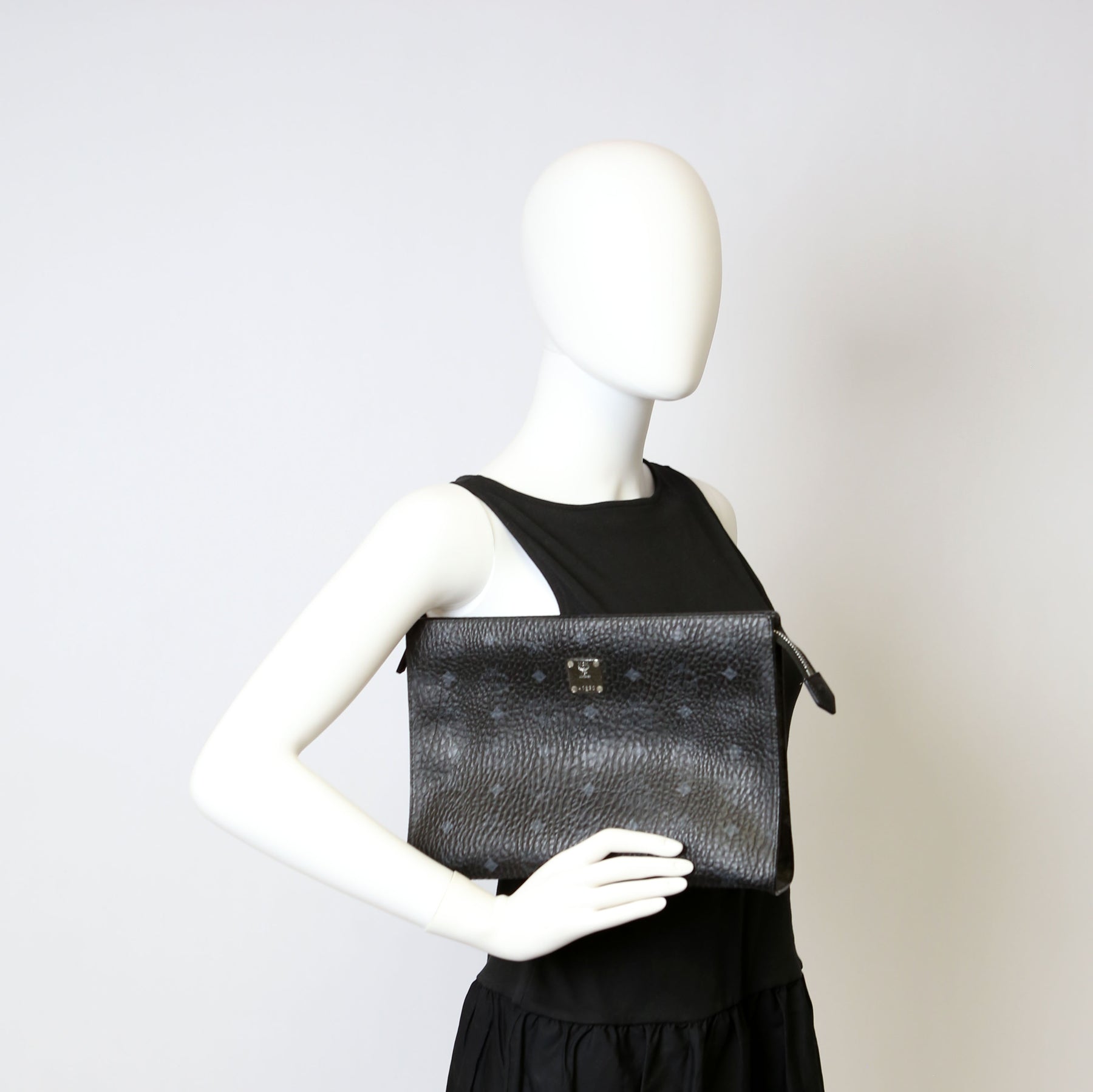This pre-owned MCM Visetos Large Zip Pouch is guaranteed 100% authentic. The exterior is in the classic Visetos Coated Canvas.