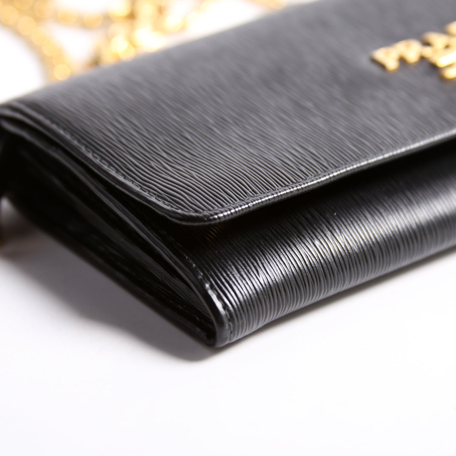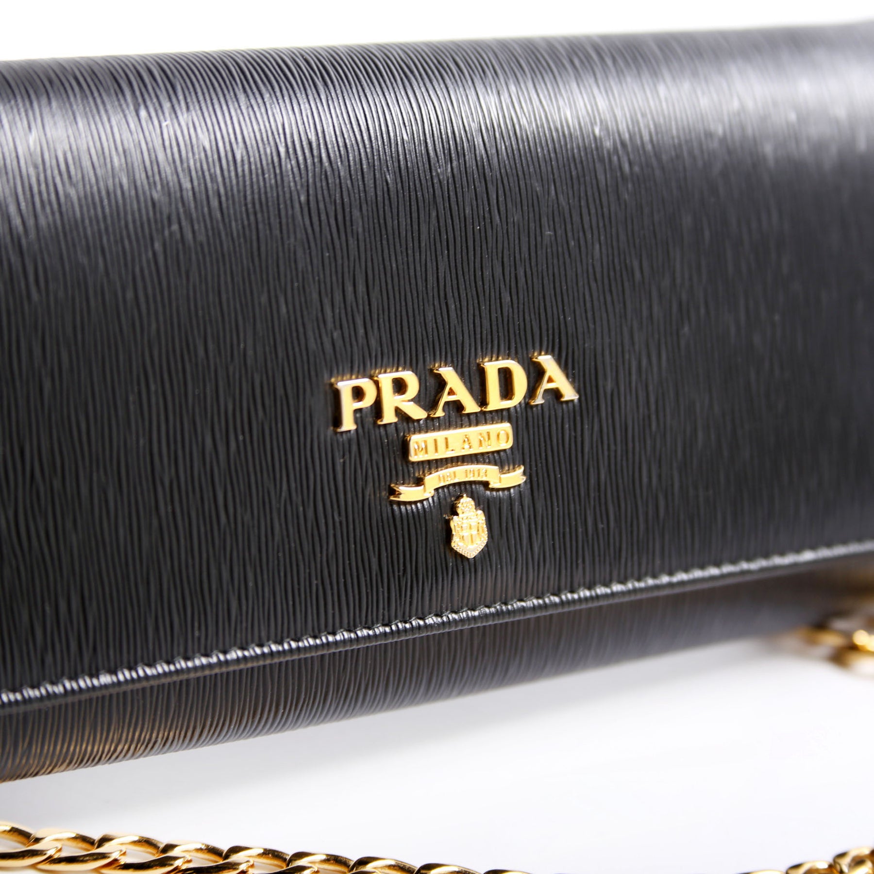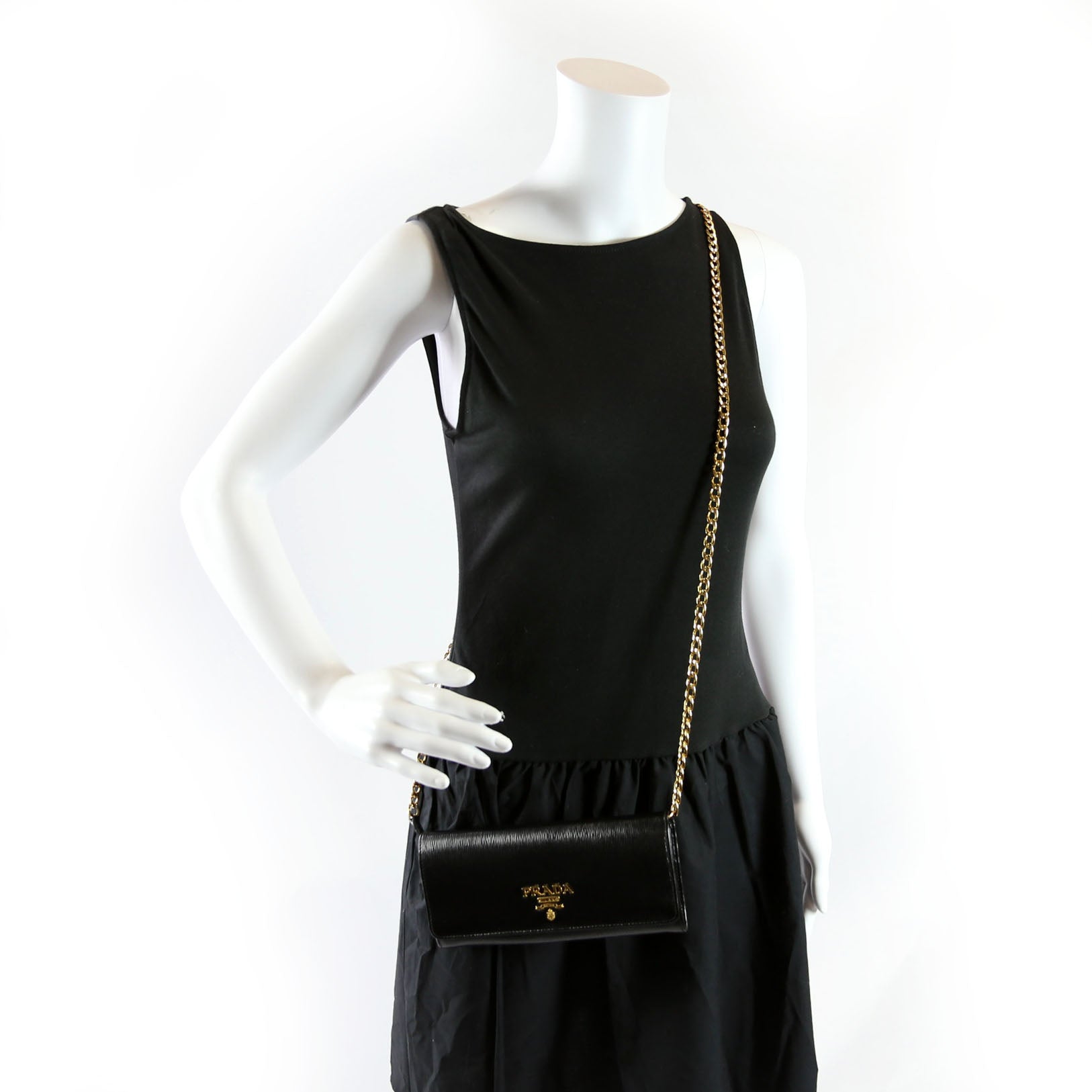 This pre-owned Prada Vitello Move Chain Wallet is guaranteed 100% authentic.