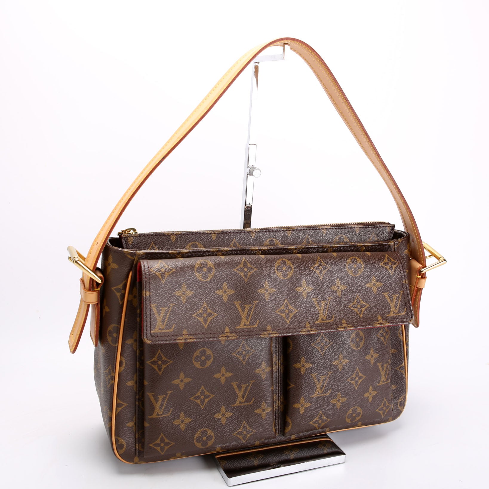 This pre-owned Louis Vuitton Viva Cite GM is guaranteed 100% authentic. The exterior is in the classic Louis Vuitton Monogram coated canvas.