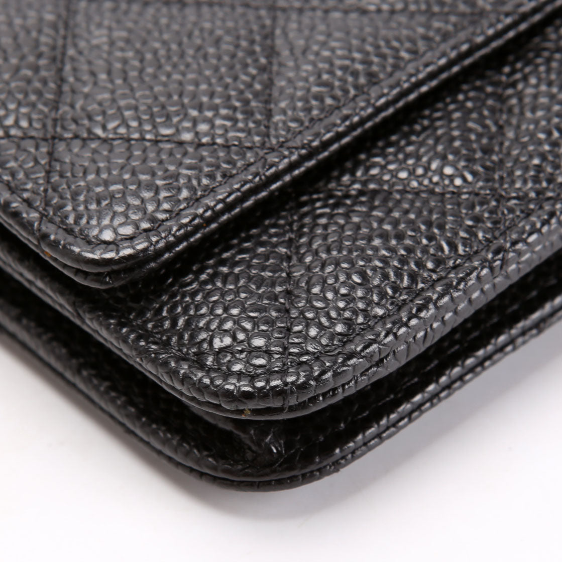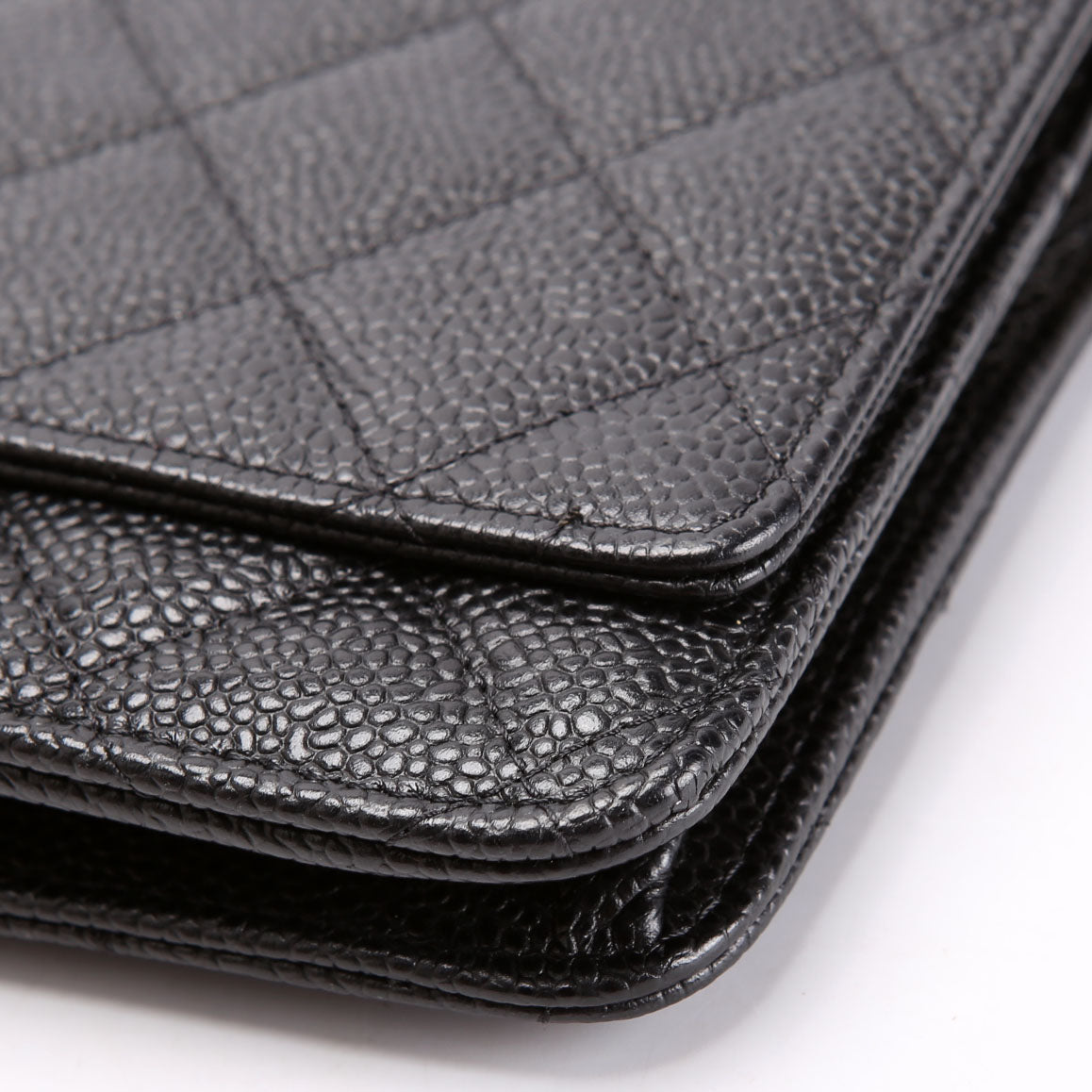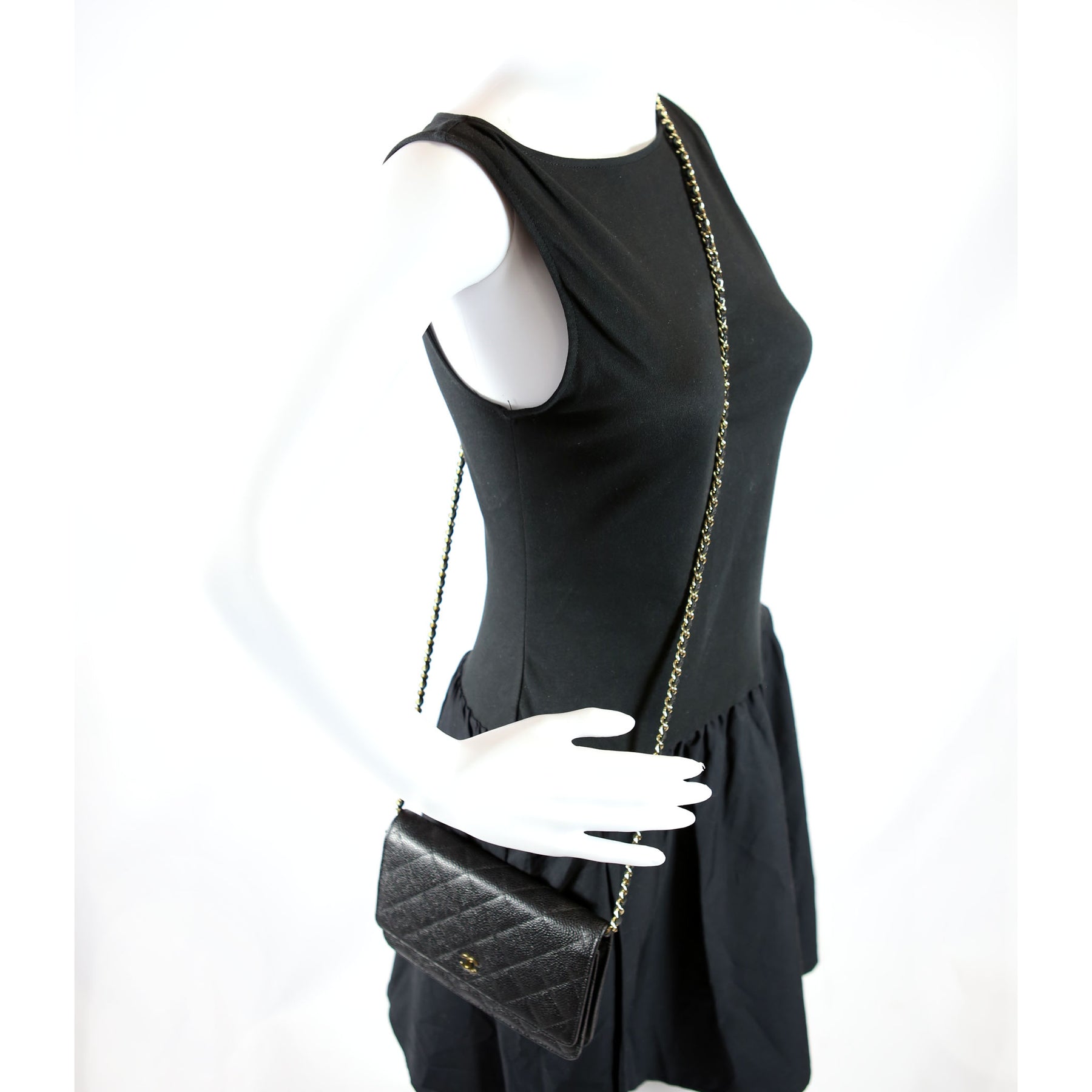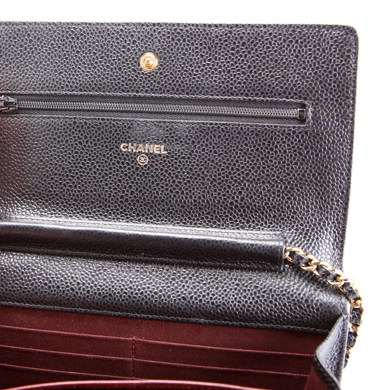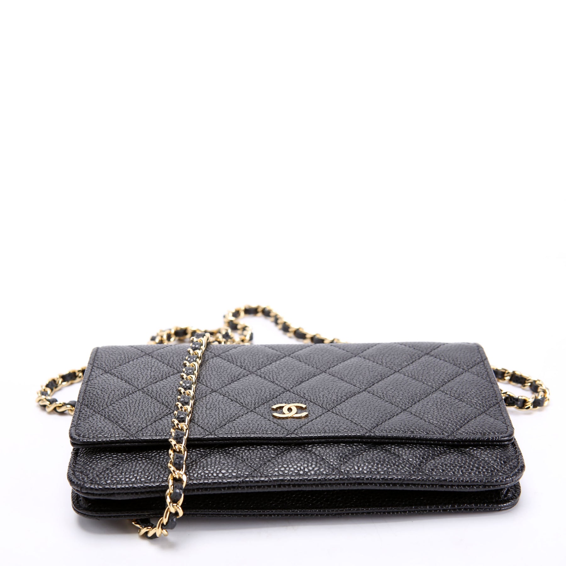 This pre-owned Chanel Wallet On Chain Classic is guaranteed 100% authentic. The exterior is in the classic Chanel Quilted Caviar.