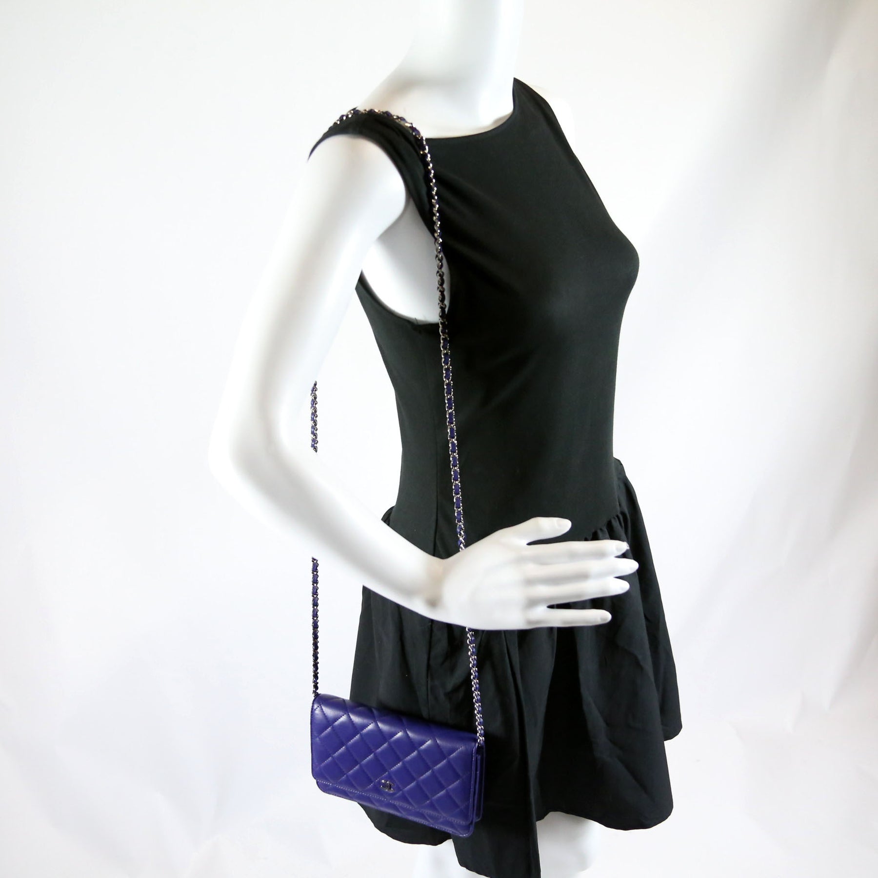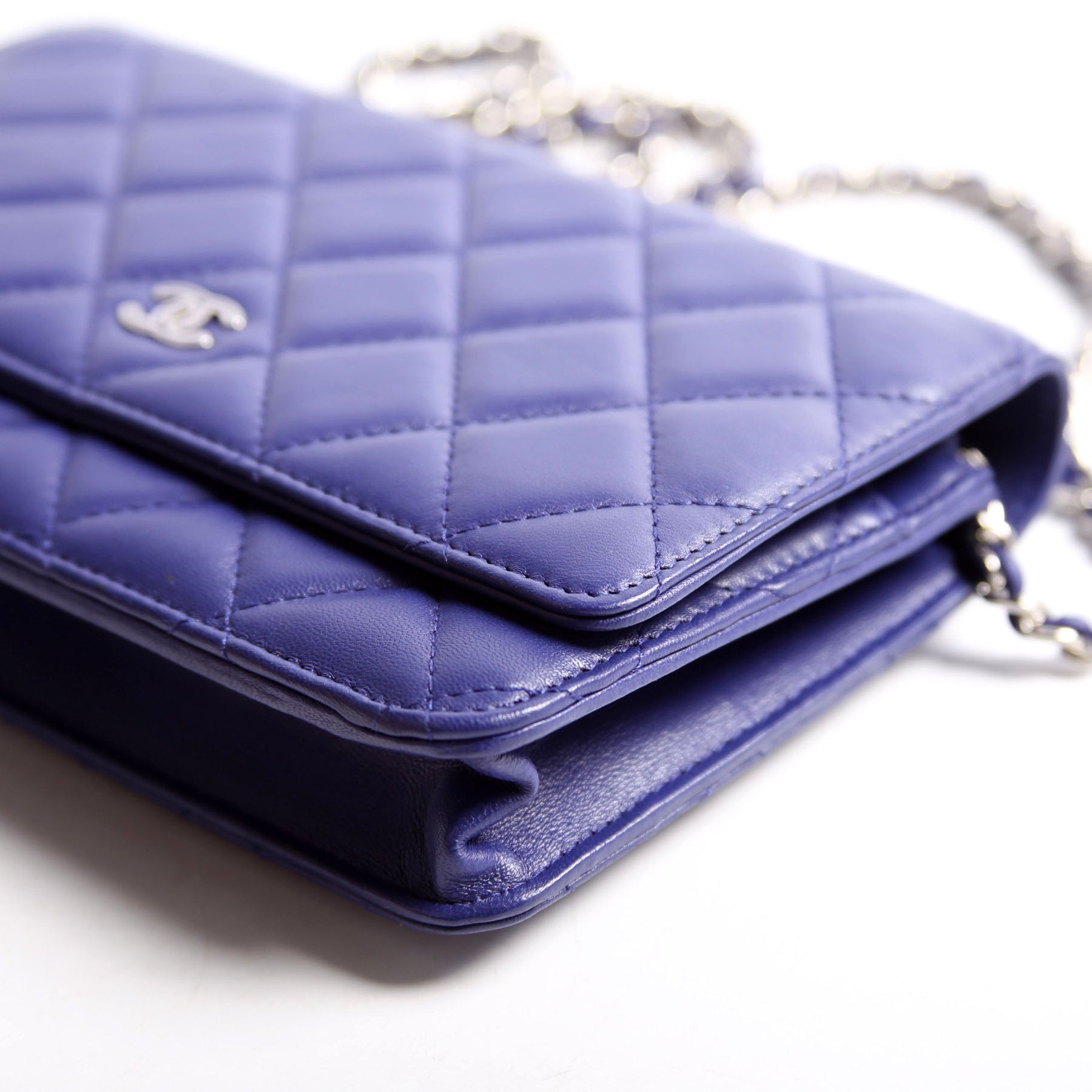 This pre-owned Chanel Wallet On Chain Classic is guaranteed 100% authentic. The exterior is in the classic Chanel Quilted Lmabskin.