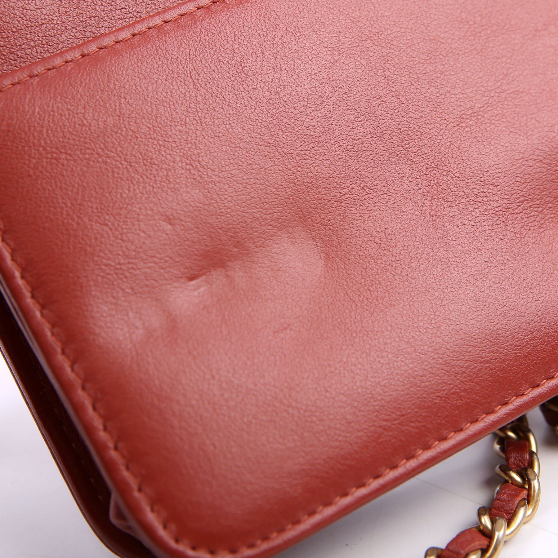 Interior: The interior is clean and free of rips or tears. The interior features two zip closure pocket and two open pockets. The leather has minor wear from the zipper.