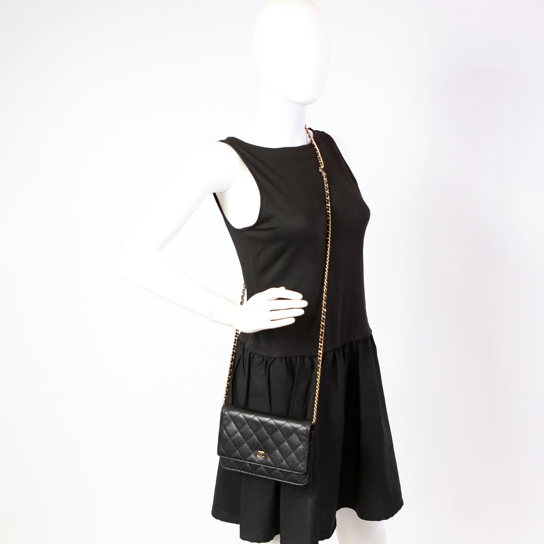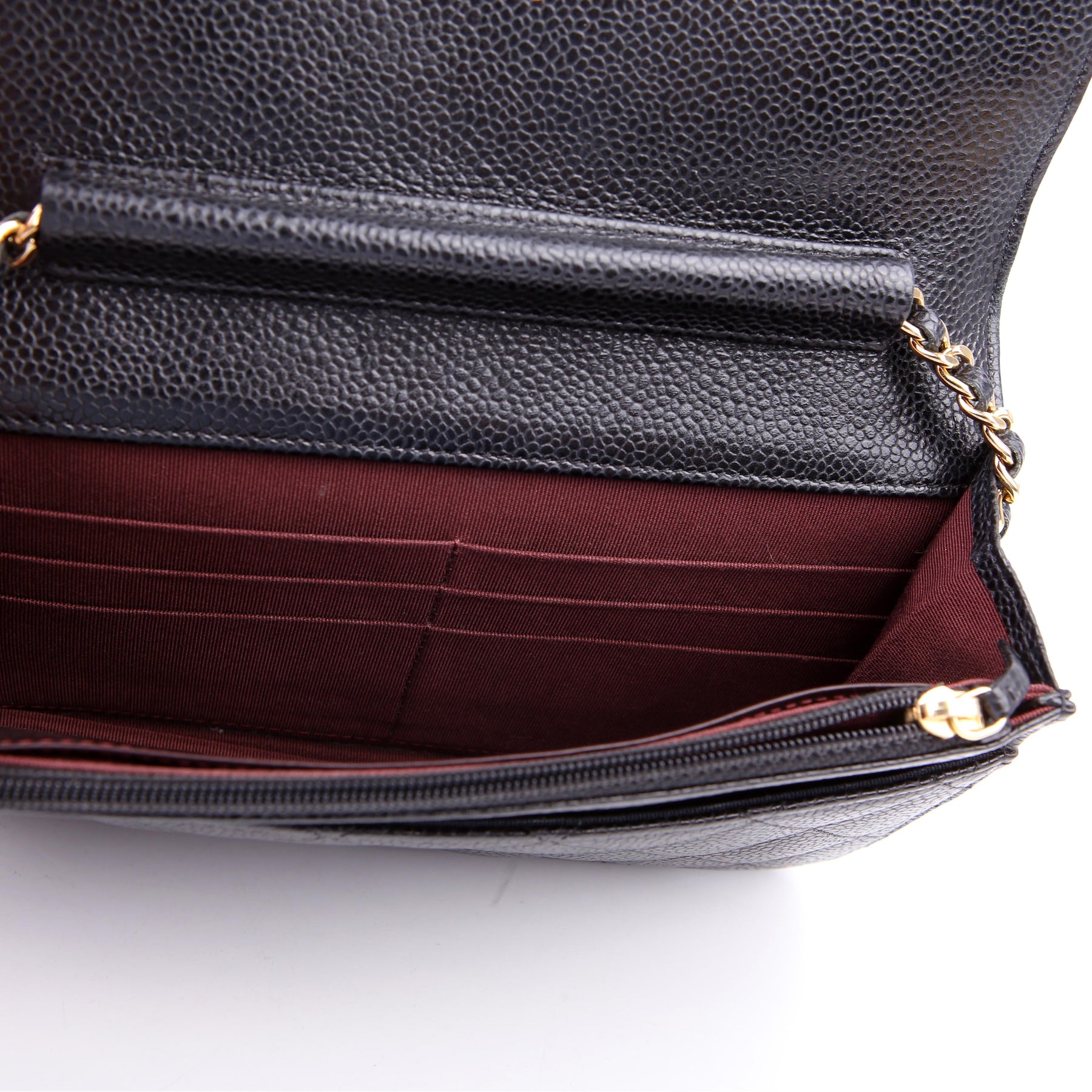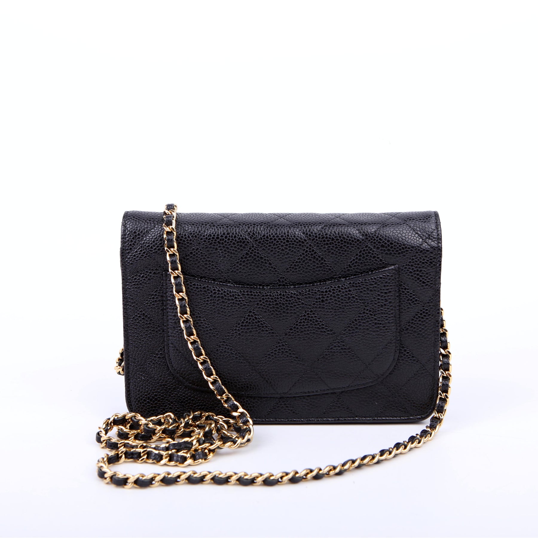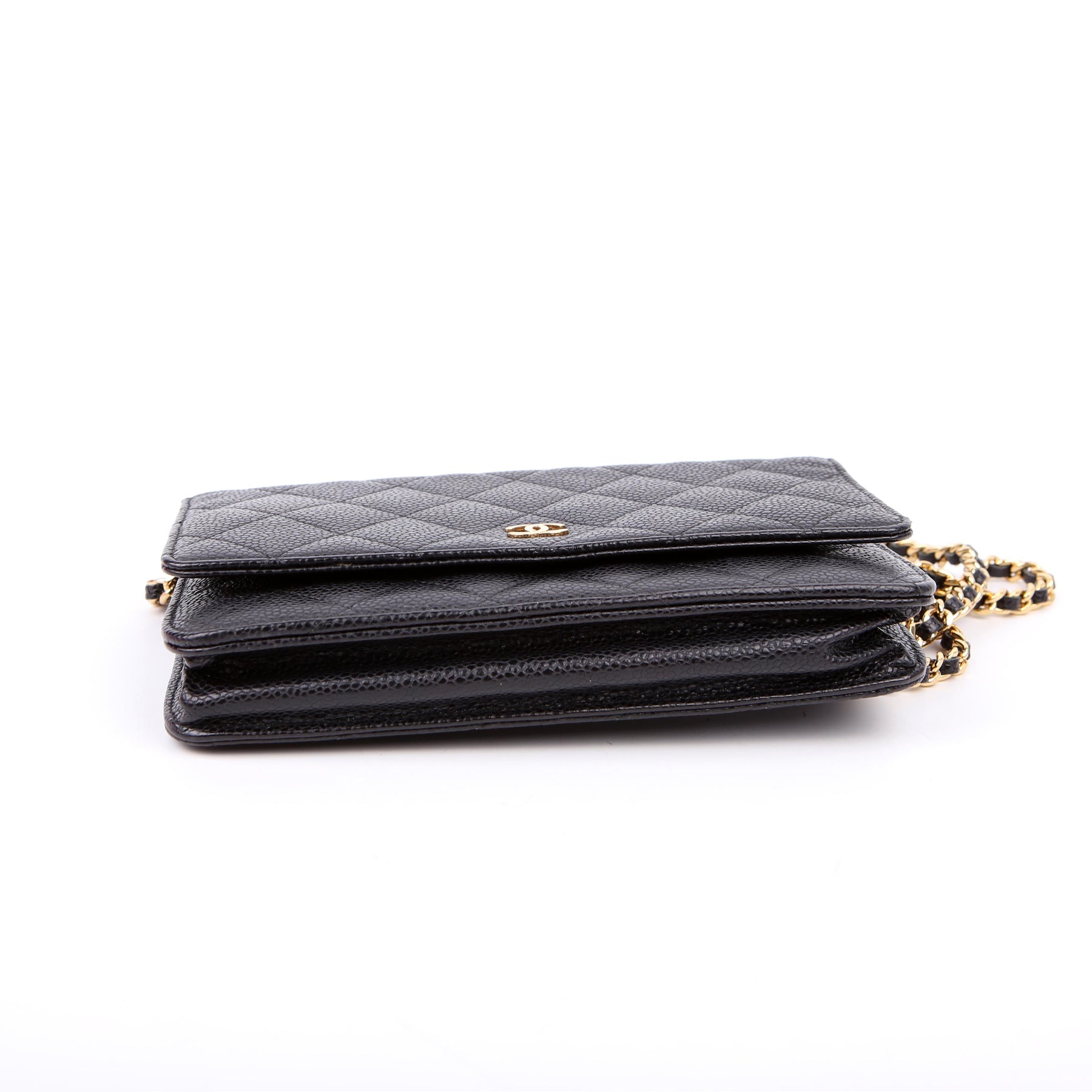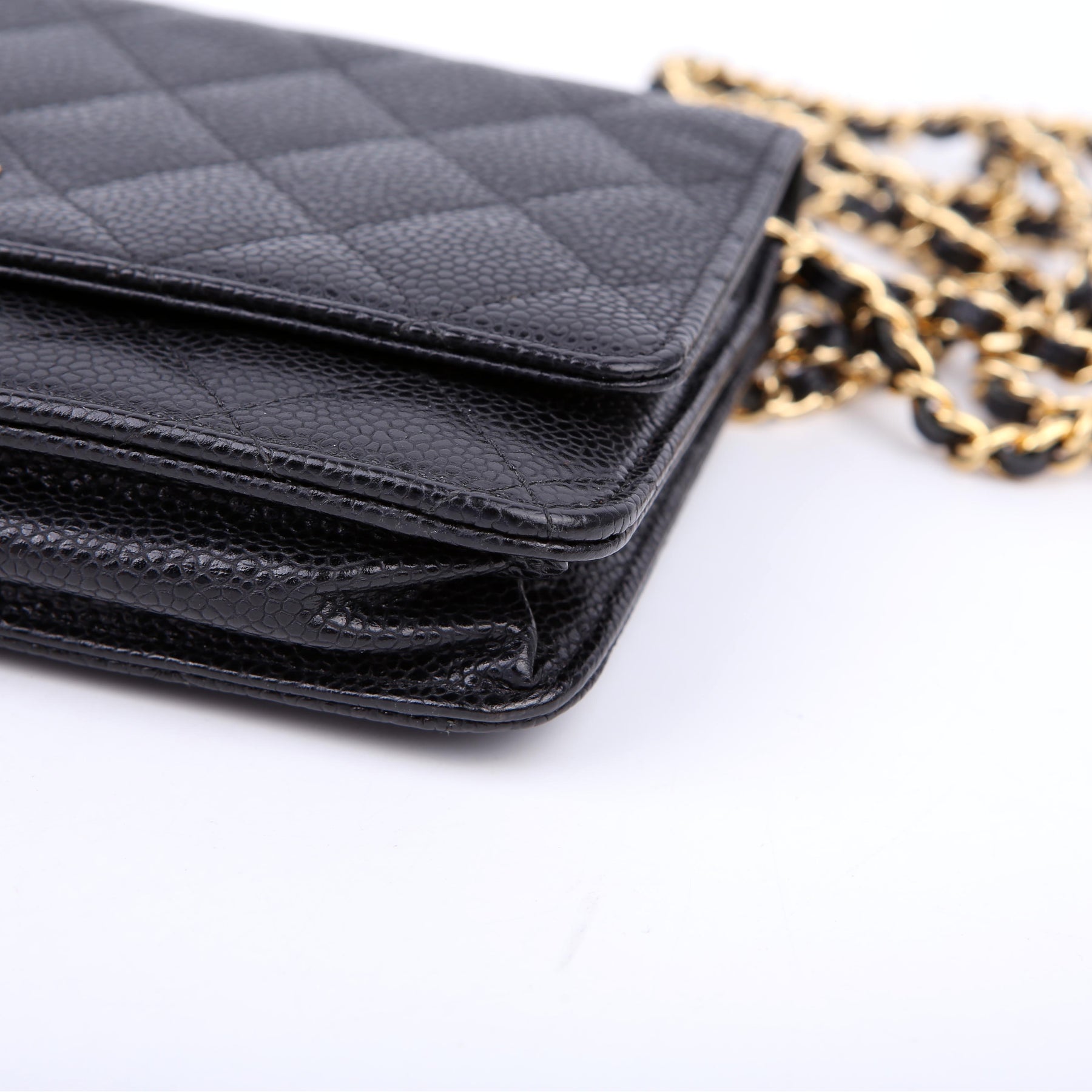 This pre-owned Chanel WOC Classic Quilted is guaranteed 100% authentic. The exterior is in the classic Chanel Caviar leather.