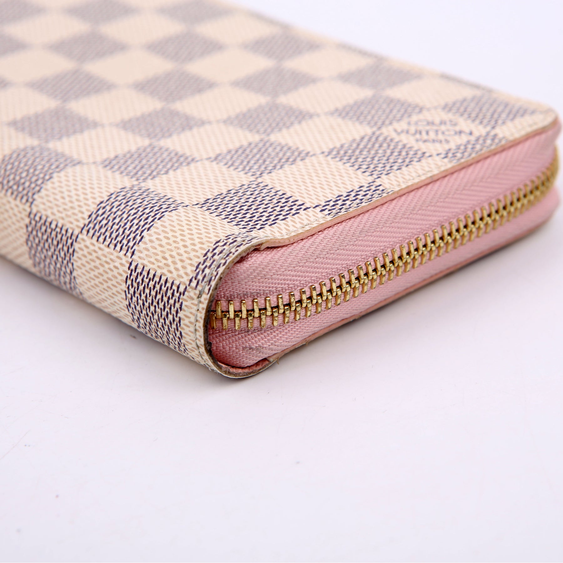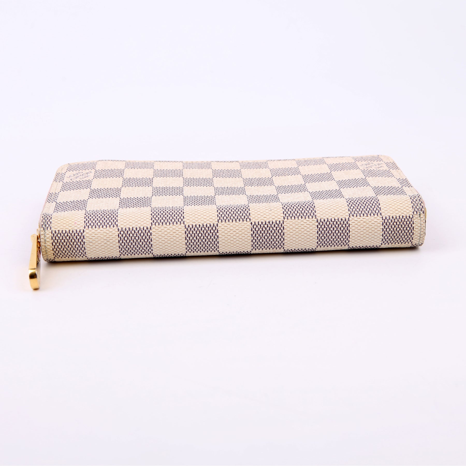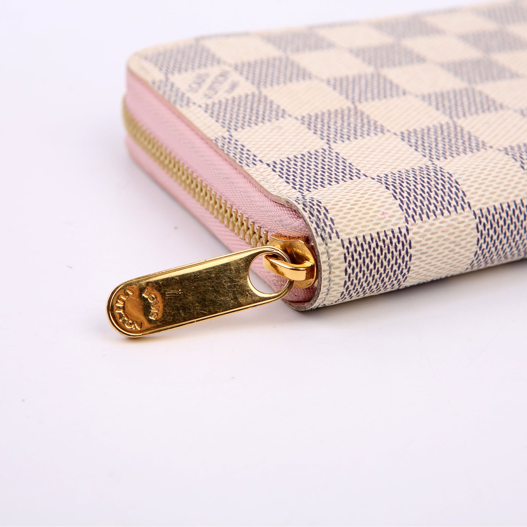 This pre-owned Louis Vuitton Zippy Wallet is guaranteed 100% authentic. The exterior is in the classic Louis Vuitton Damier Azur coated canvas.