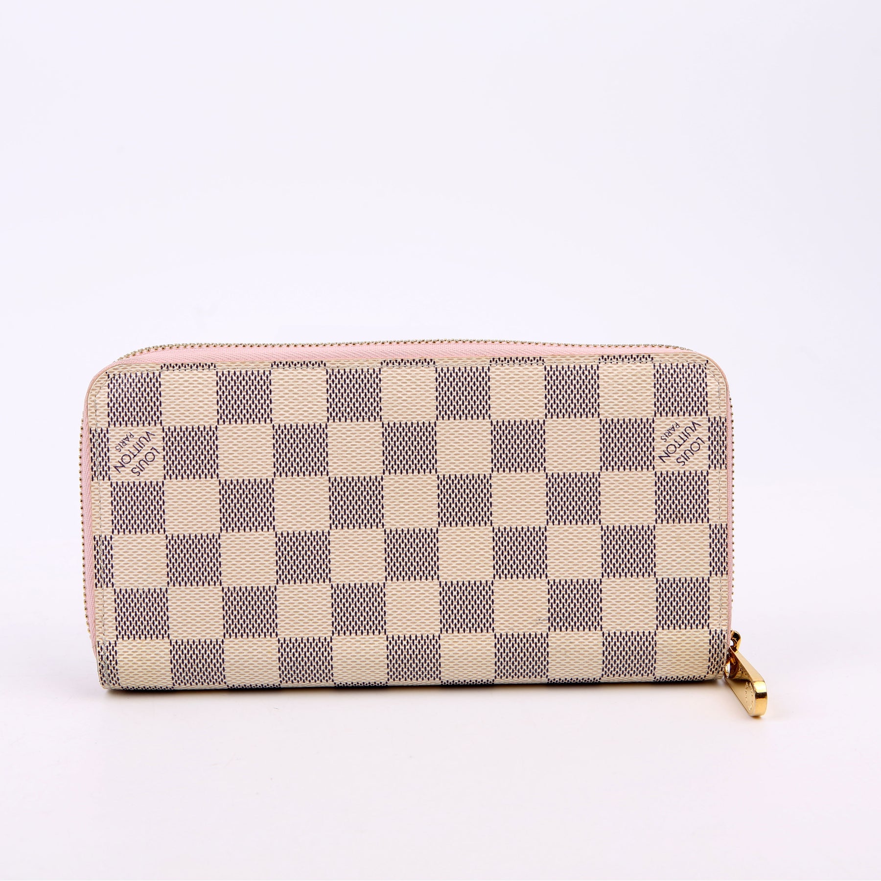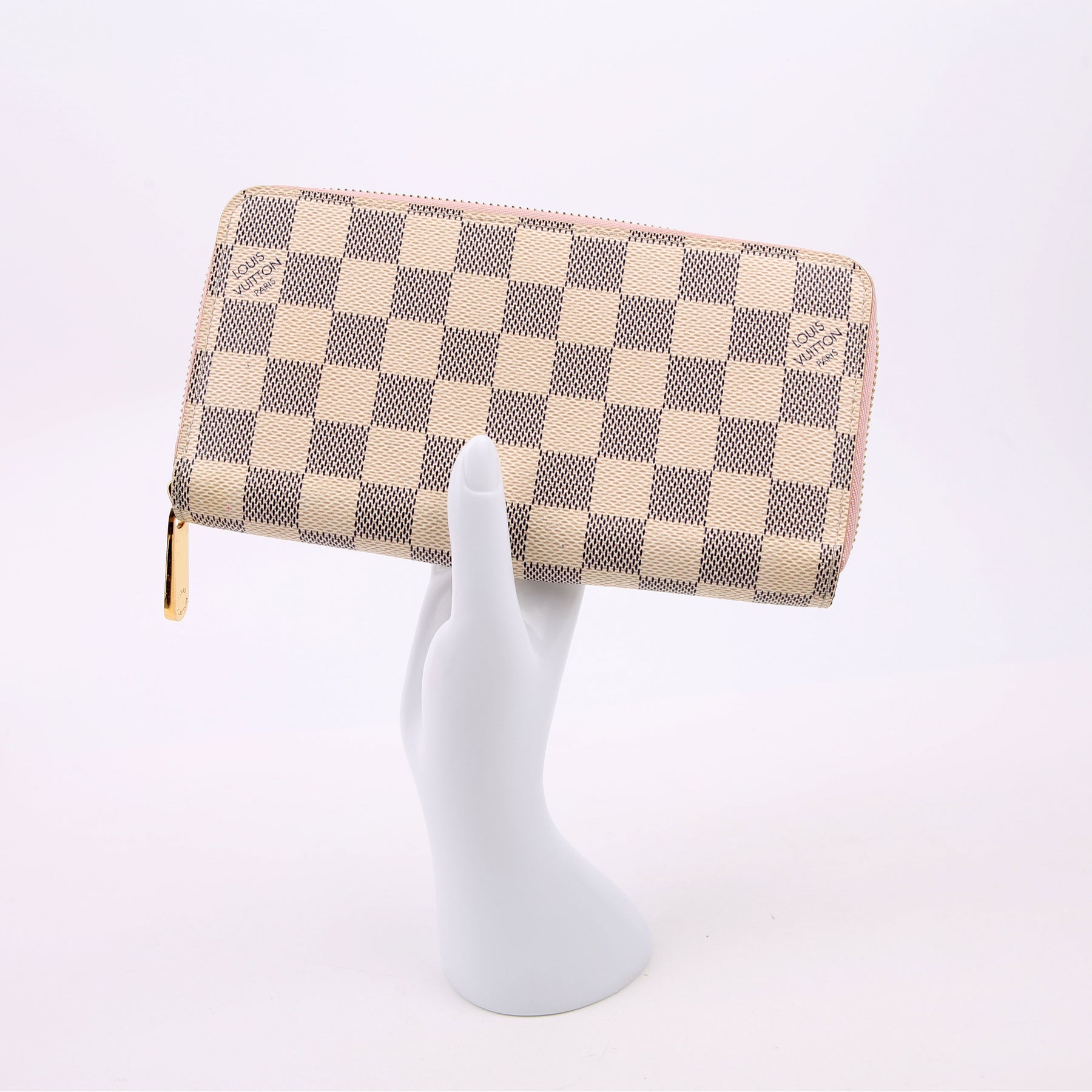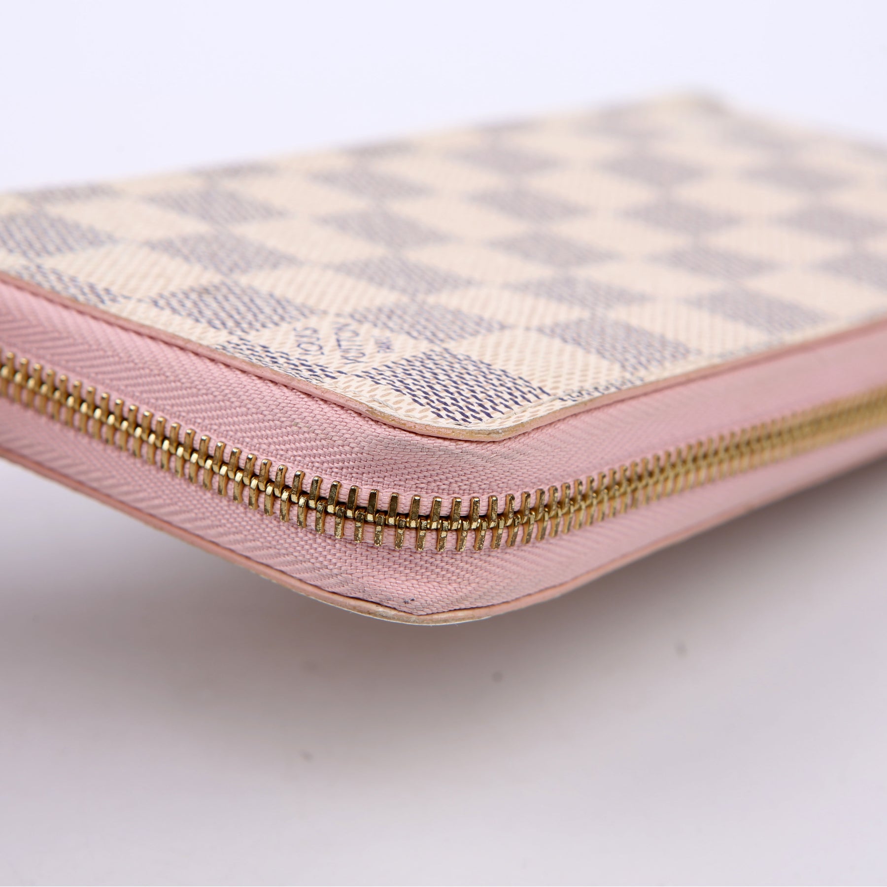 This pre-owned Louis Vuitton Zippy Wallet is guaranteed 100% authentic. The exterior is in the classic Louis Vuitton Damier Azur coated canvas.