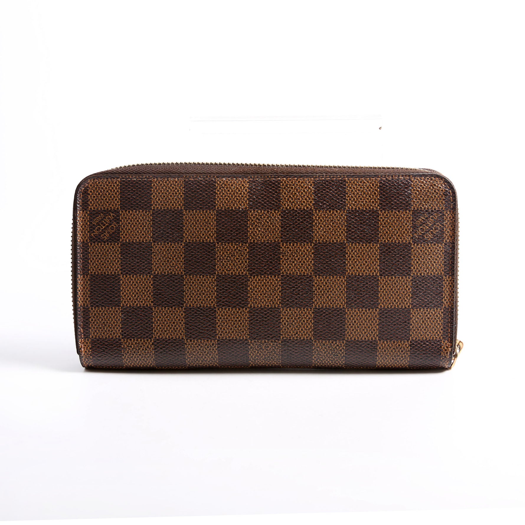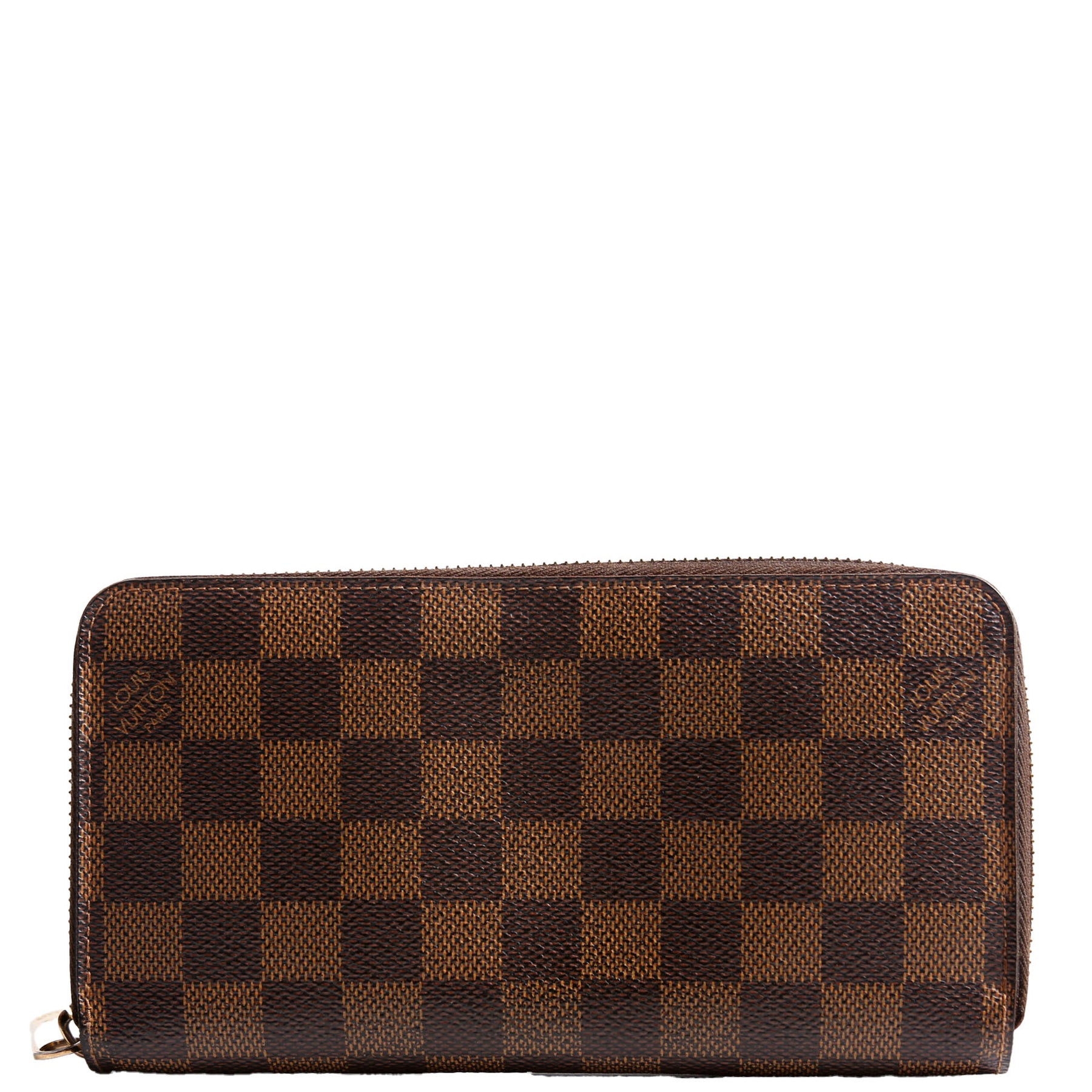 This pre-owned Louis Vuitton Zippy Wallet is guaranteed 100% authentic. The exterior is in the classic Louis Vuitton Damier Ebene coated canvas.