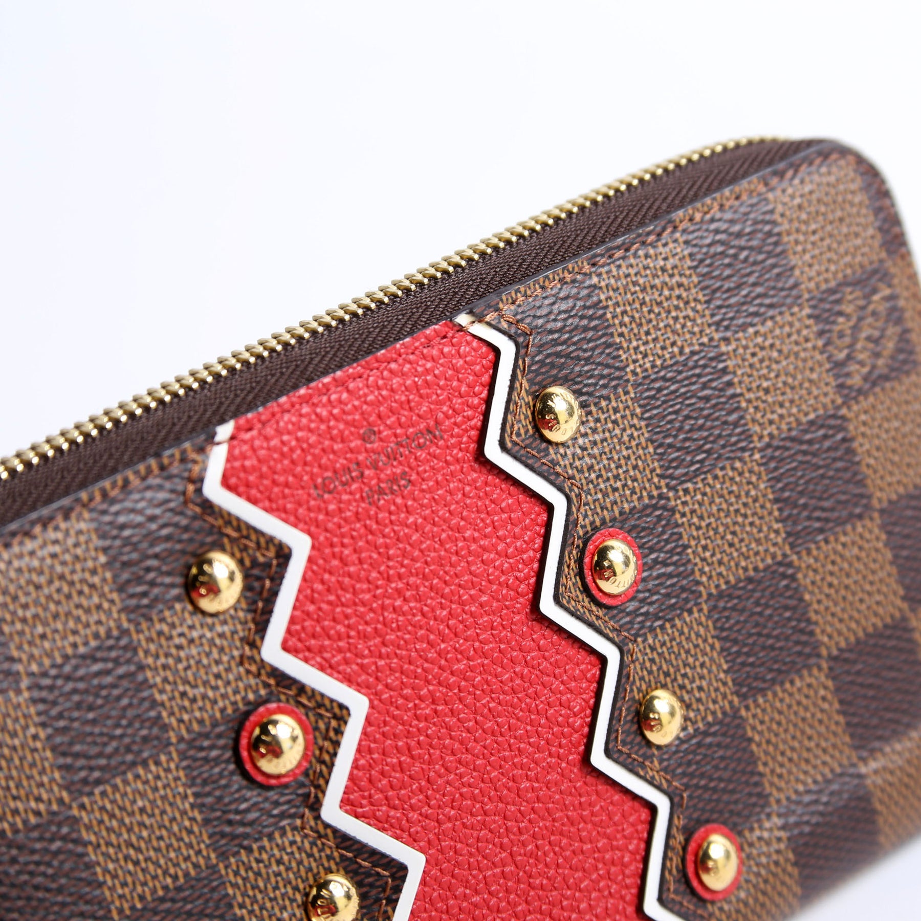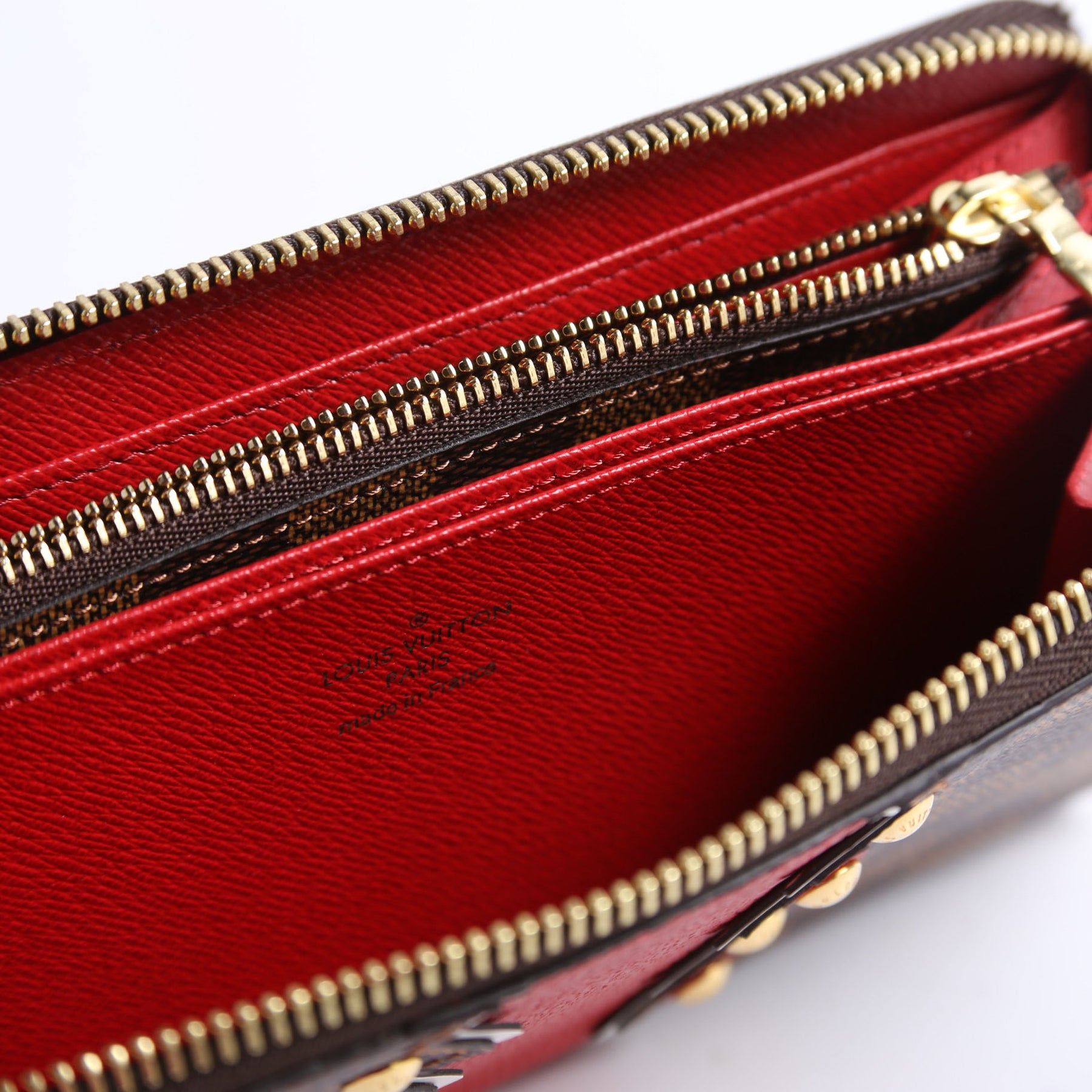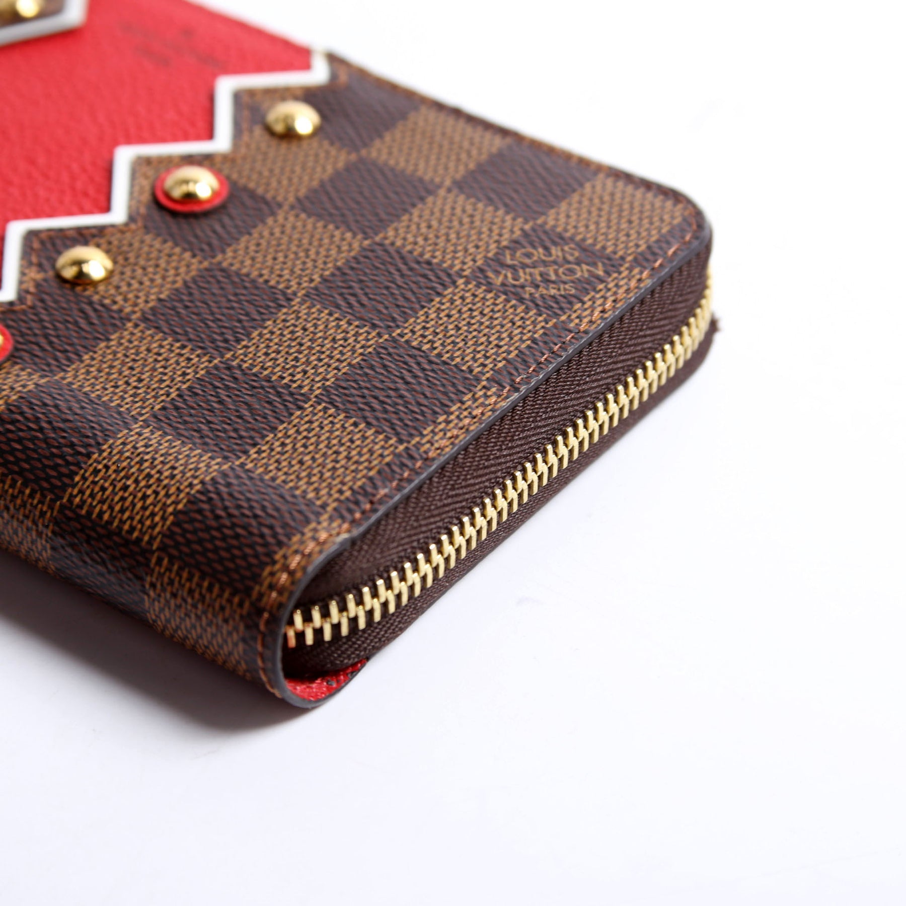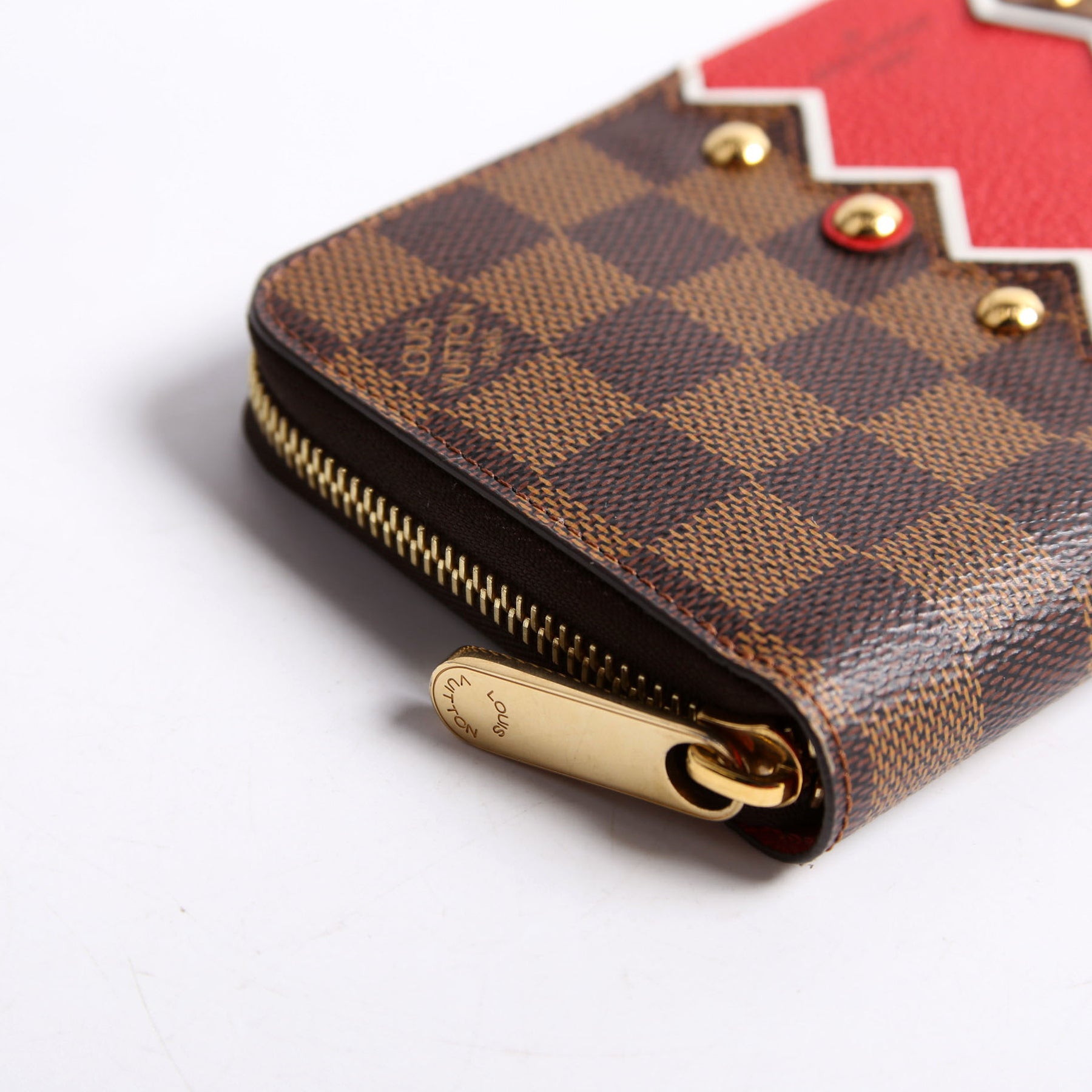 This pre-owned Louis Vuitton Zippy Wallet Karakoram is guaranteed 100% authentic. The exterior is in the classic Louis Vuitton Damier Ebene coated canvas.